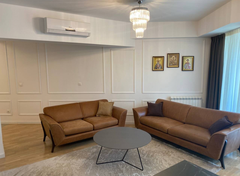 The apartment has spacious living room, fully equipped modern kitchen with dining room, three bedrooms, two bathrooms and a terrace overlooking Vodno.