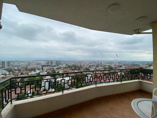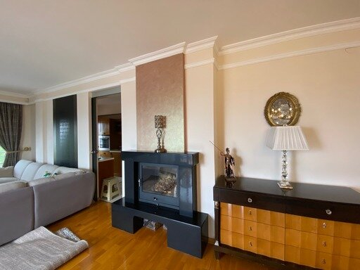 The apartment has living room with fireplace, kitchen and a dining room, three bedrooms with private bathrooms, a guest toilet, a pantry and a beautiful terrace with a view of Skopje.