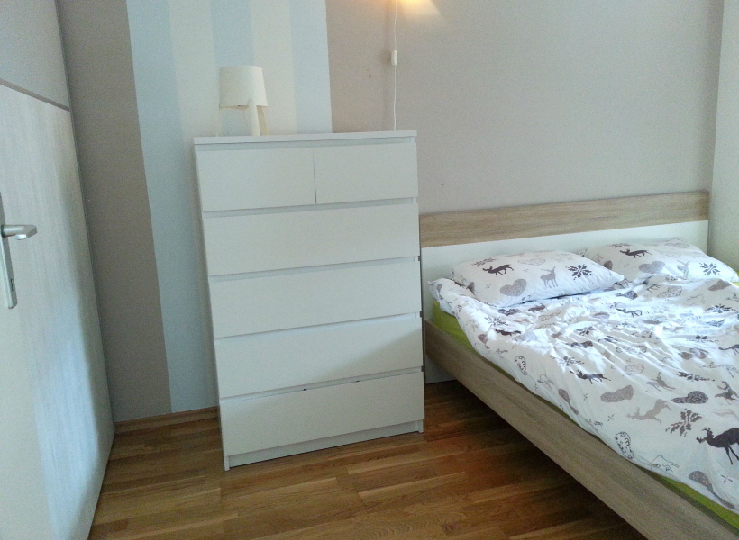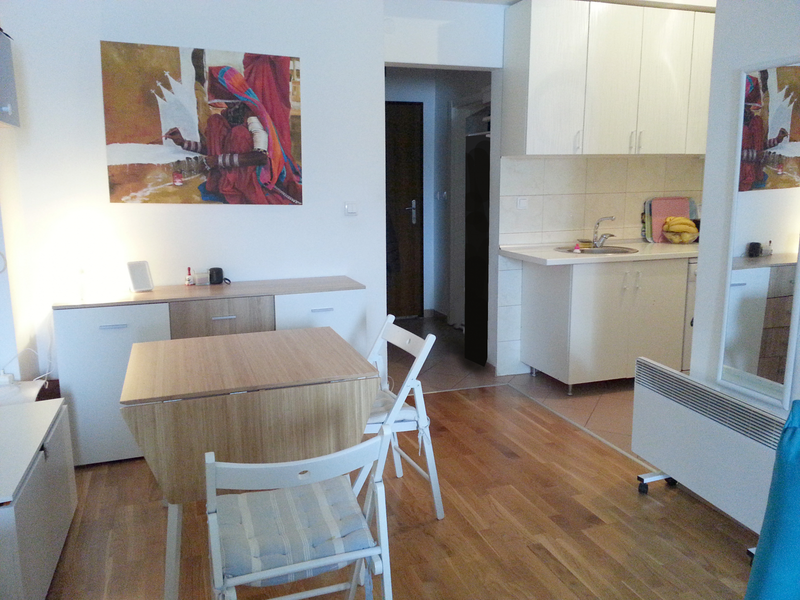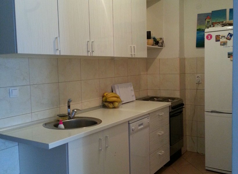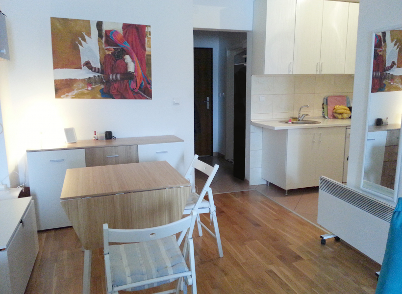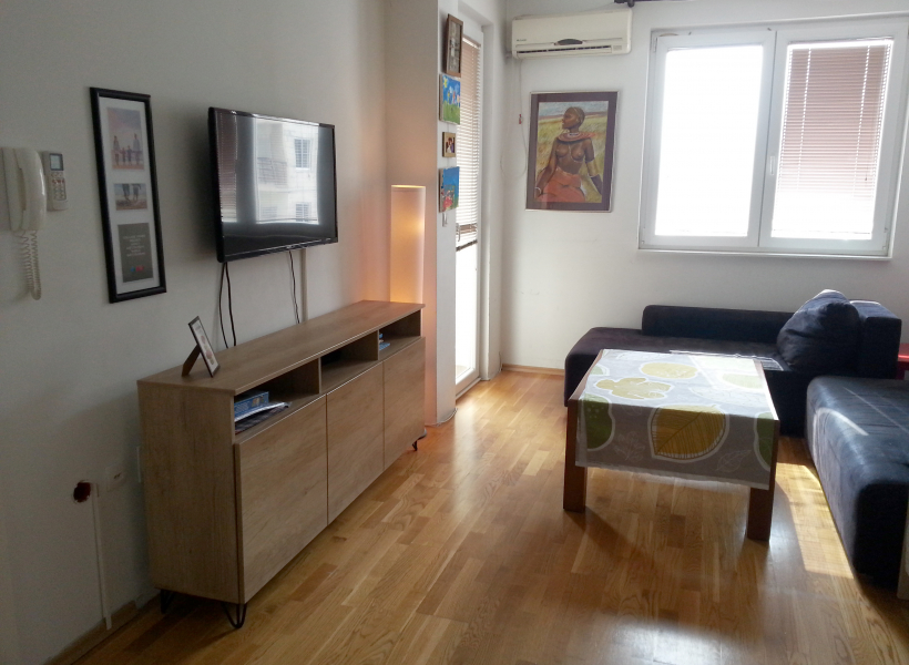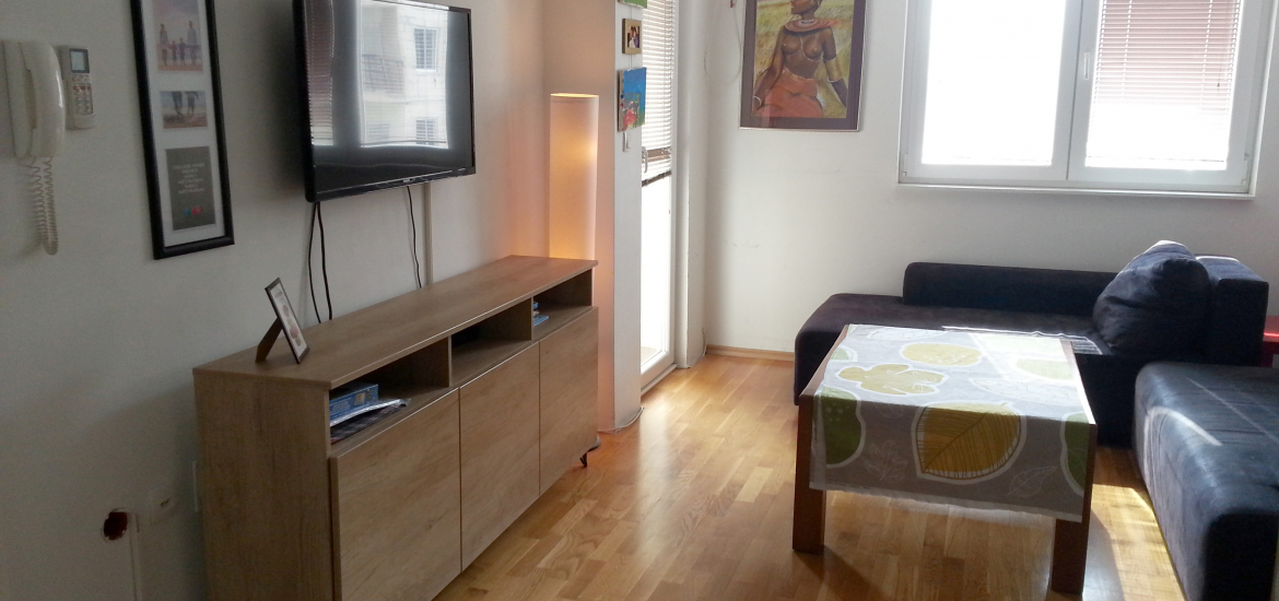 A new apartment in the green and tranquil part of the Gjorce Petrov neighbourhood with a size of 47m2 is being sold. The apartment features one bedroom, living room, dining room, toilet and terrace. Parking place available.