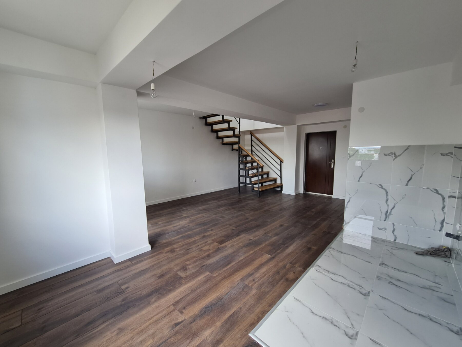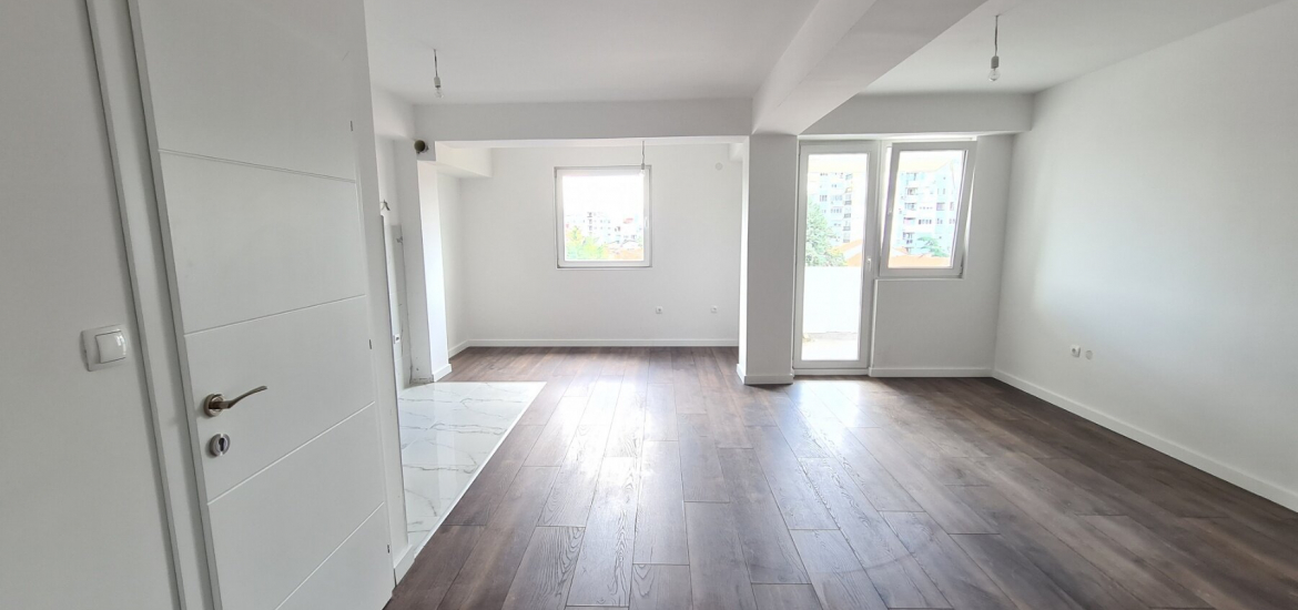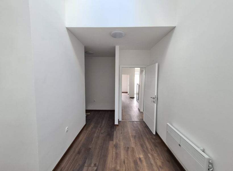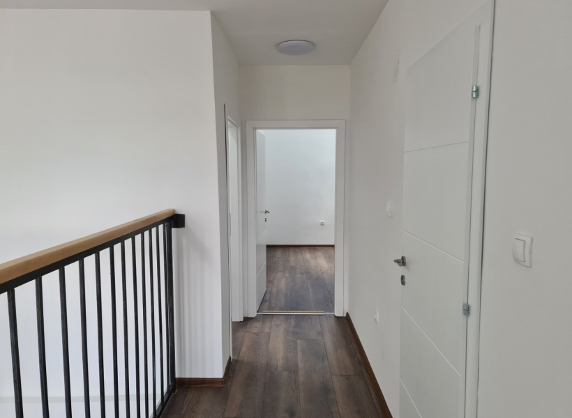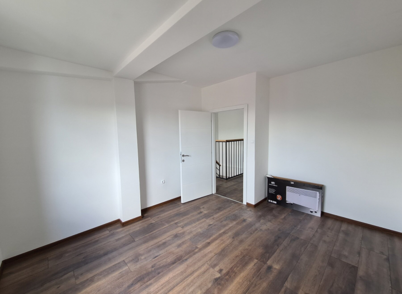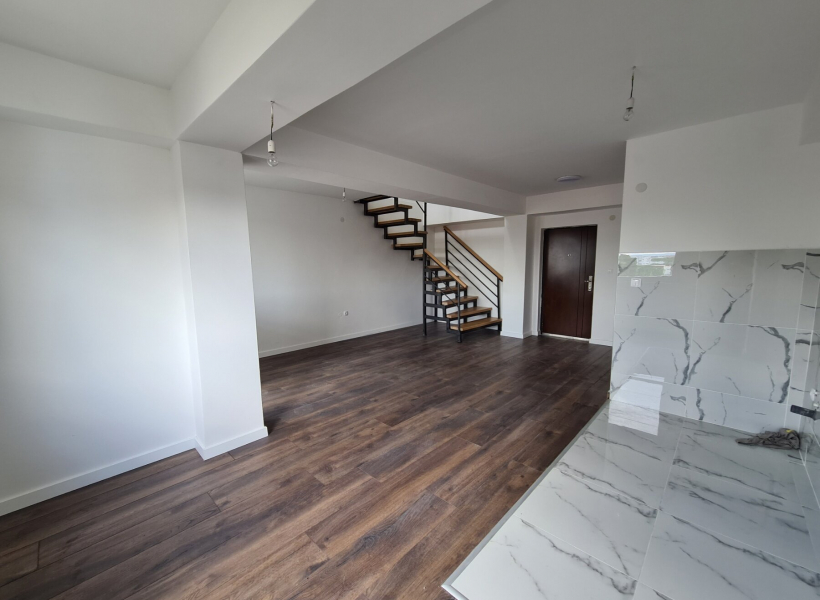 The apartment has a total area of 104m2, with spacious living room with kitchen, guest toilet and balcony, and on the second level the apartment has three bedrooms, bathroom and balcony.