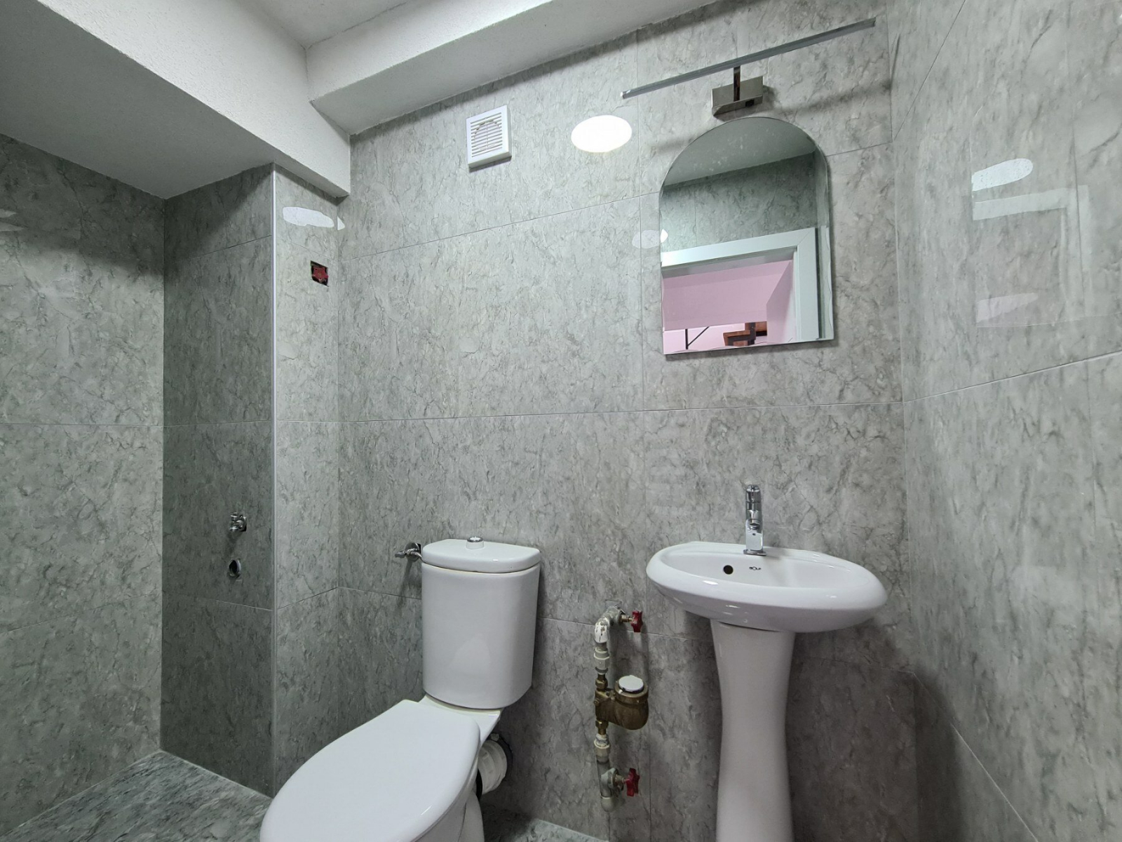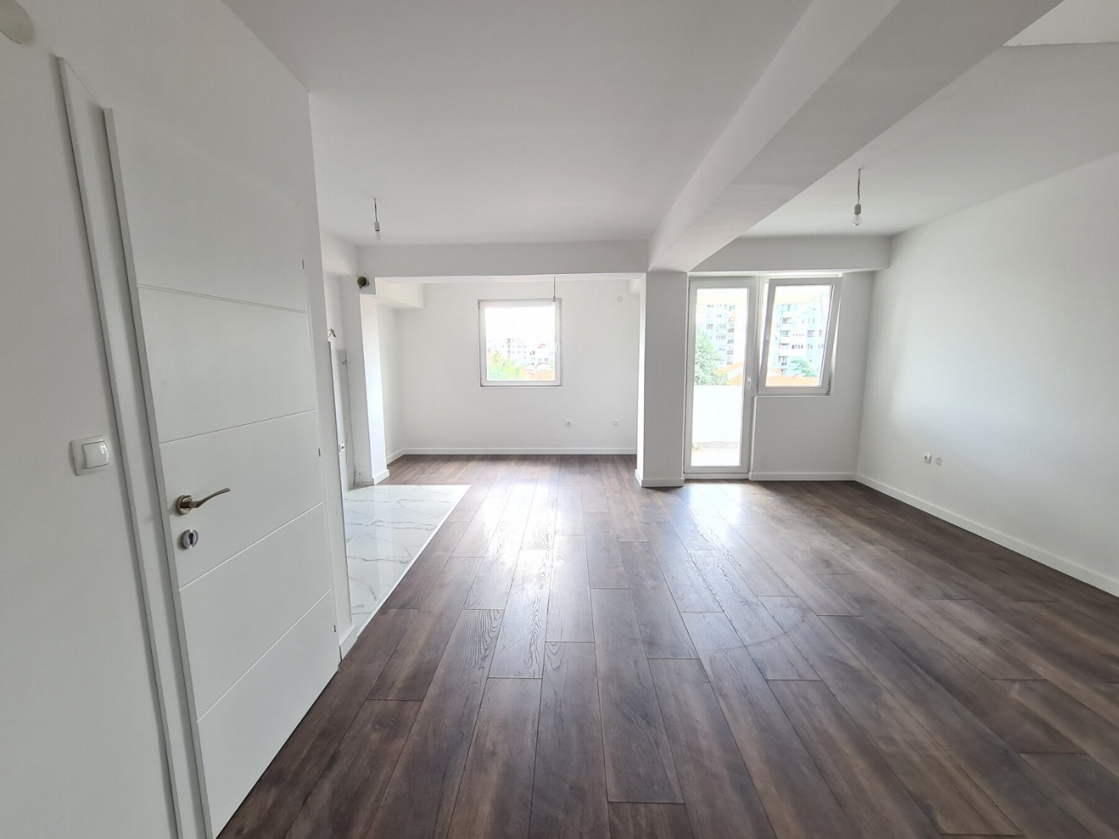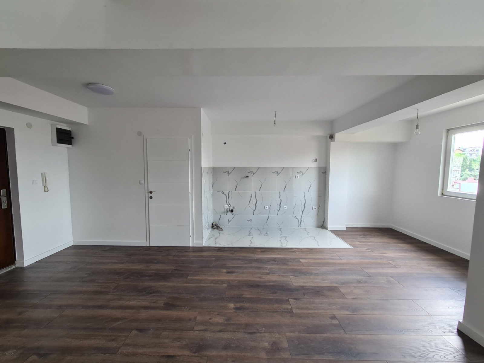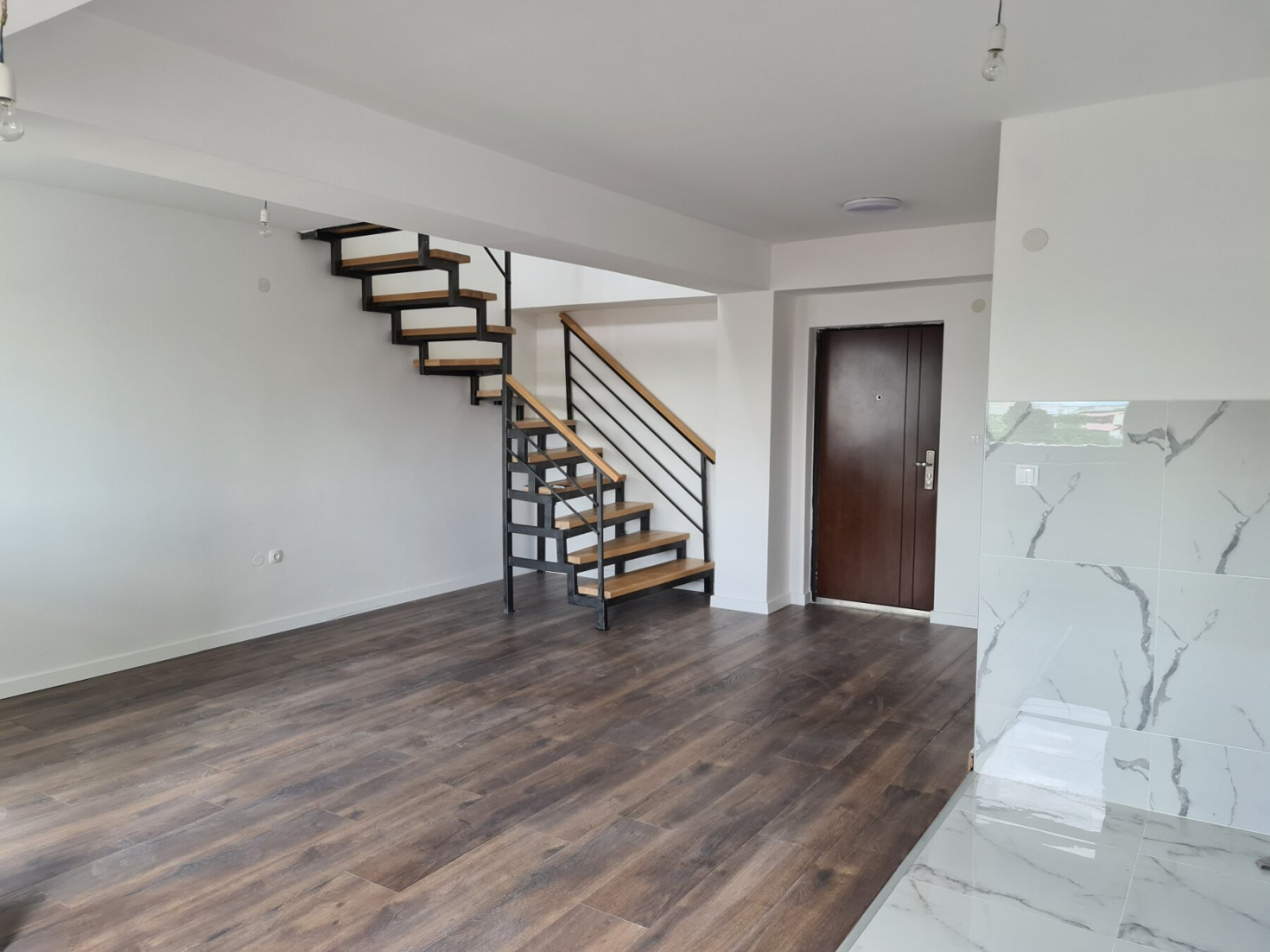 The apartment has a total area of 104m2, with spacious living room with kitchen, guest toilet and balcony, and on the second level the apartment has three bedrooms, bathroom and balcony.