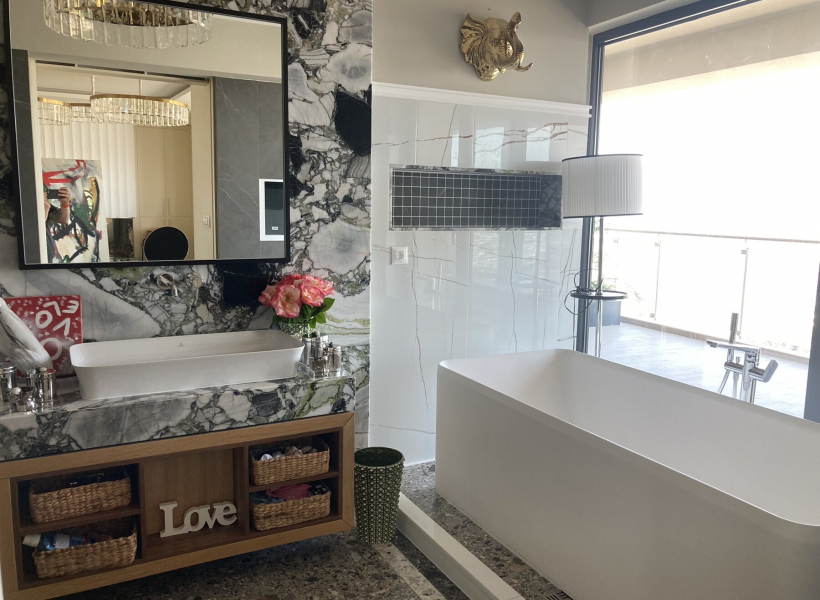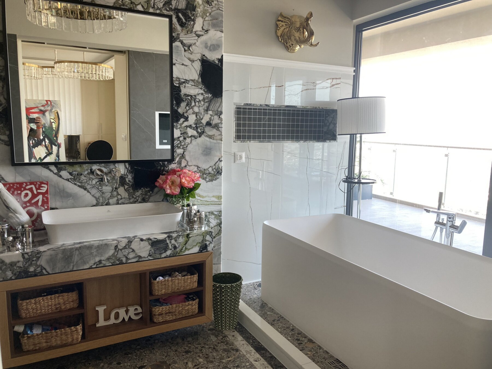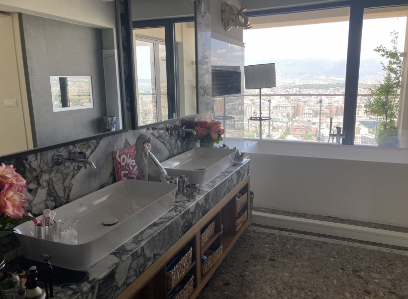 This modern luxurious apartment has an area of 500m2, consisting of spacious, full of light living room, fully equipped kitchen and dining room, five bedrooms and six bathrooms, beautiful spacious terrace with an unobstructed city view for enjoyment and relaxation.