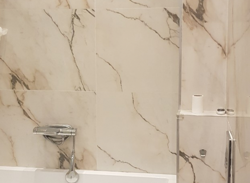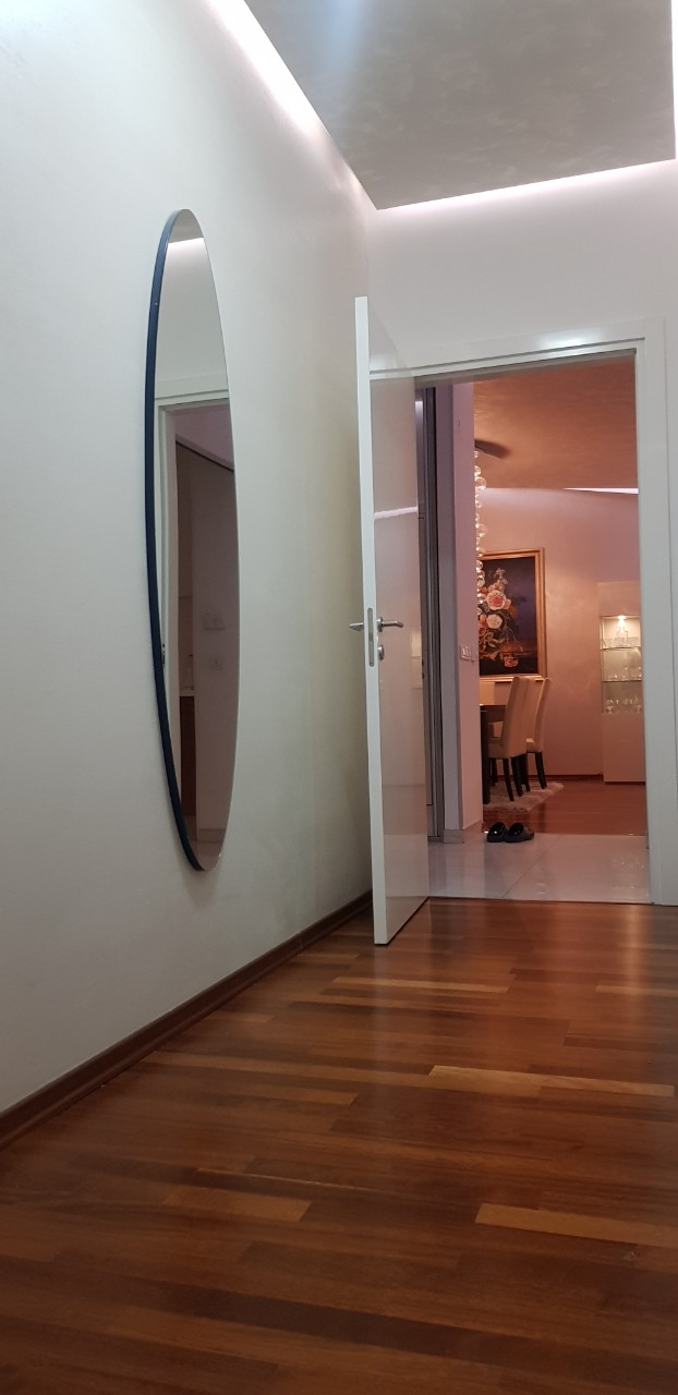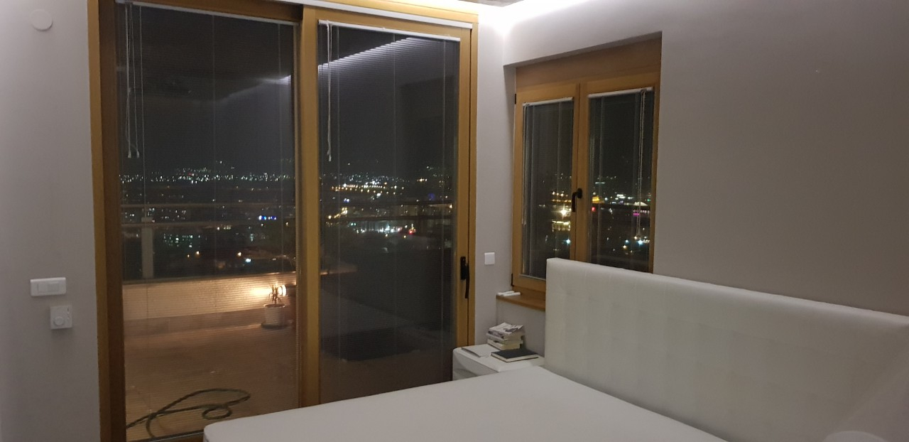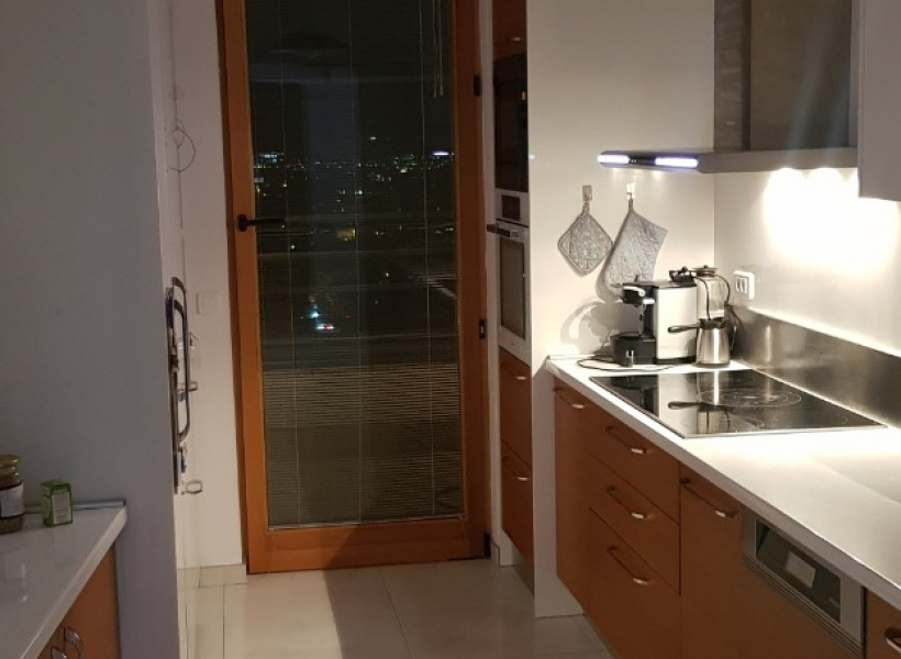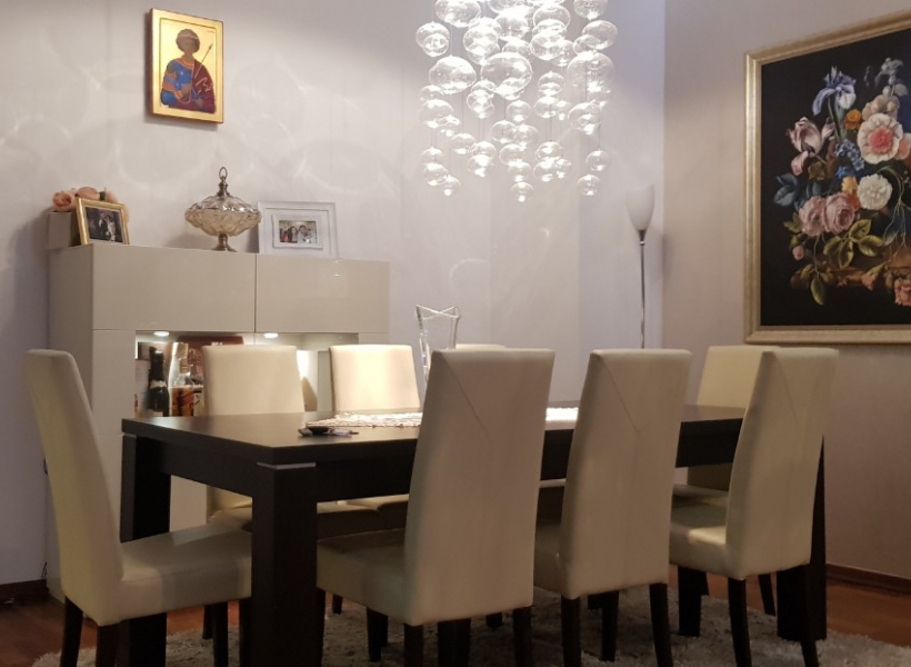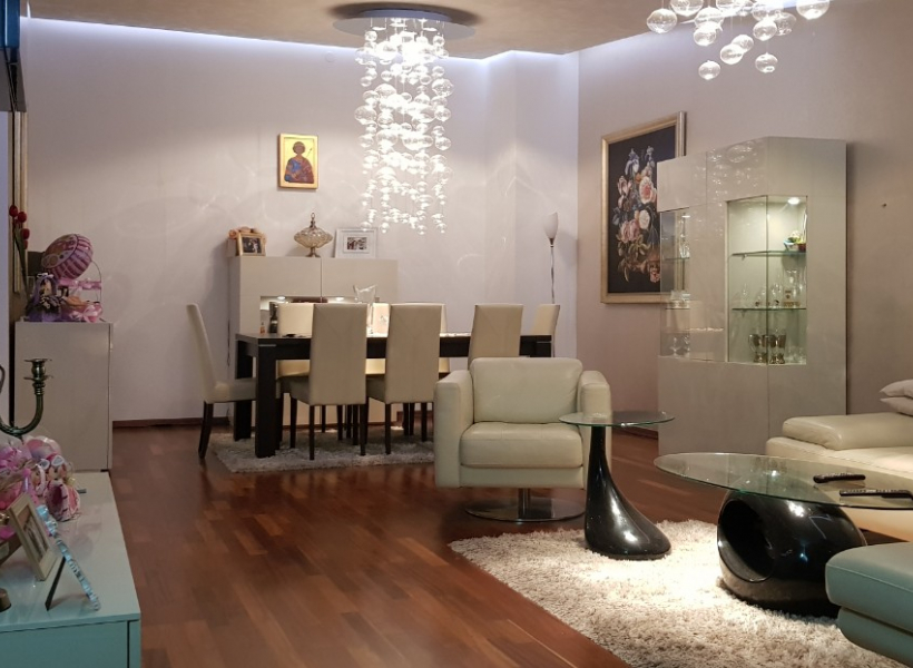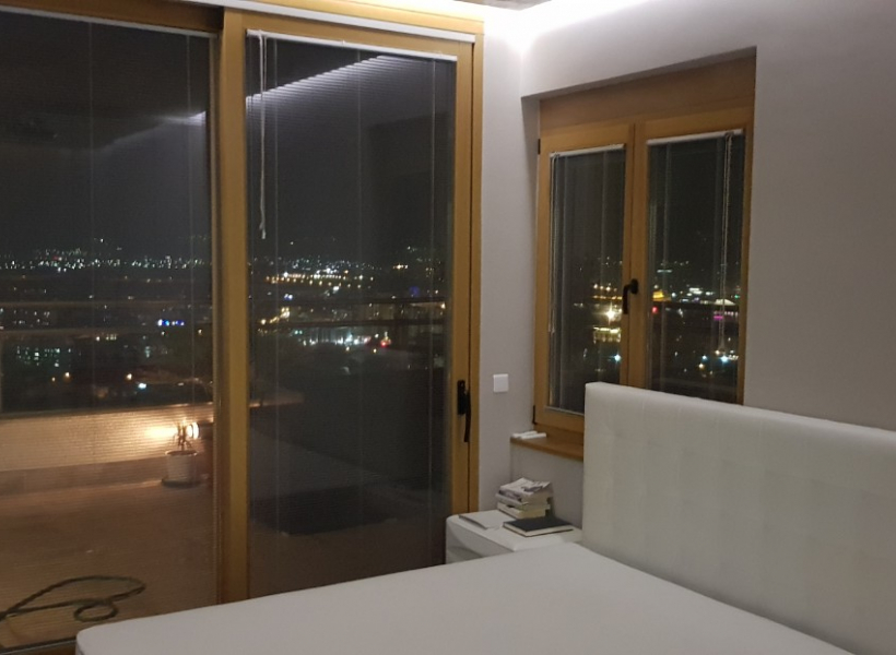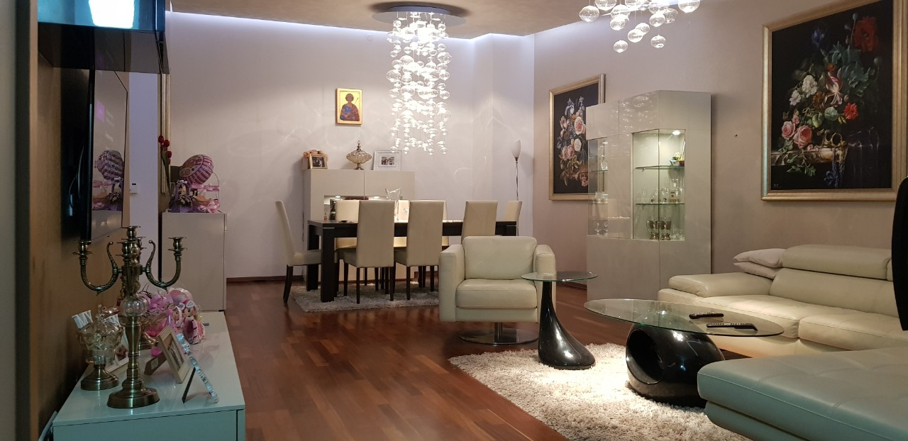 The apartment has total area of 170m2 organized as a penthouse with a terrace of 60m2 and 110m2 of living space, located on the 5th floor.