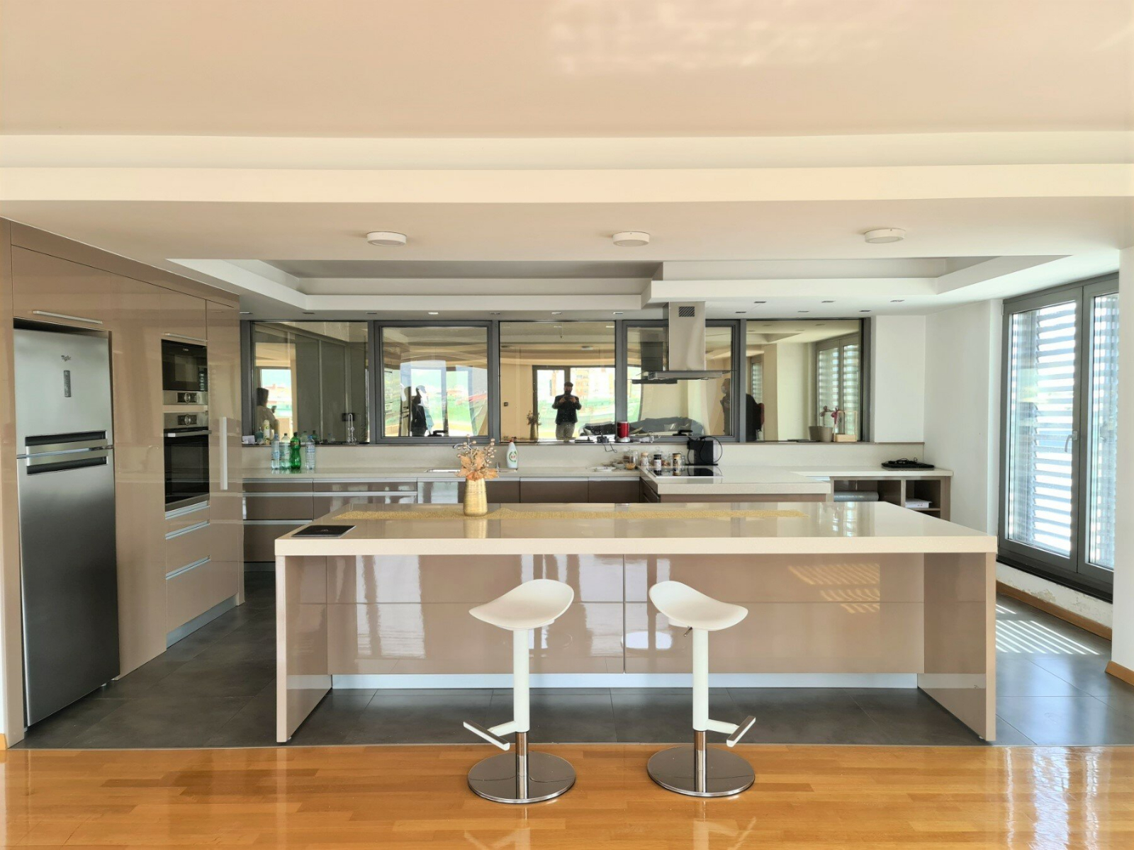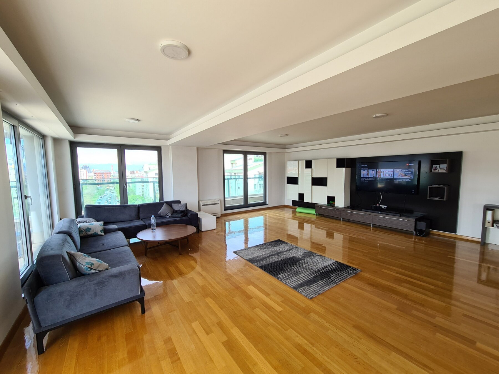 The penthouse is located on a great location, with a beautiful 360 degree view of the whole city, with two spacious and bright bedrooms, spacious and bright living room with South orientation, new and modern kitchen, two spacious bathrooms and two separate terraces with beautiful views.