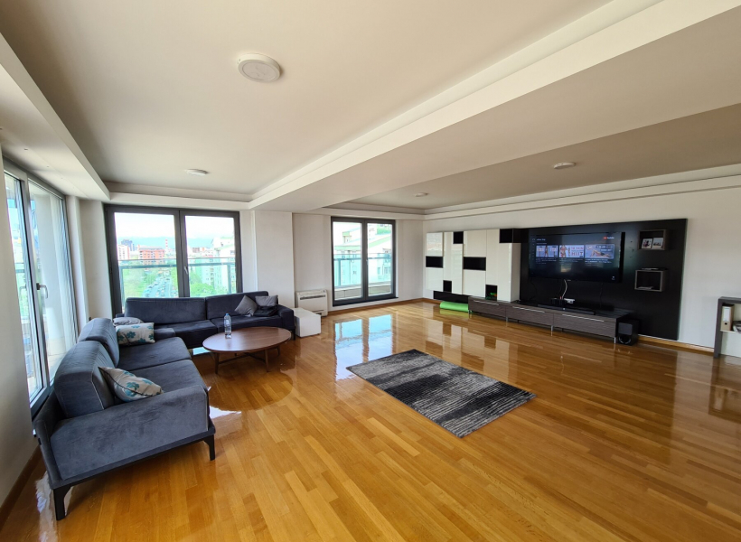 Exclusive penthouse apartment for sale in Aerodrom, with a total area of 211m2 and 200m2 terraces.