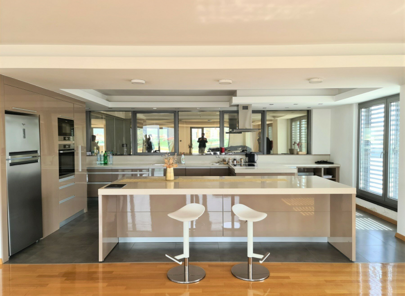 The penthouse is located on the top floor, in a building with private entrance, 24 hour security and maintenance of the building, private heating with fan-coils and a private parking space in the underground garage of the shopping mall, as well as another parking space that can be used for 15eur per month.