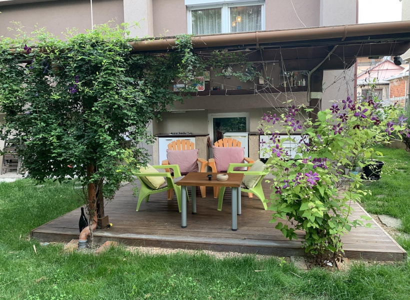 The apartment has two bedrooms, living room with a dining area, kitchen, two toilets, terrace and yard.