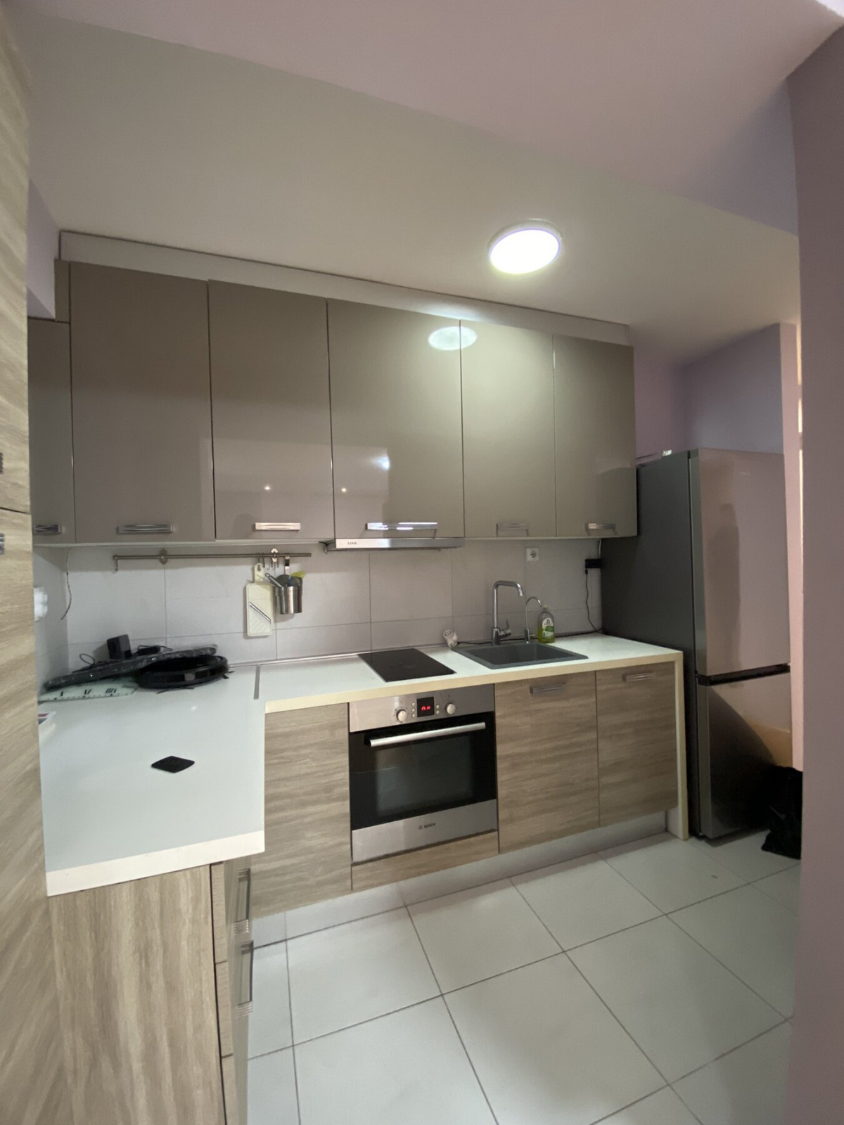 The apartment is located on the fifth floor and has three bedrooms, living room with a dining area, kitchen and two toilets.