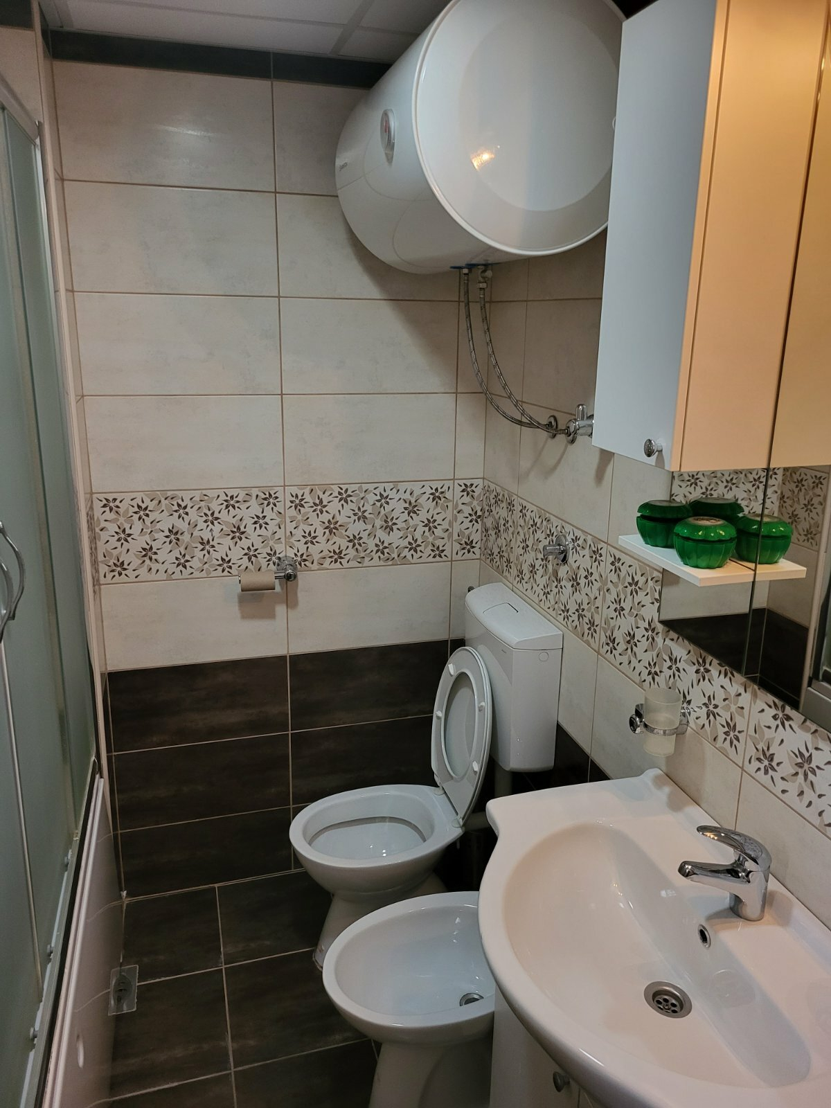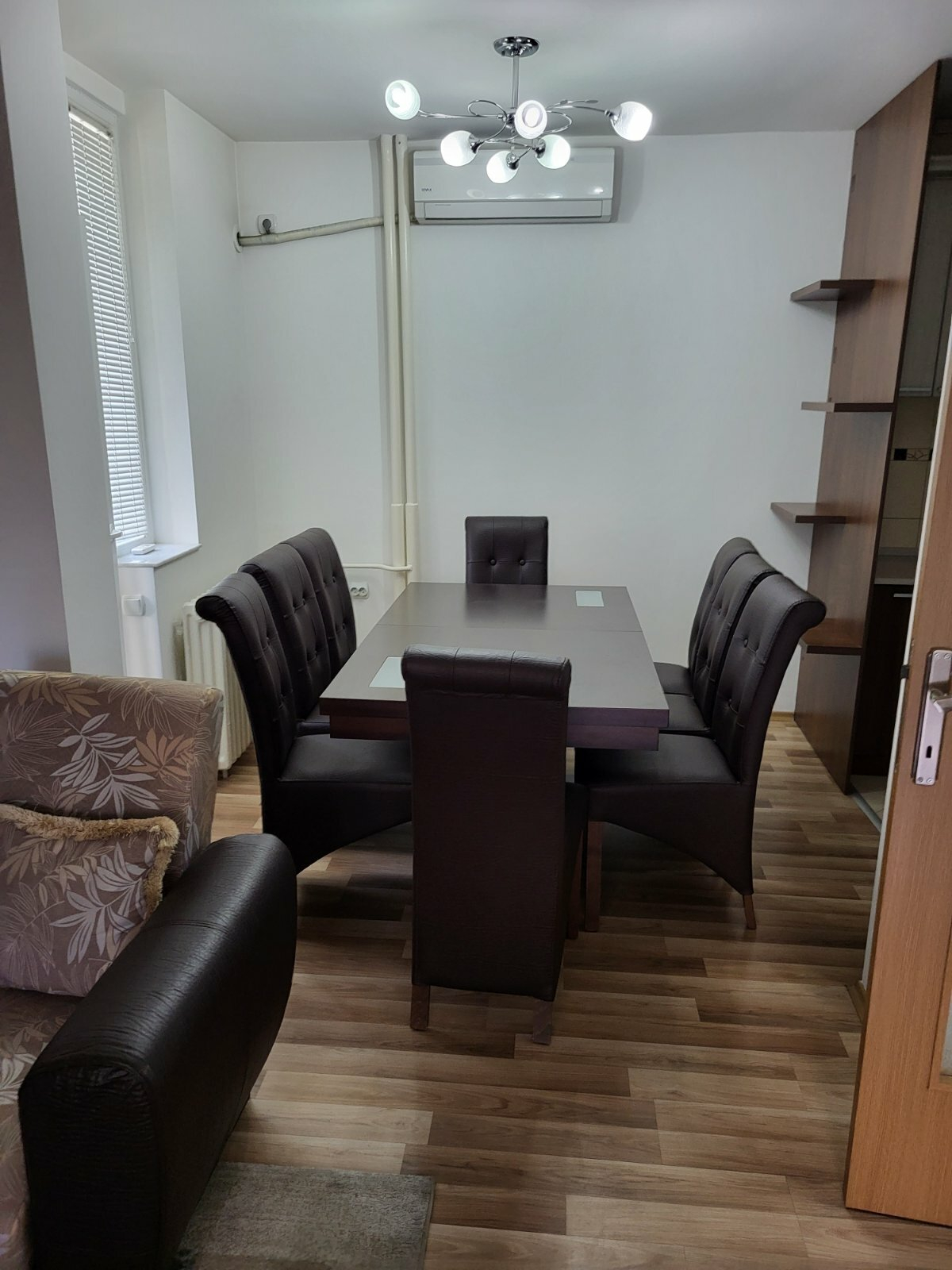Each room is equipped with air conditioning, and the apartment has central heating.