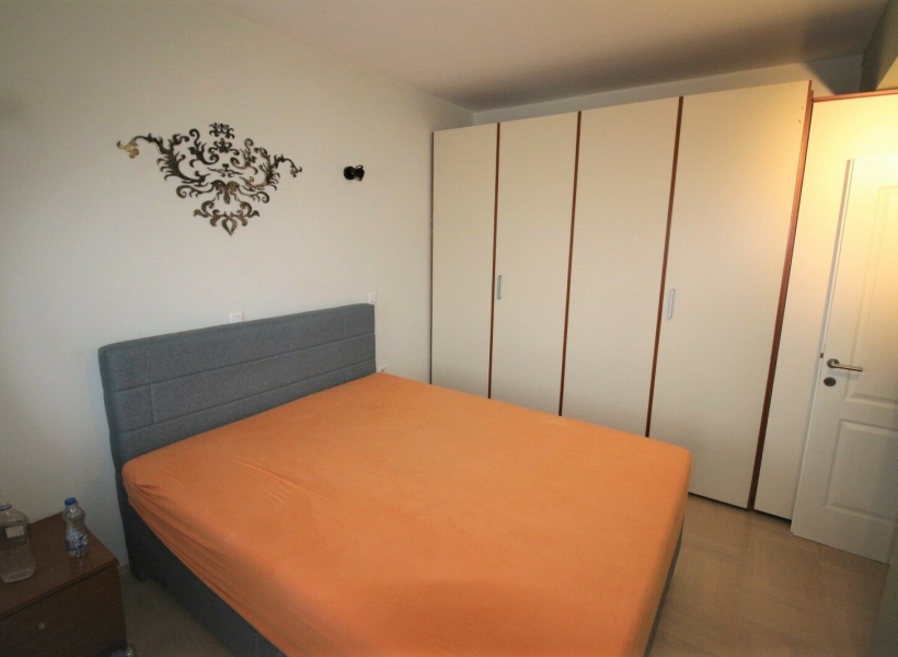 The apartment has two bedrooms, cozy living room with kitchen and dining table, bathroom and two terraces.
