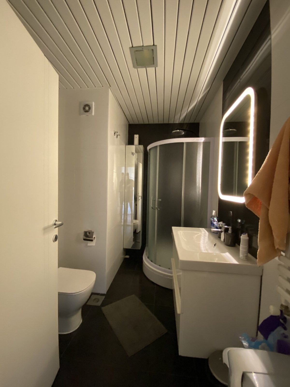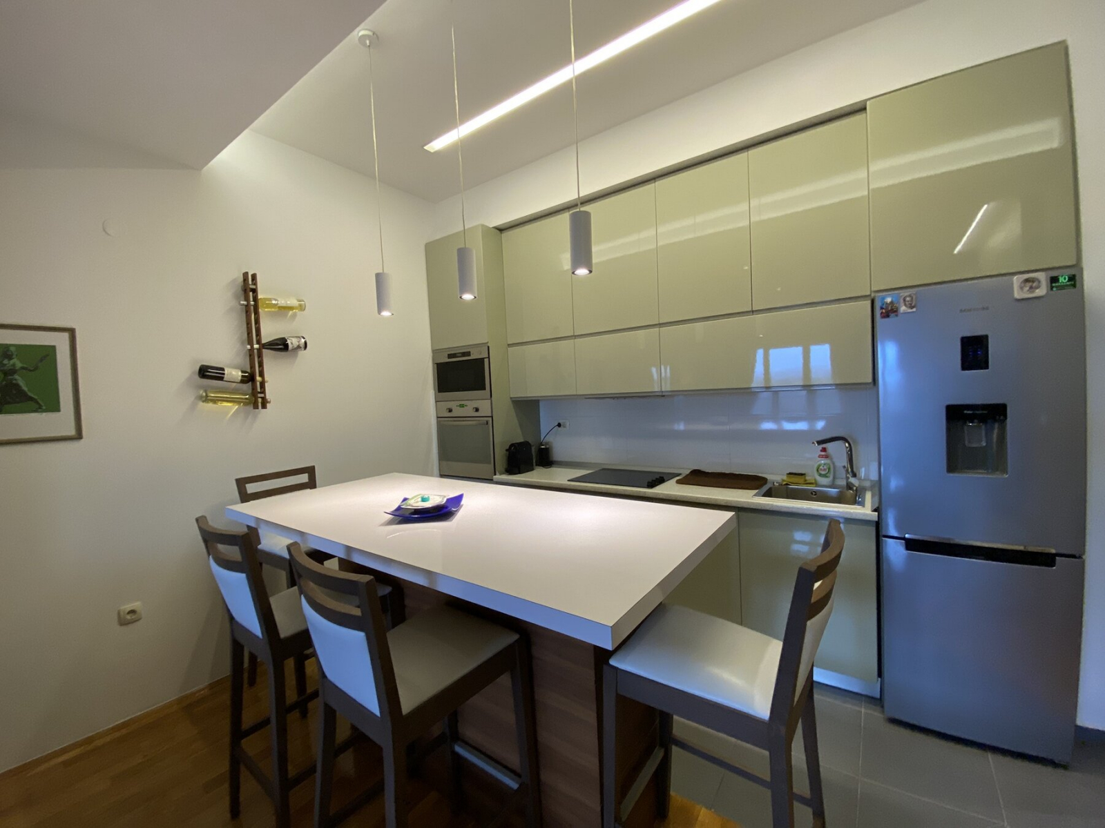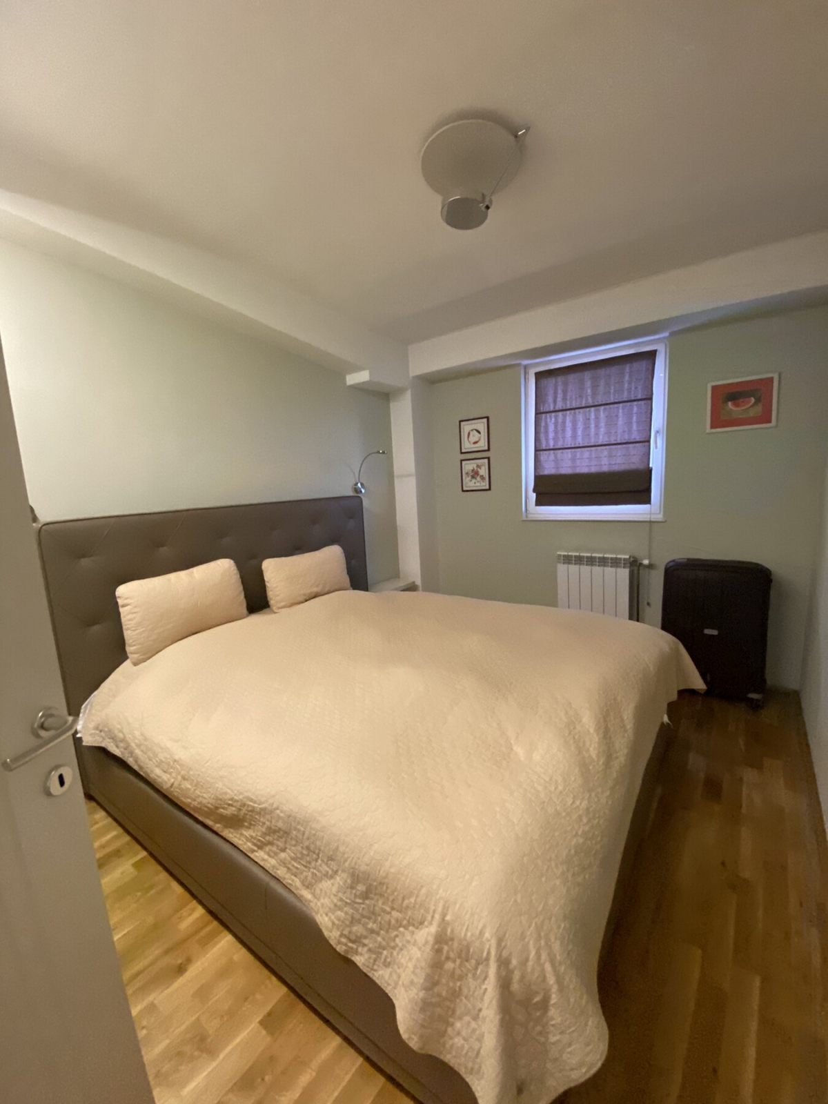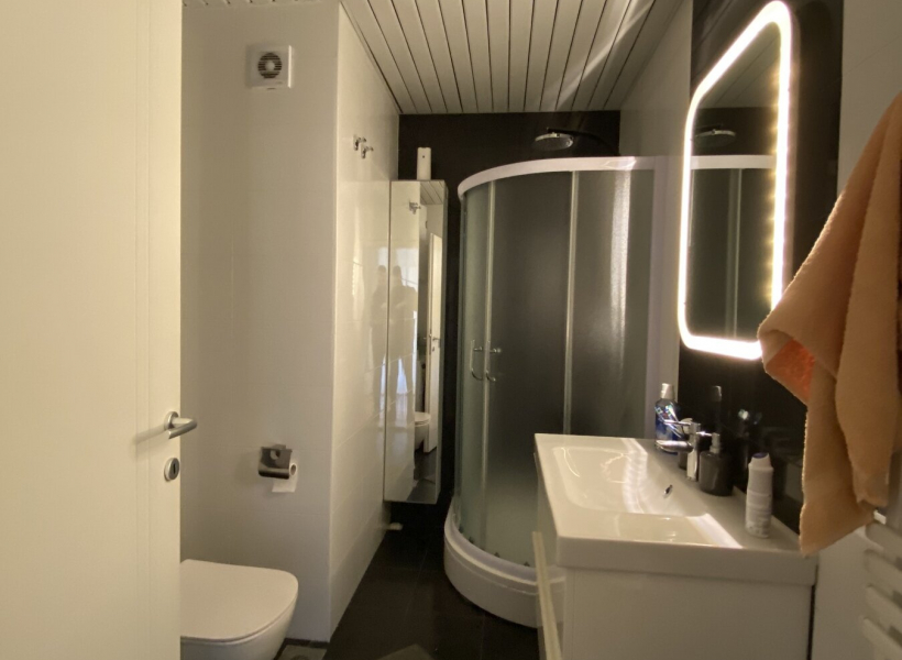 Heating and cooling in the apartment is regulated via city heating and inverter air conditioners.