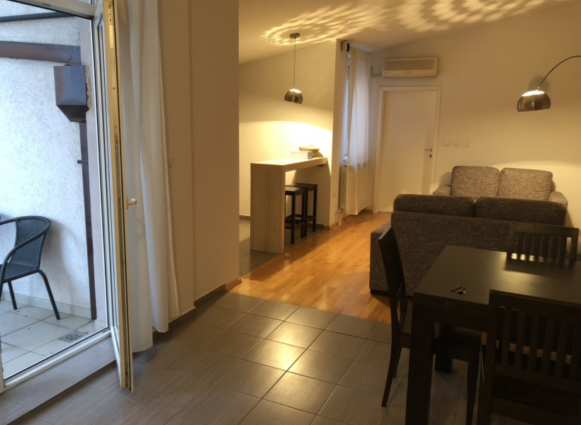 Fully furnished, comfortable apartment 60m2 in a small building is for rent. The apartment has one bedroom, cozy living room with open, fully equipped kitchen, toilet with shower and terrace with beautiful views.