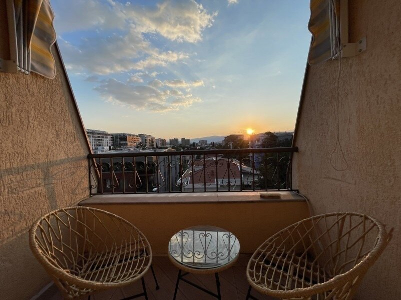 The apartment is located on the 4th floor and has two bedrooms, living room, kitchen, dining area, two toilets and a terrace with beautiful city views.