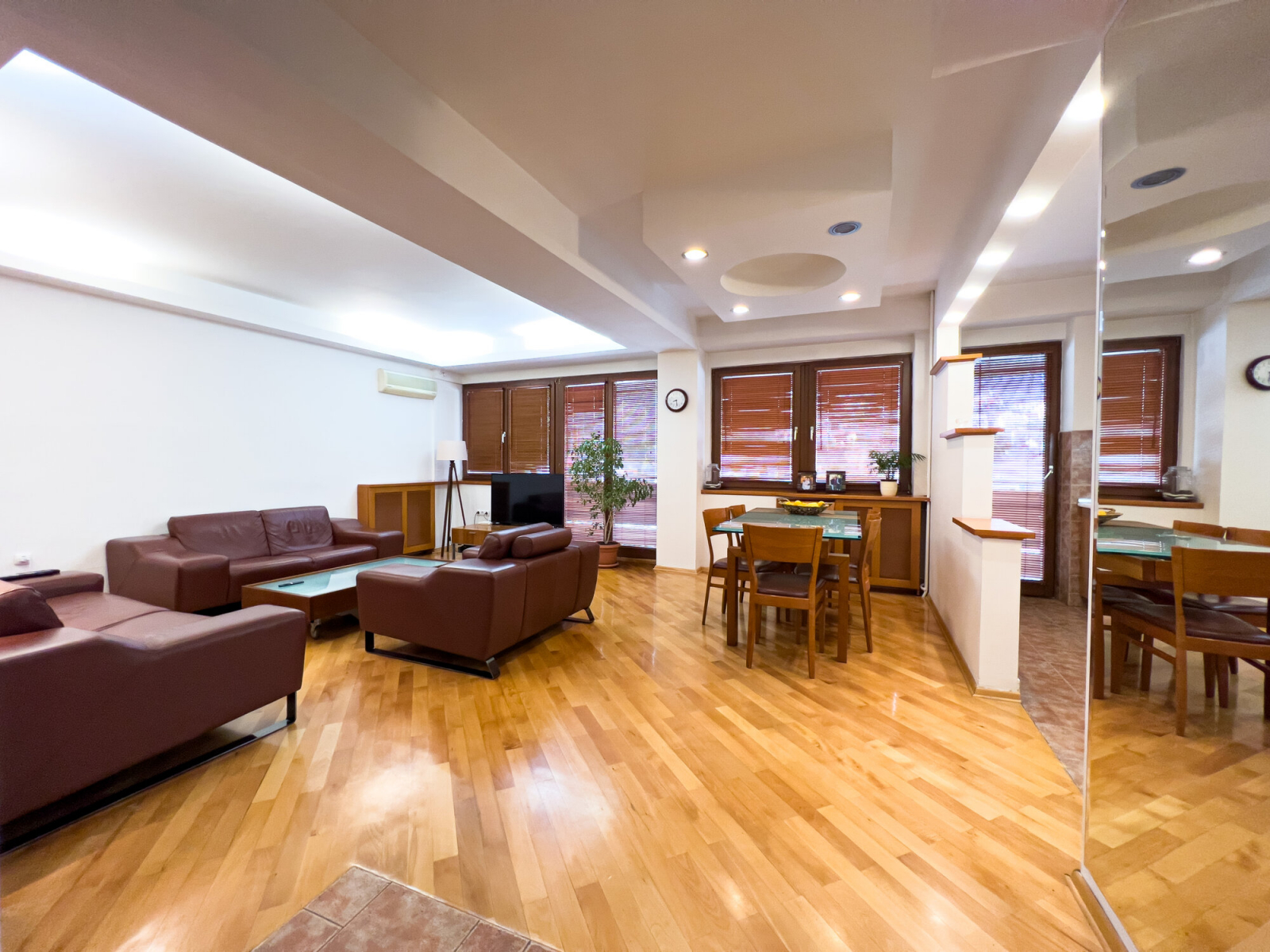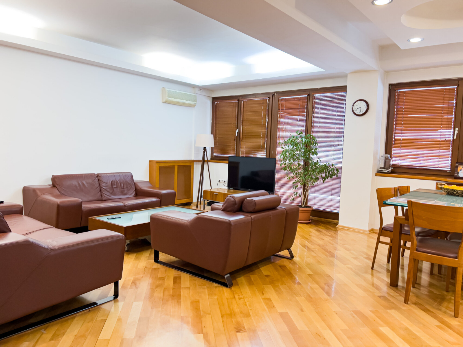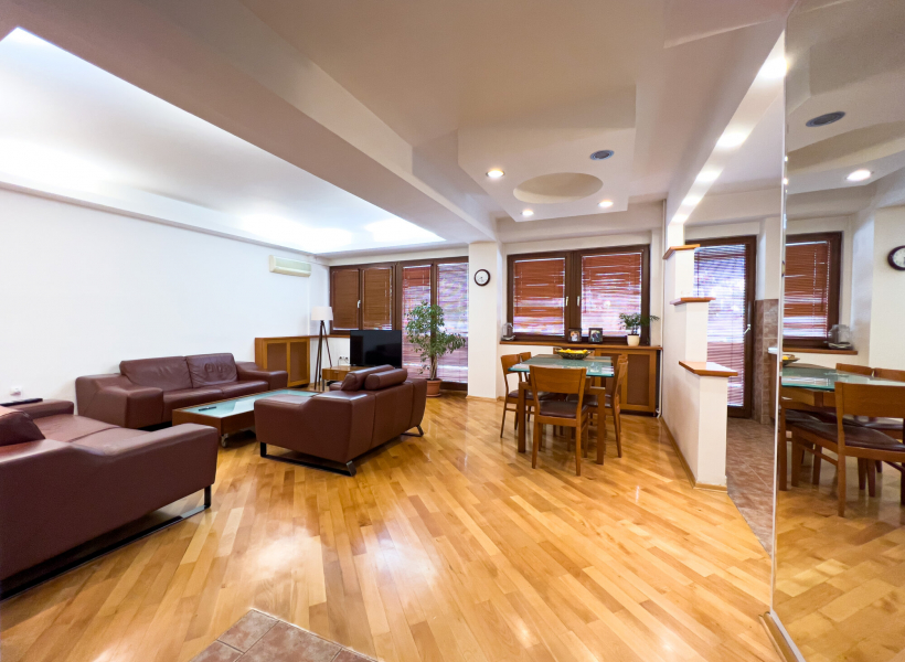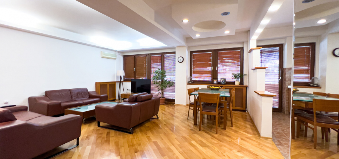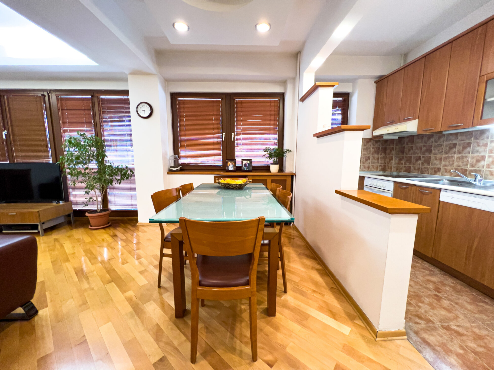 The apartment has a total area of 87m2, has a living room with dining area, kitchen connected to the pantry and a terrace that has south-west orientation and overlooks Vodno, two bedrooms with eastern orientation, bathroom and toilet.
