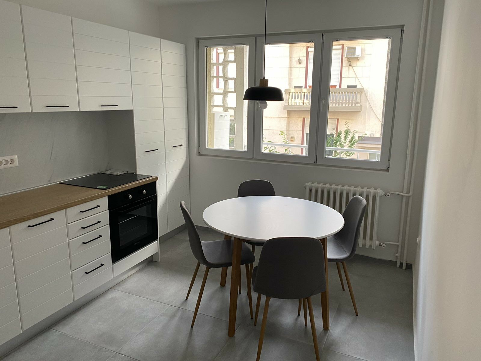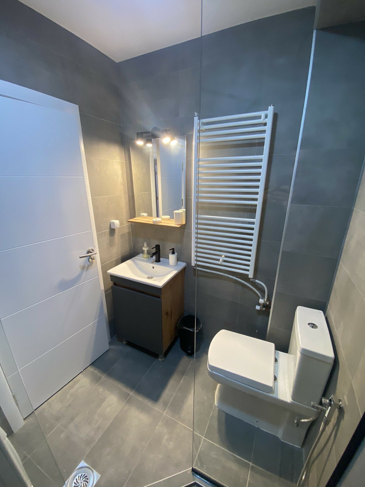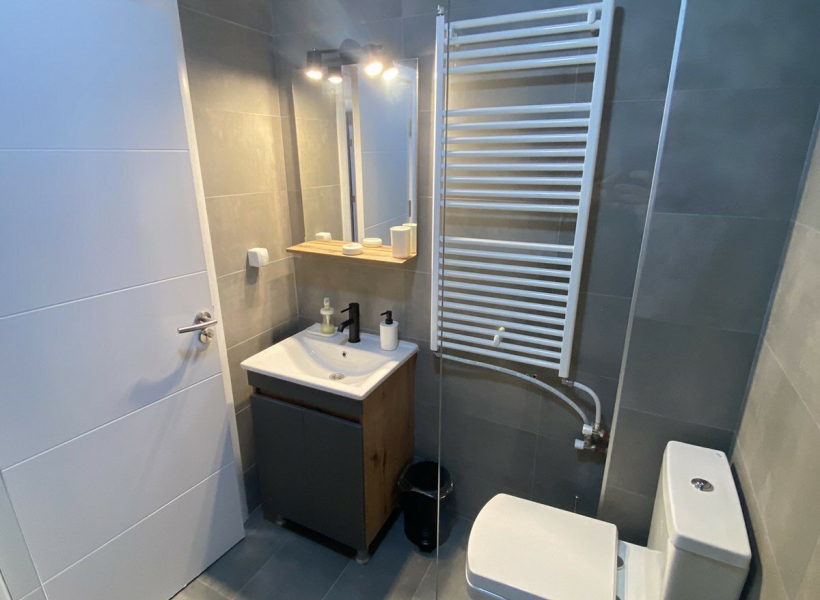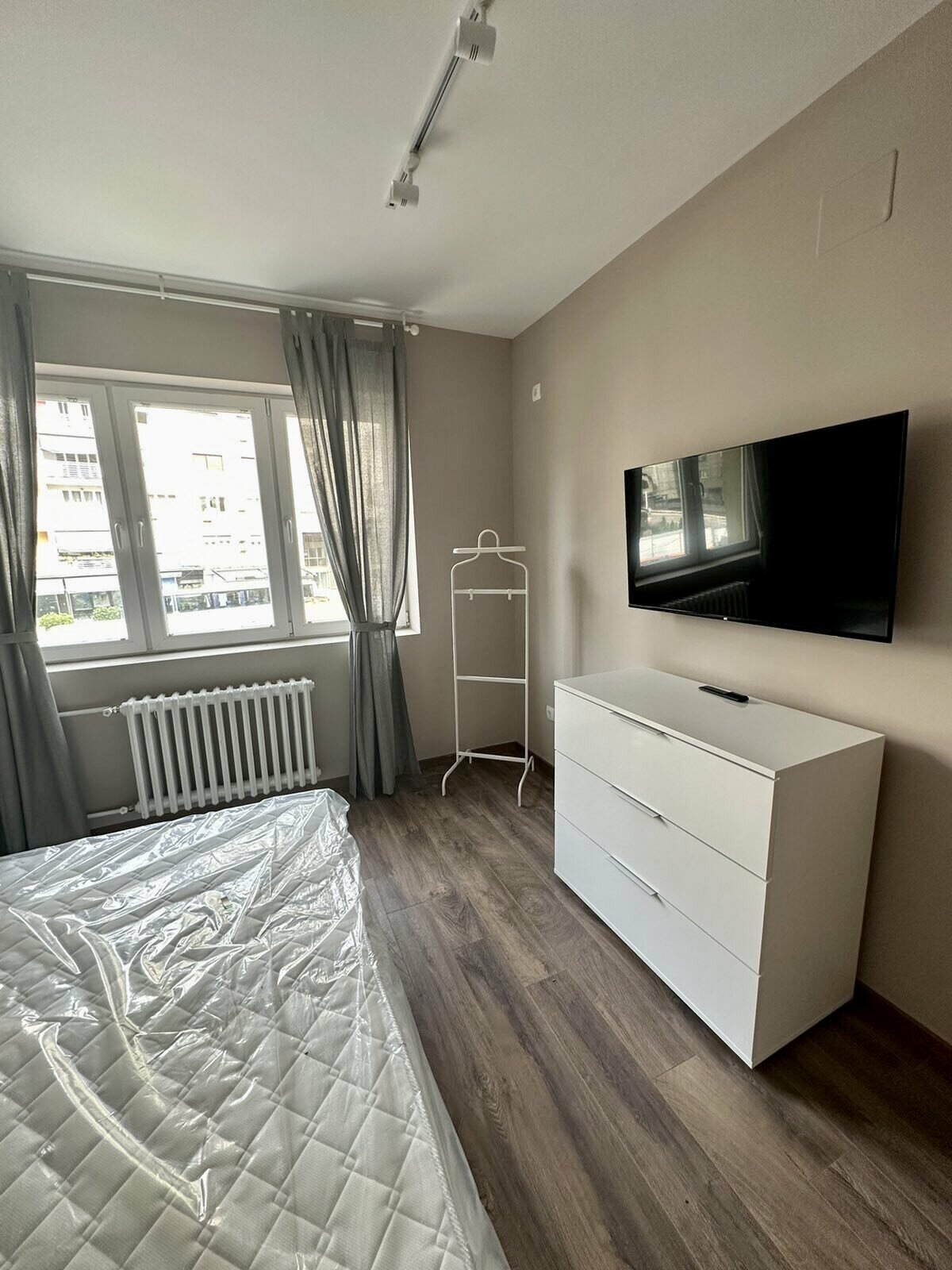 Heating and cooling in the apartment is regulated through central heating and inverter air conditioners.