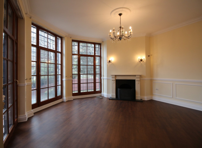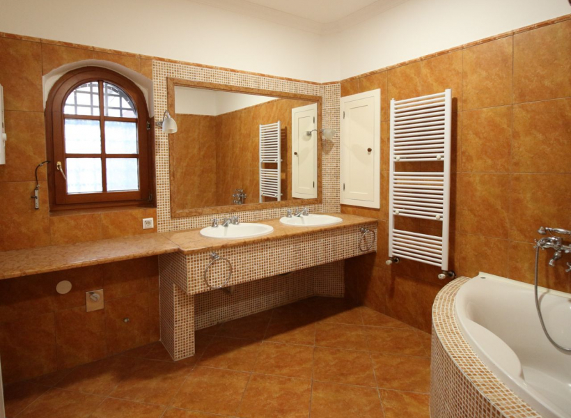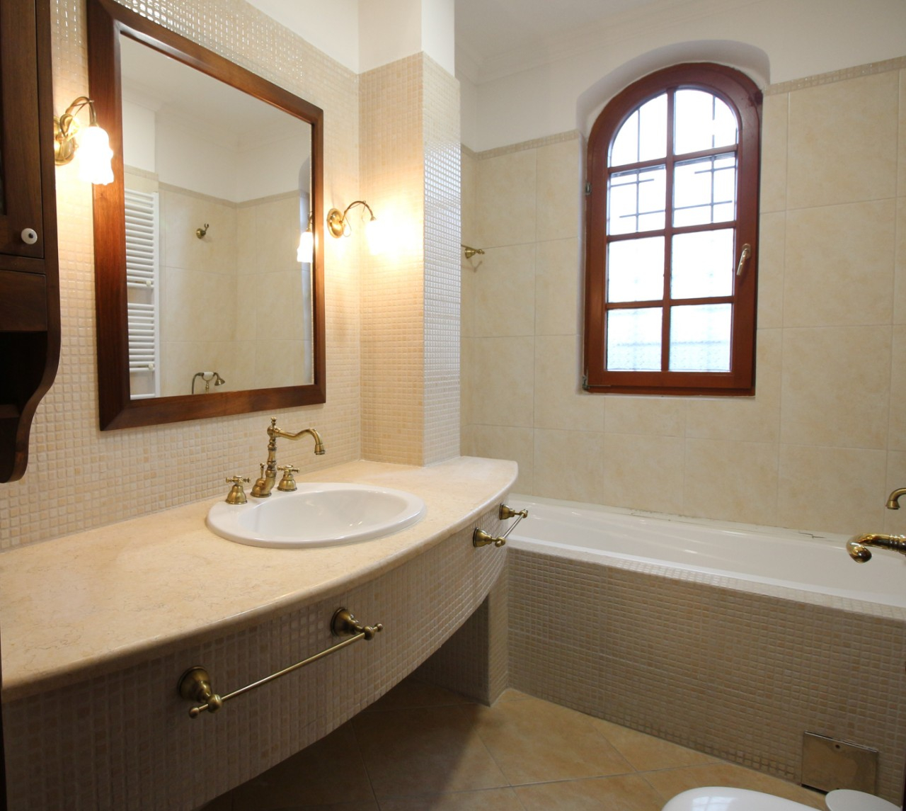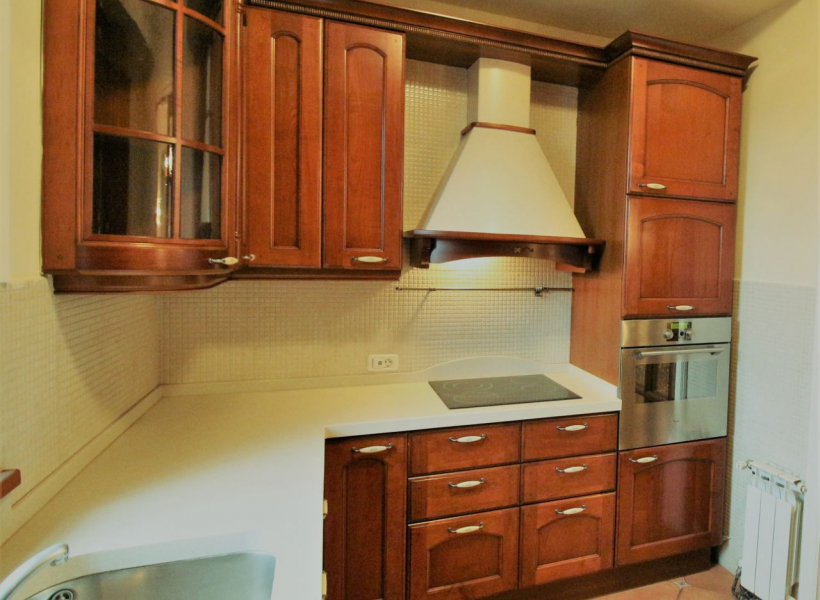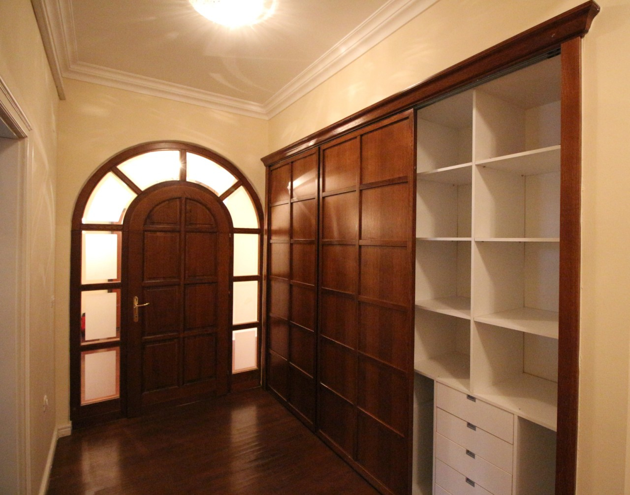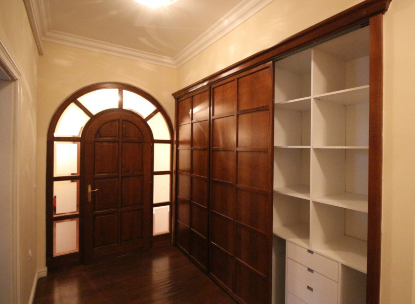 The apartment has a spacious living room with fireplace and beautiful view to the lake of the complex, 5 bedrooms, 3 bathrooms, luxurious lighting and kitchen, as well as a courtyard with outdoor sofas.