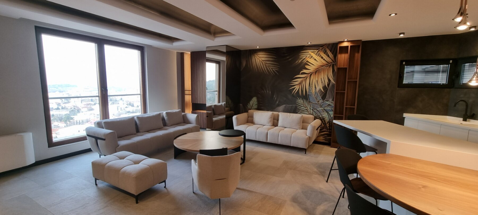 The tenants of the apartment will have the benefit of free breakfast in the Sky Bar in Hotel Panoramika on Vodno, 20% discount on the entire menu in the Sky Bar and free use of the spa services and the gym within the hotel.