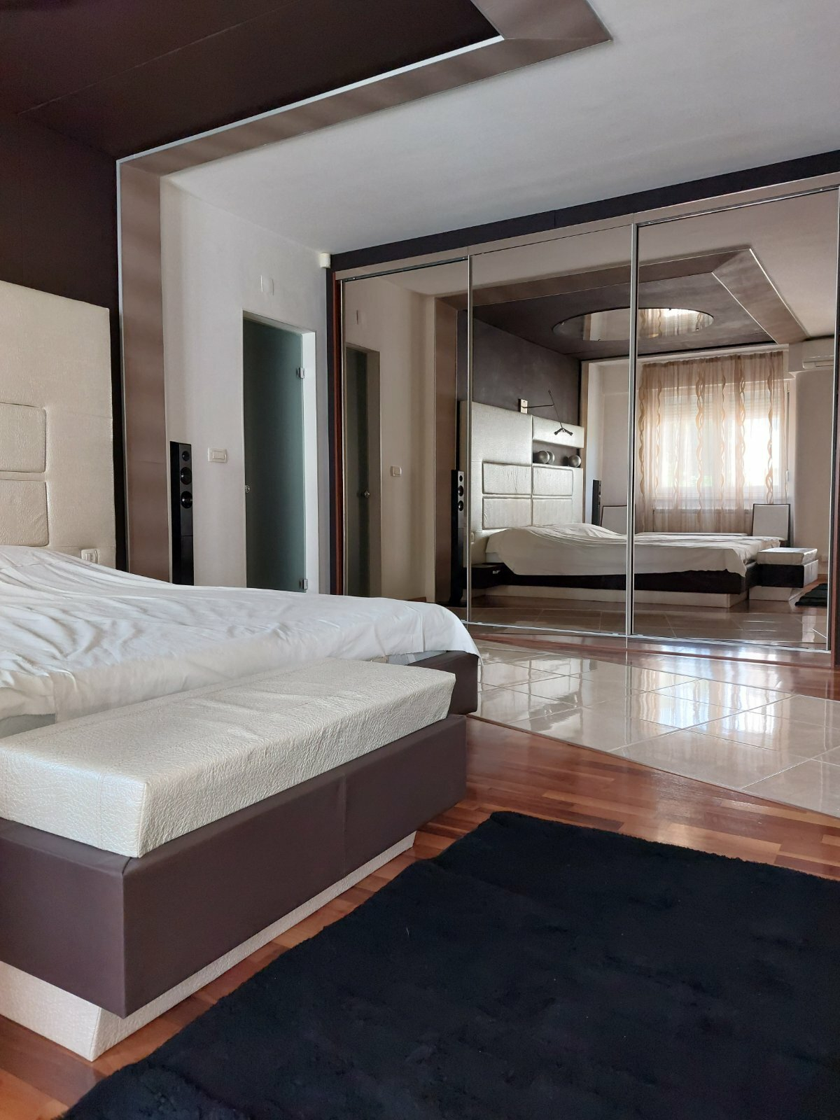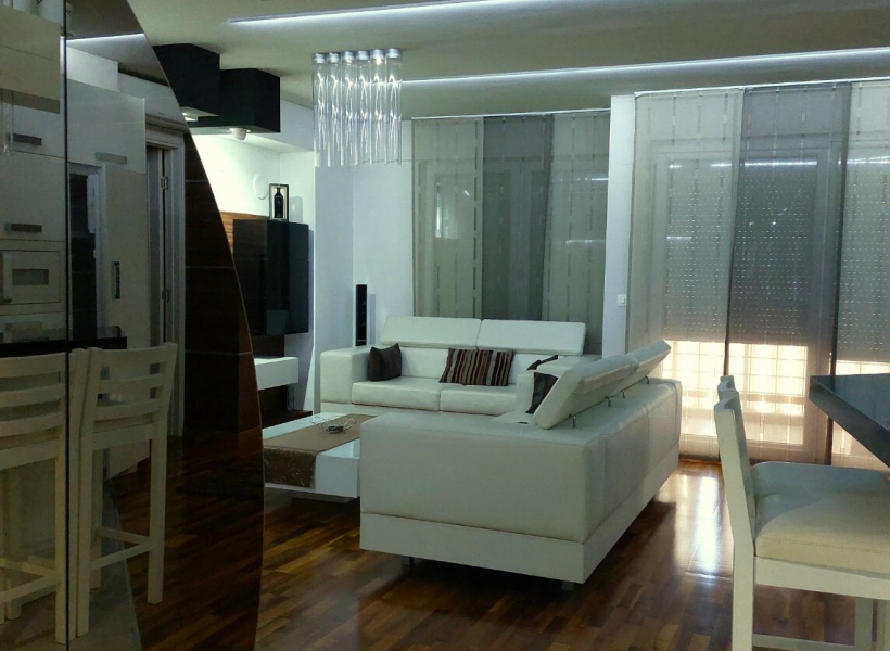 The apartment is located in new building, on the third floor, with a total area of 105m2 and consists of living room, fully equipped kitchen with dining room, bedroom with space for relaxation, sauna, one bathroom, one toilet and a spacious terrace with a beautiful view.