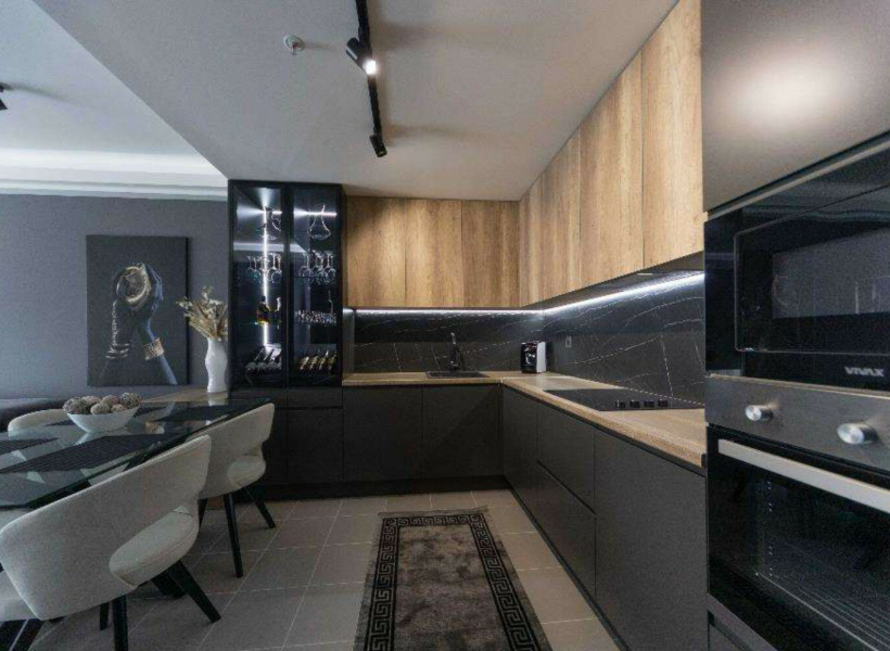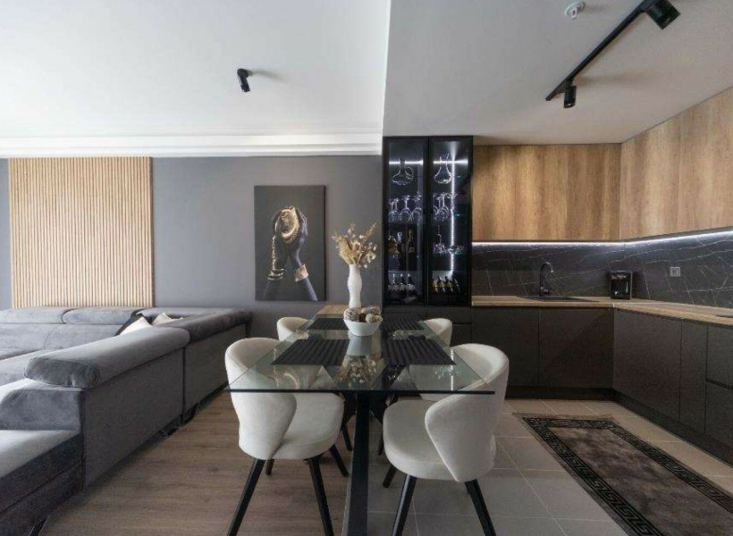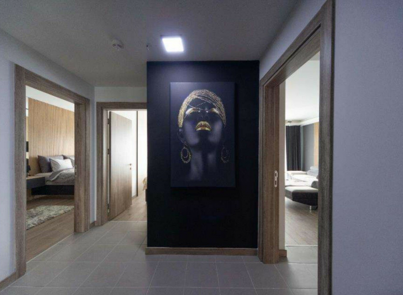 The apartment has a total area of 80m2, with modernly equipped living room with kitchen, two bedrooms, bathroom and glazed terrace with a beautiful view of Skoje.