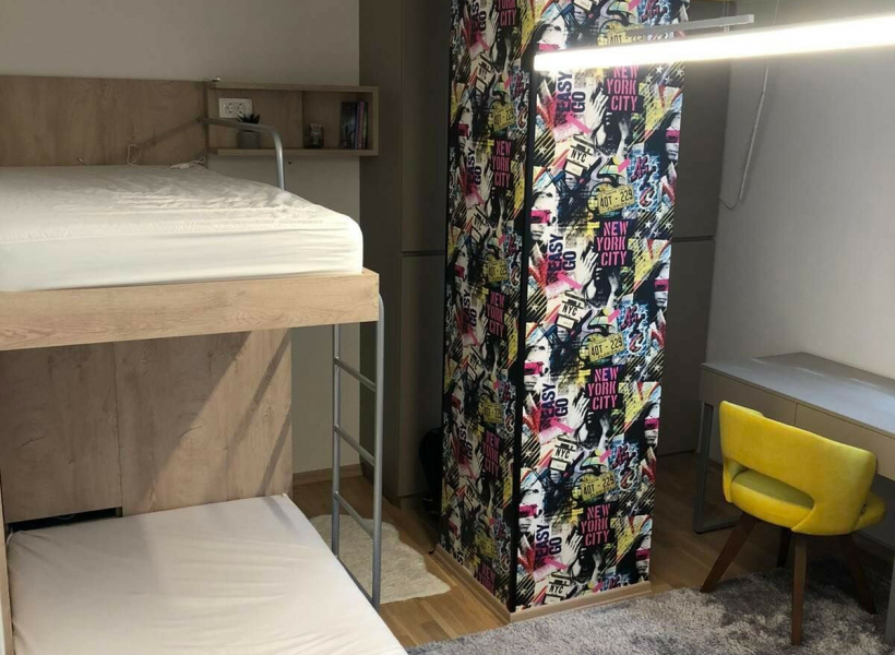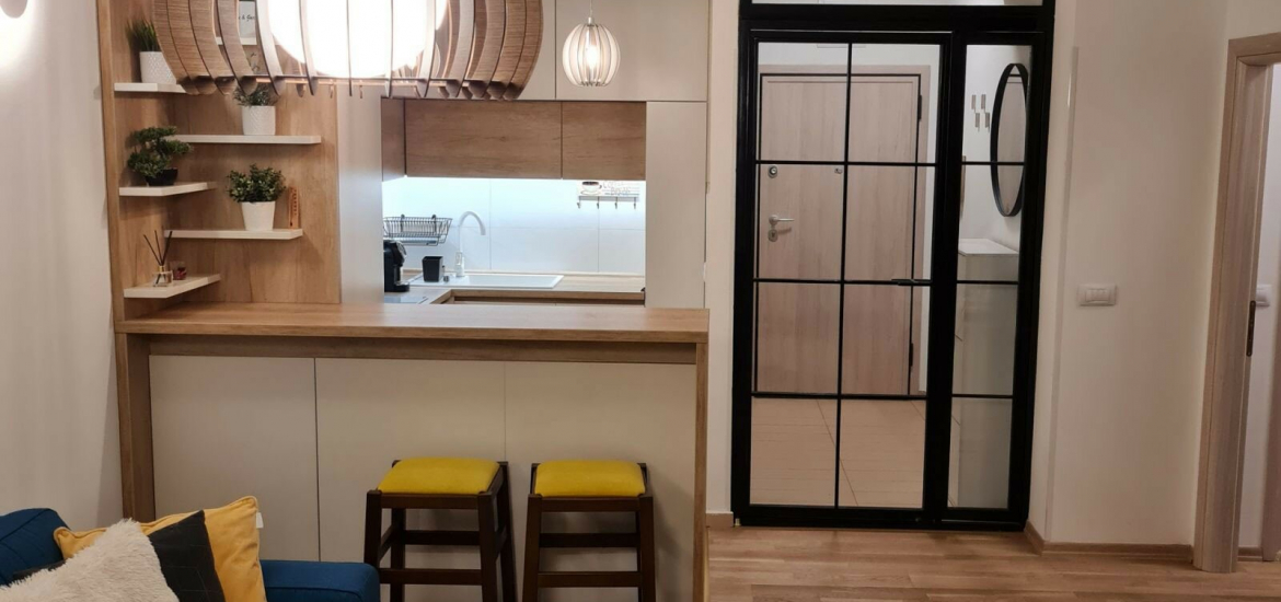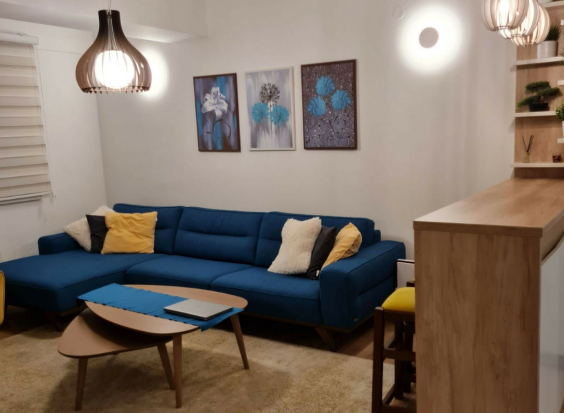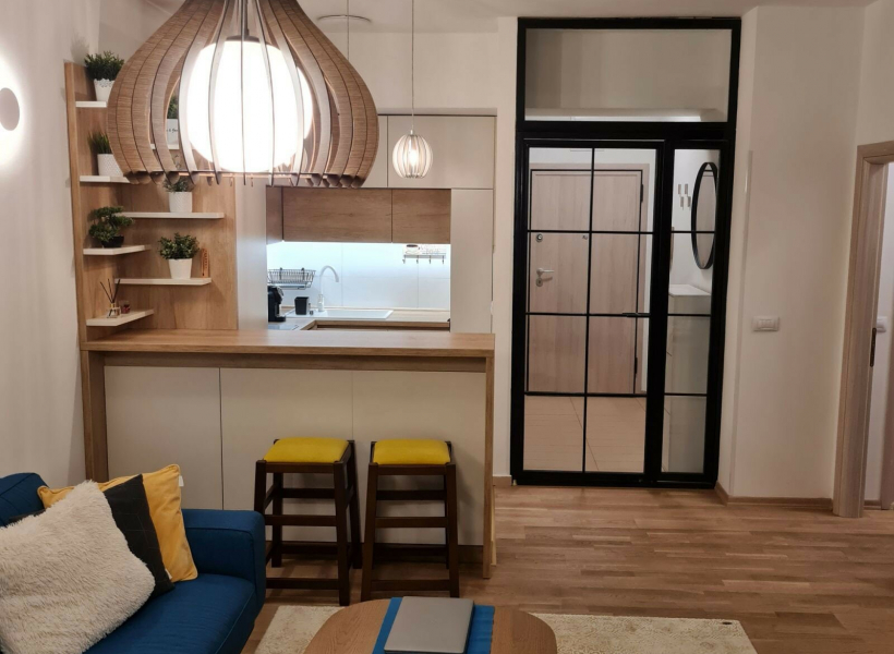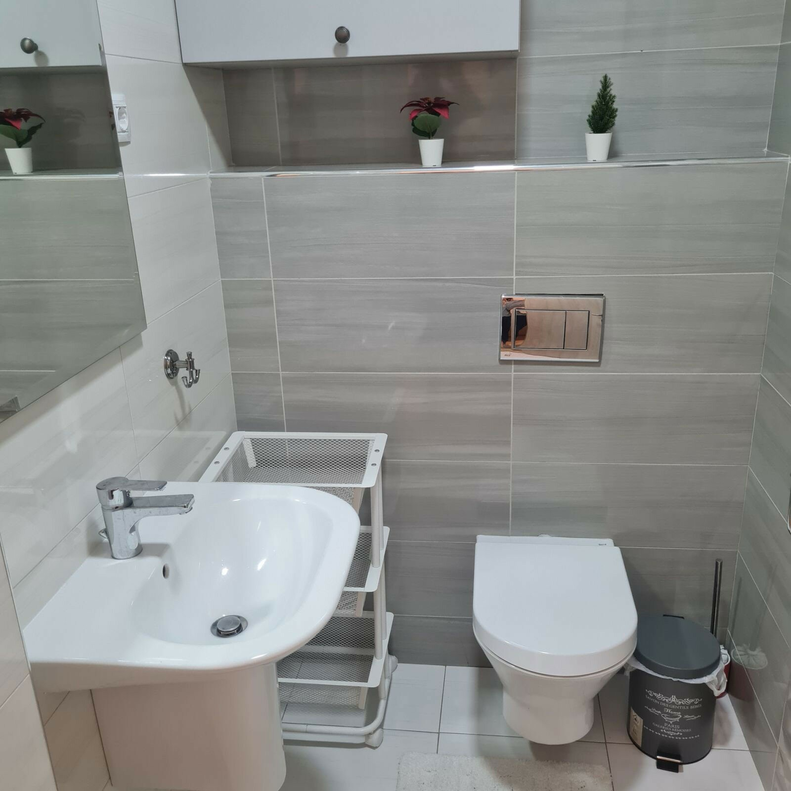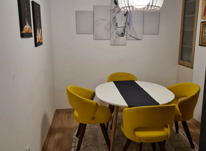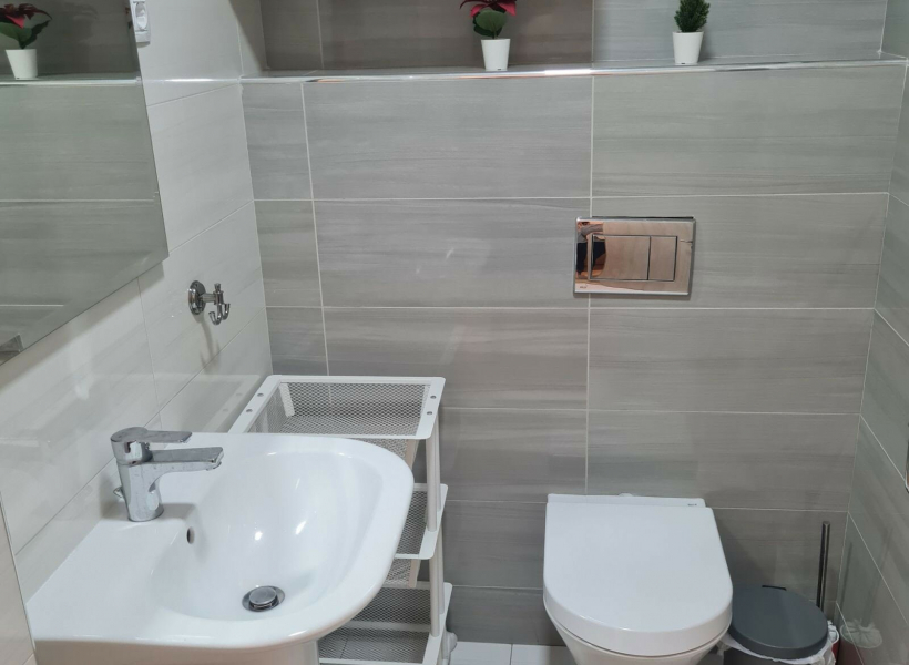 The apartment has a living room, kitchen and dining room, two bedrooms, bathroom and toilet.