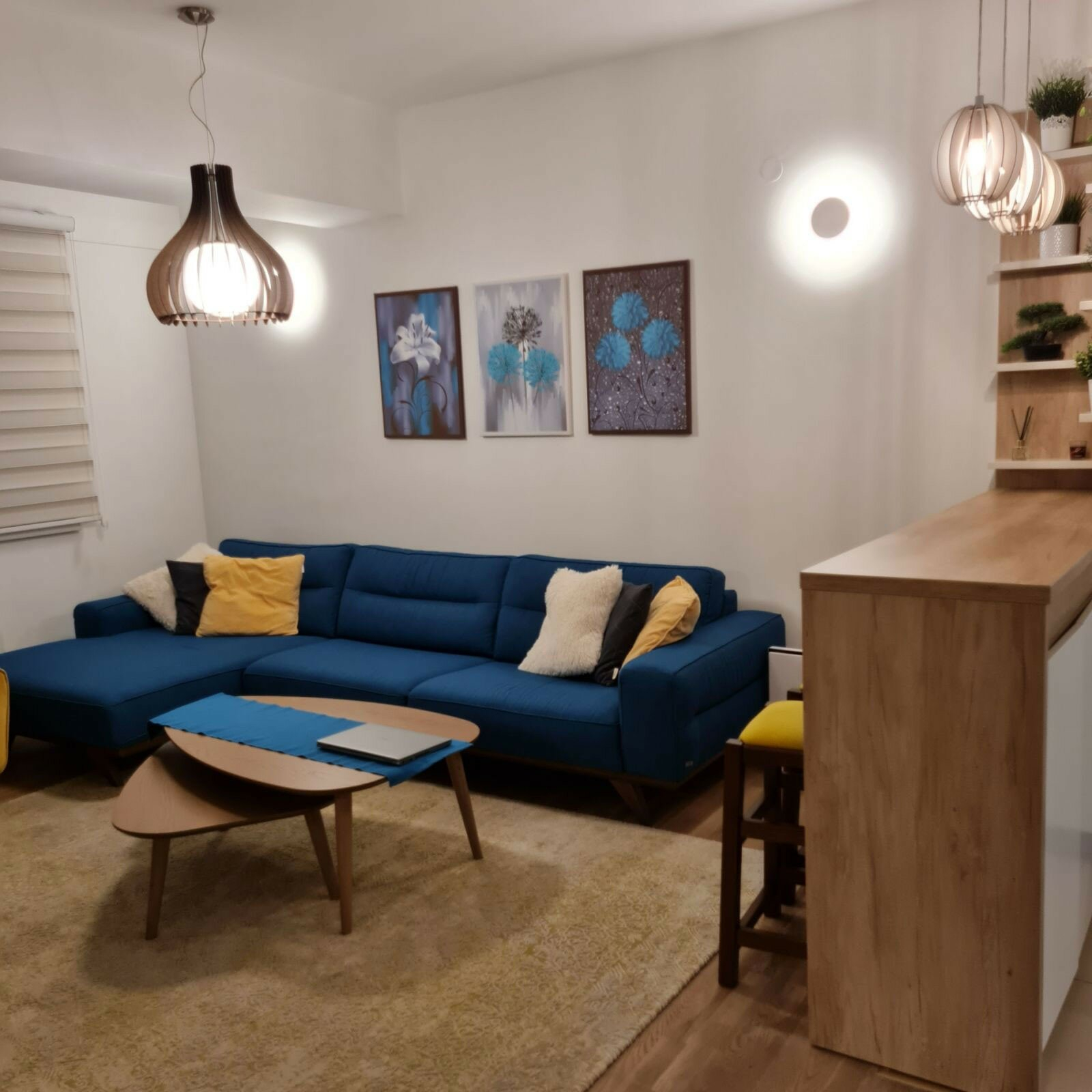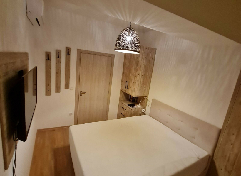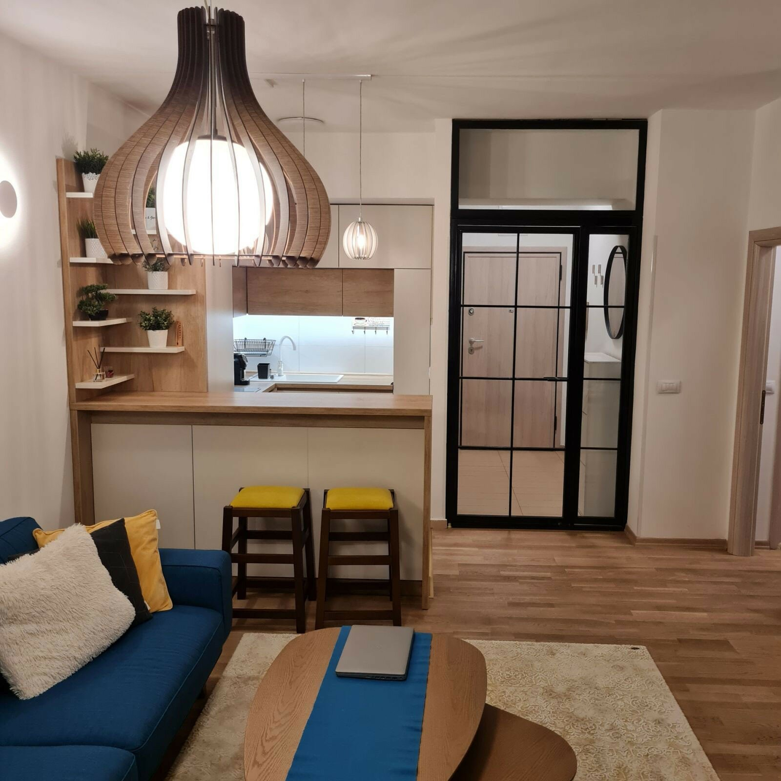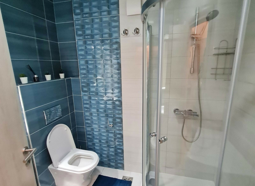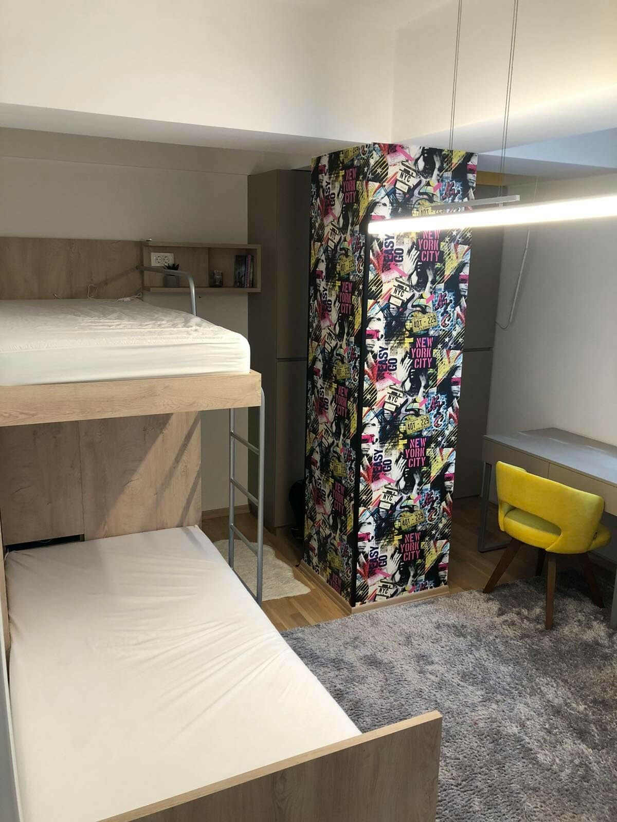 The apartment has a living room, kitchen and dining room, two bedrooms, bathroom and toilet.