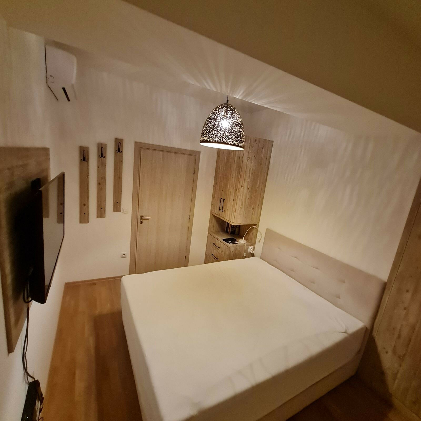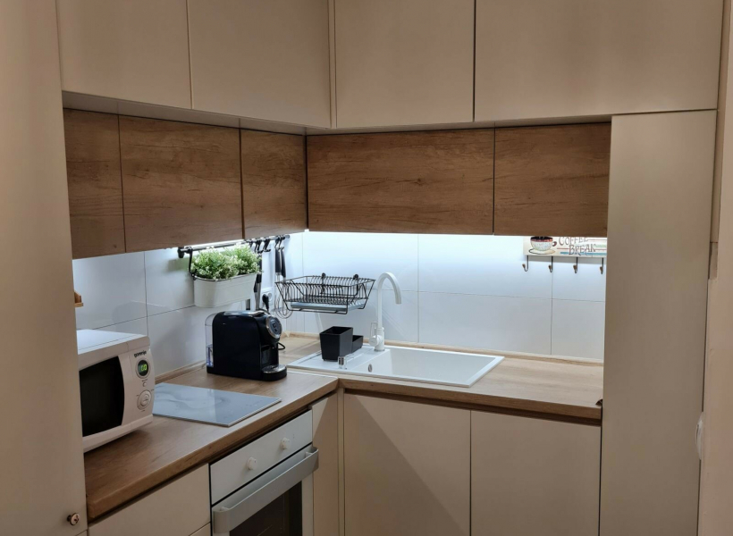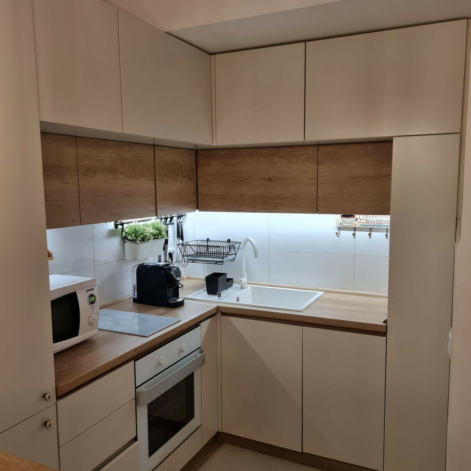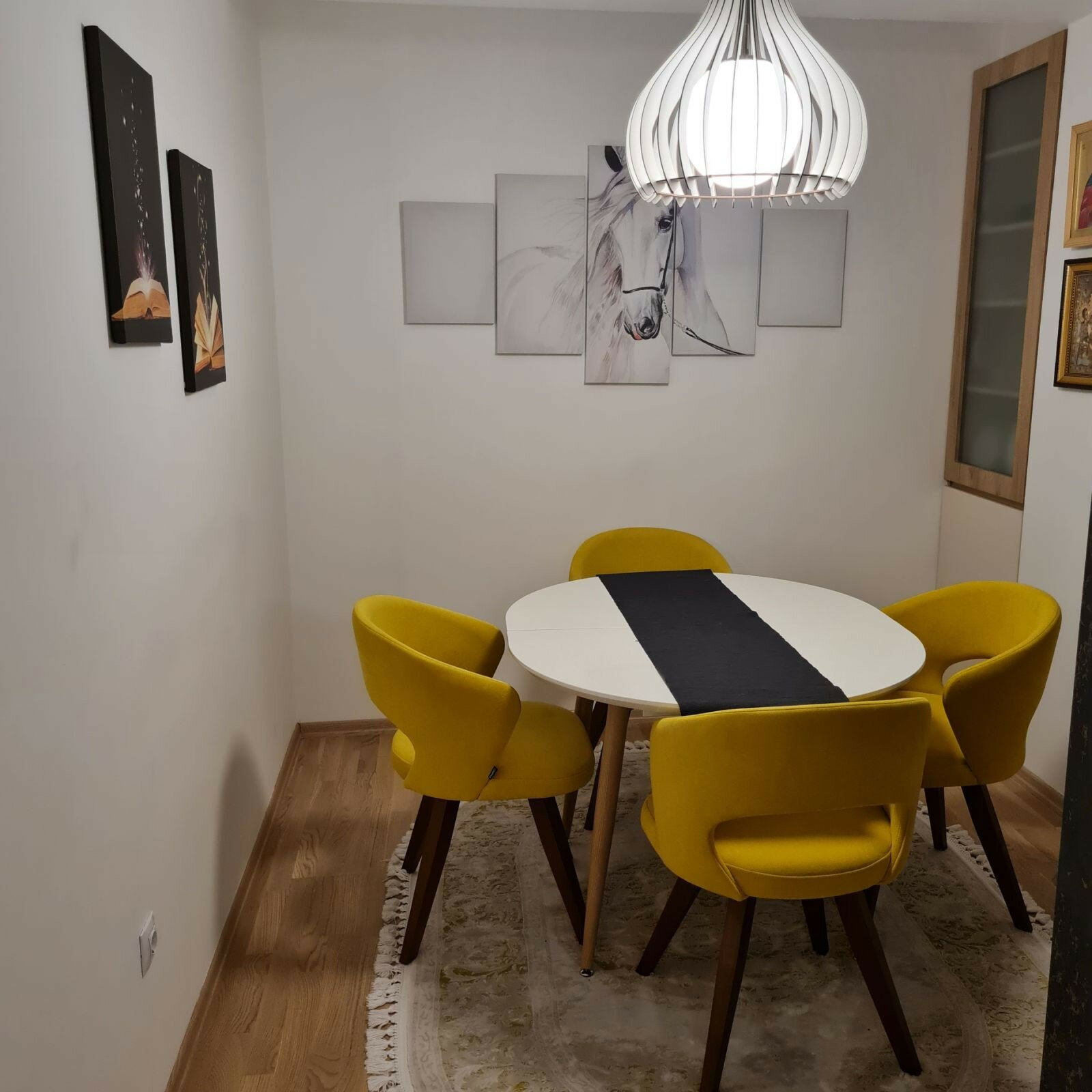The apartment has a living room, kitchen and dining room, two bedrooms, bathroom and toilet.
