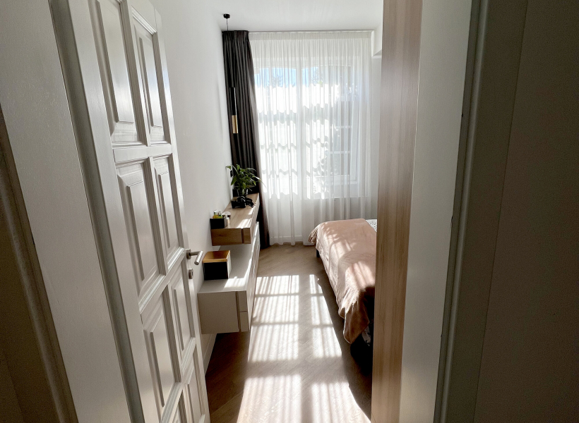 This bright and stylish apartment has 2 bedrooms, a spacious modernly decorated living room, a pantry/laundry room, a separate kitchen and a 10m2 terrace.
