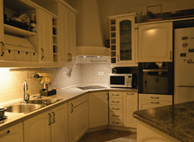 This spacious apartment has living room with fireplace, kitchen and dining room, three bedrooms and two terraces with lake view.