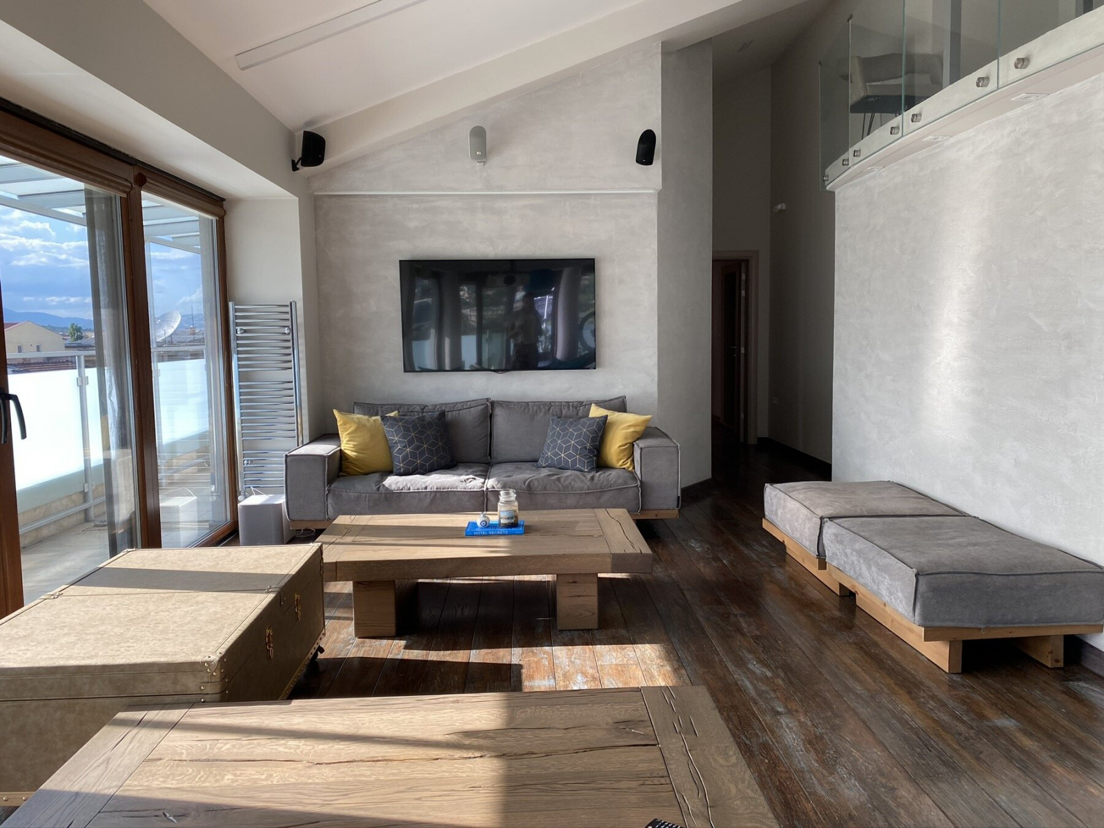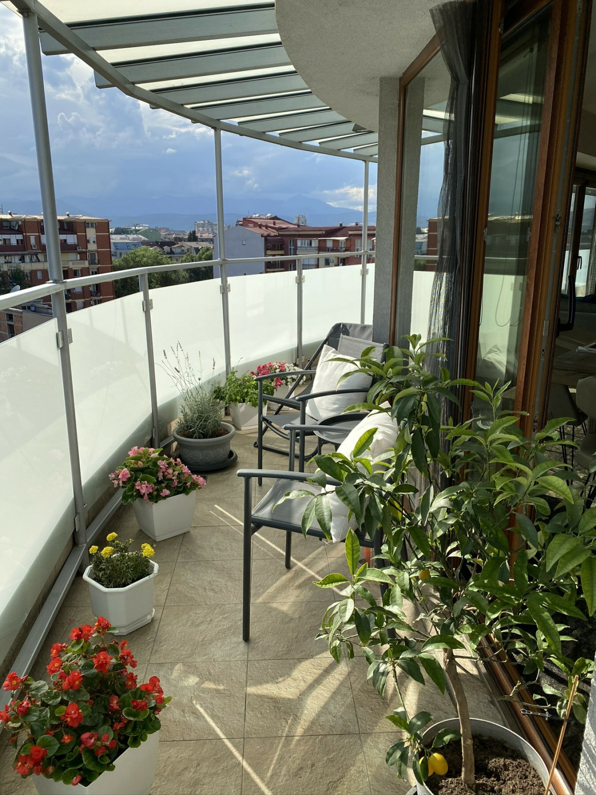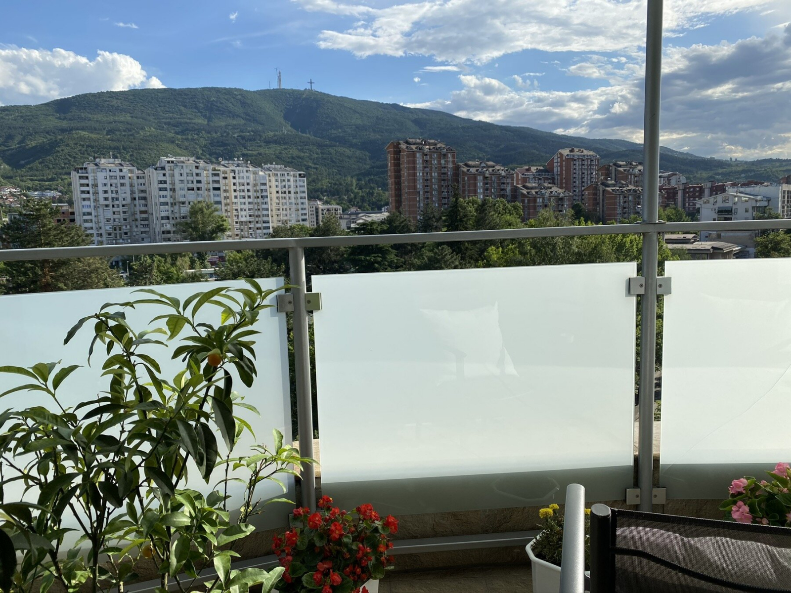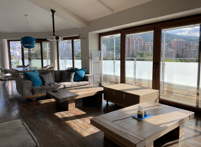 A spacious terrace is available, completely covered with a glass awning, with an open view towards Vodno.