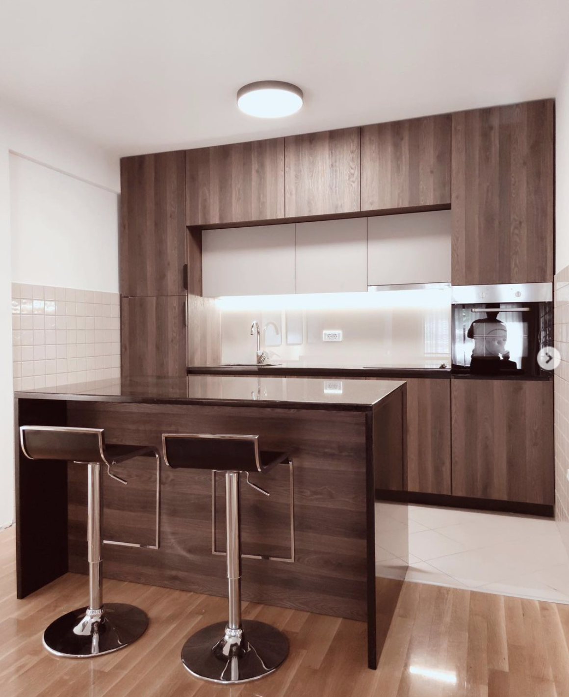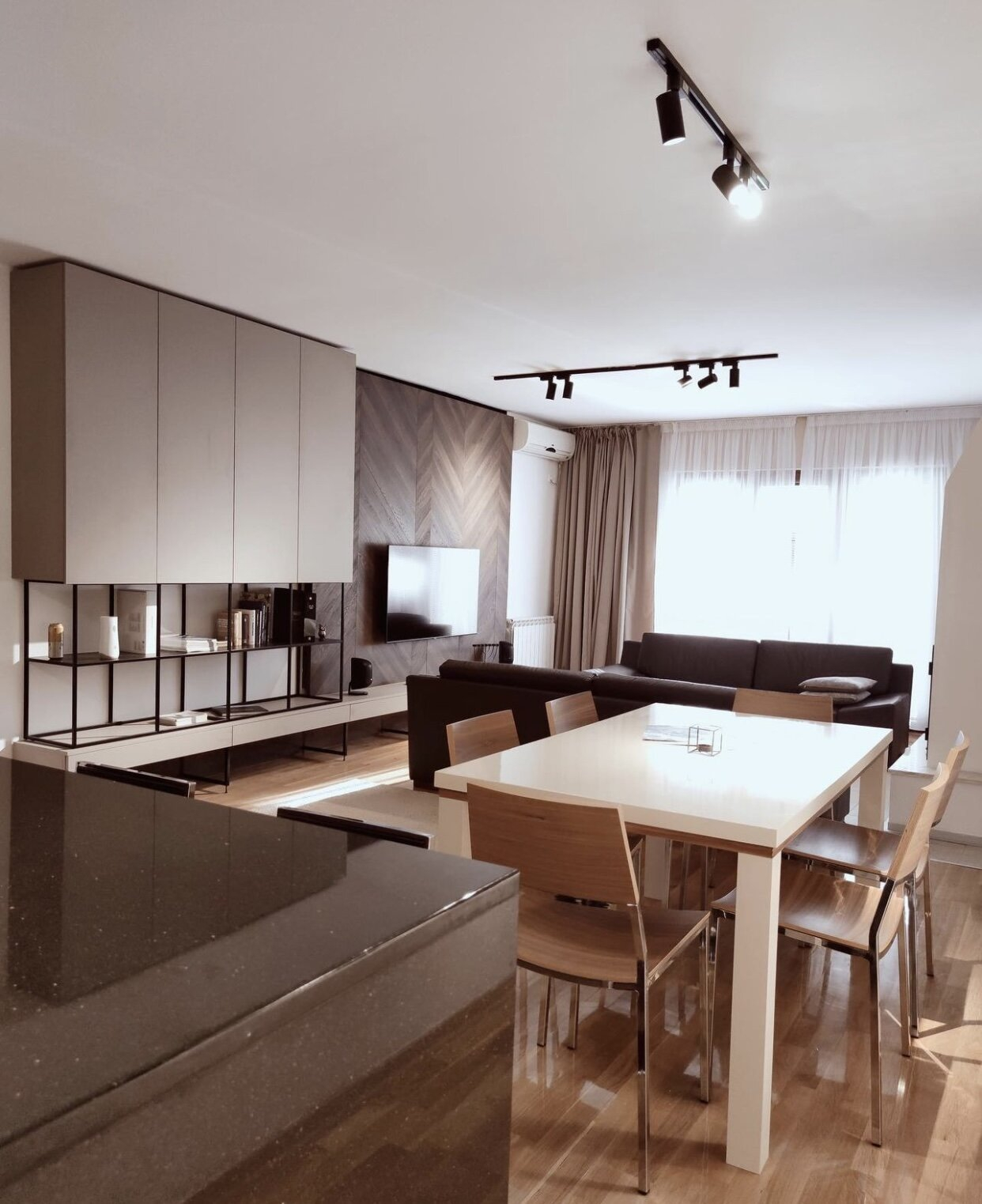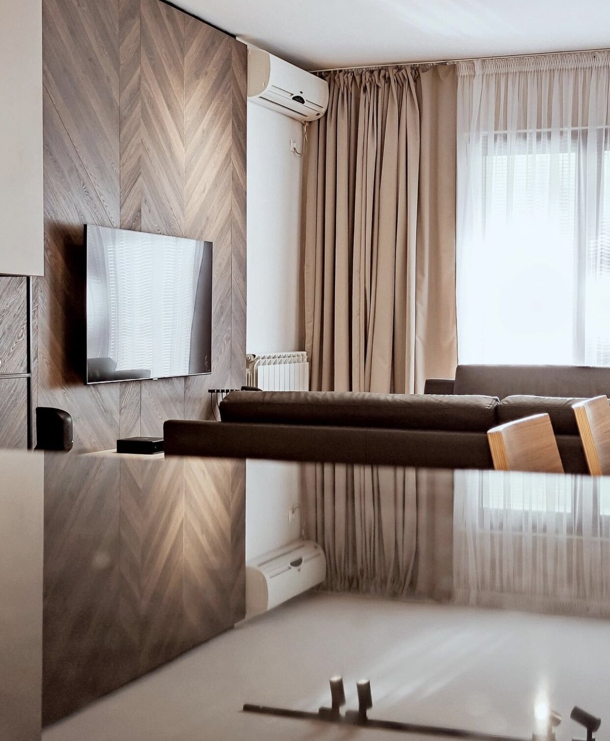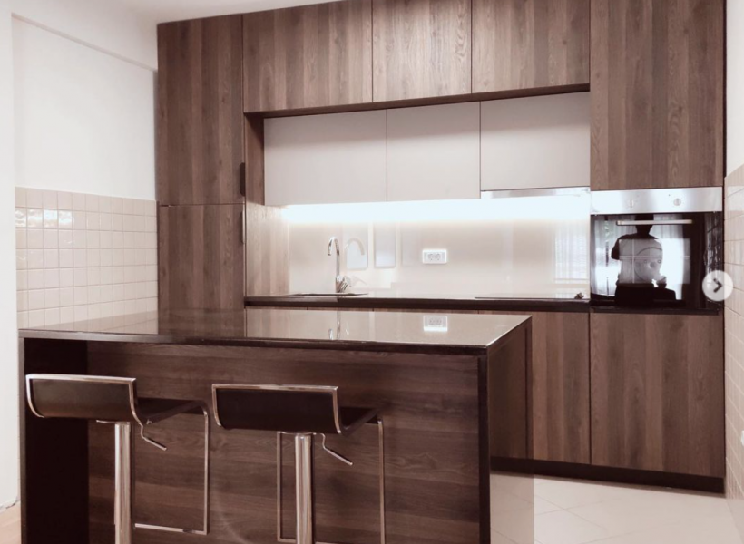 The apartment has three bedrooms, a spacious living room with a dining area, fully equipped kitchen, three bathrooms and a terrace with a beautiful view of Vodno.