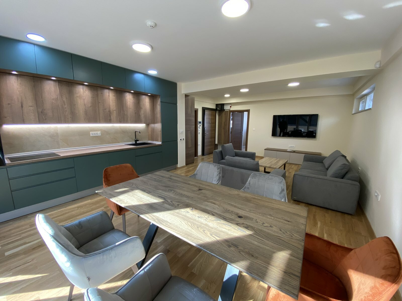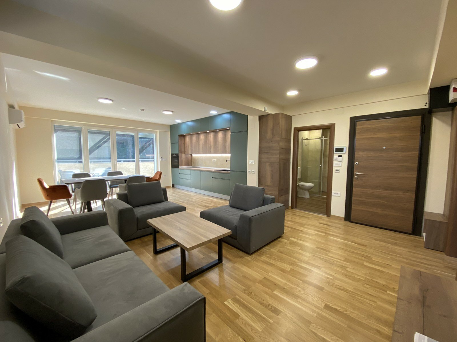 The cooling and heating of the apartment is regulated by underfloor heating and inverter air conditioners.