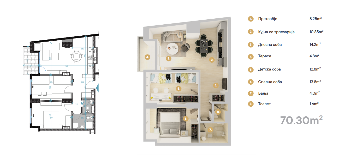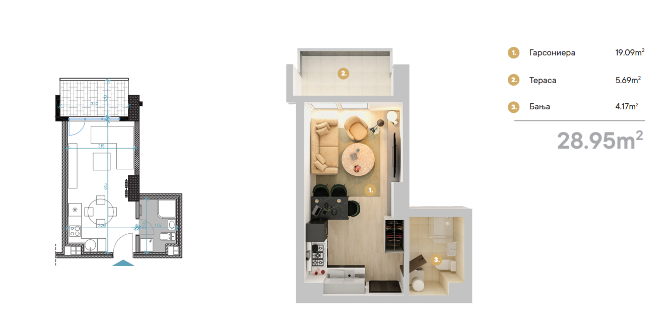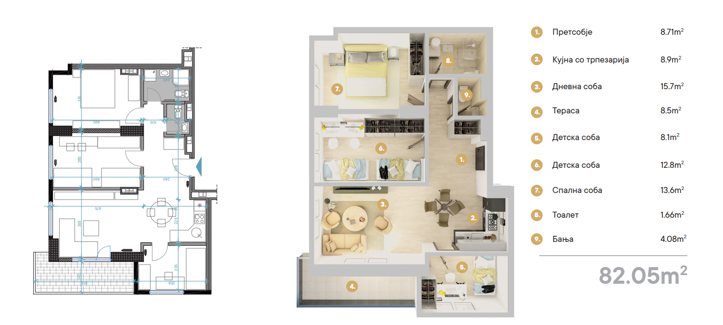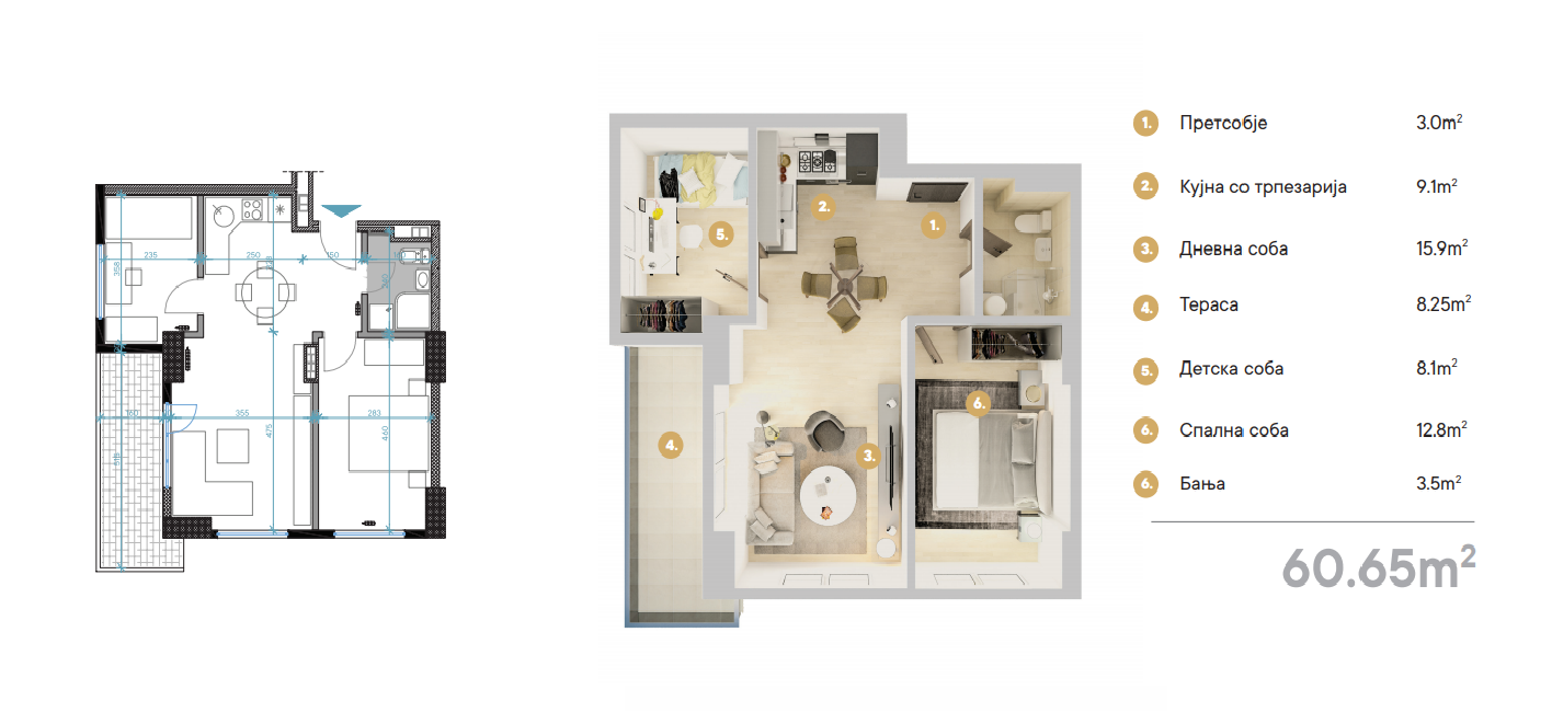 61m2, 70m2, 82m2 for a price of 950 euros per m2;
