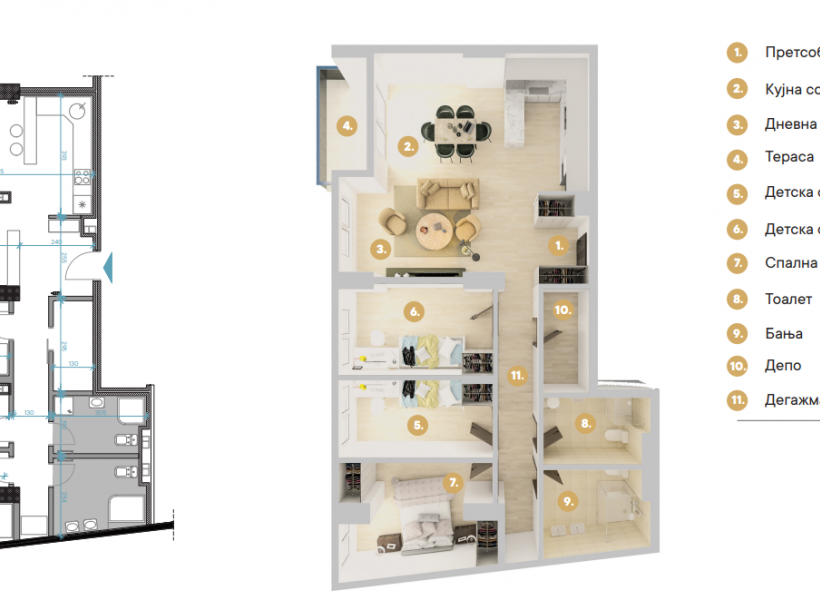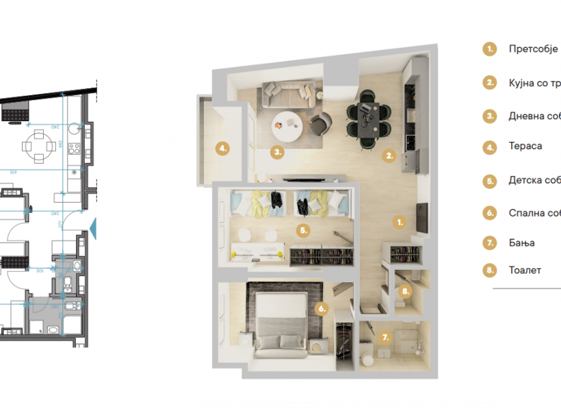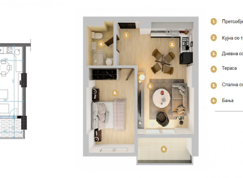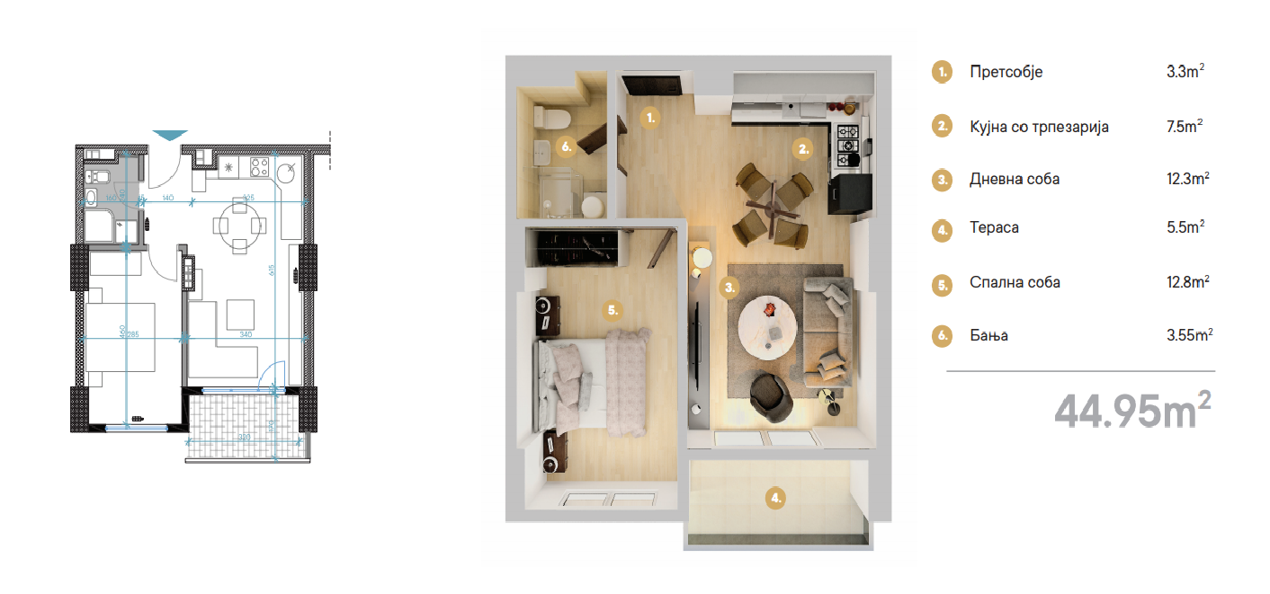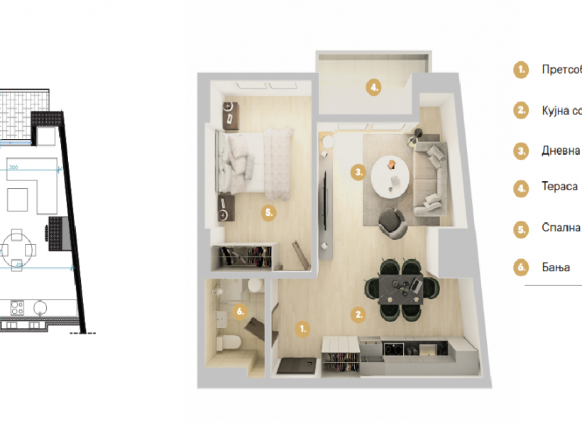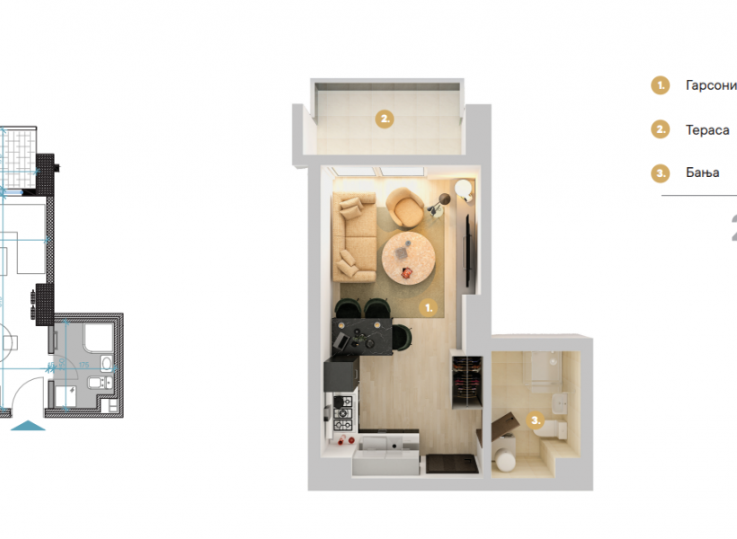 By purchasing an apartment in this building, there is an opportunity to purchase a parking space for a price of 2500 euros in front of the building and,