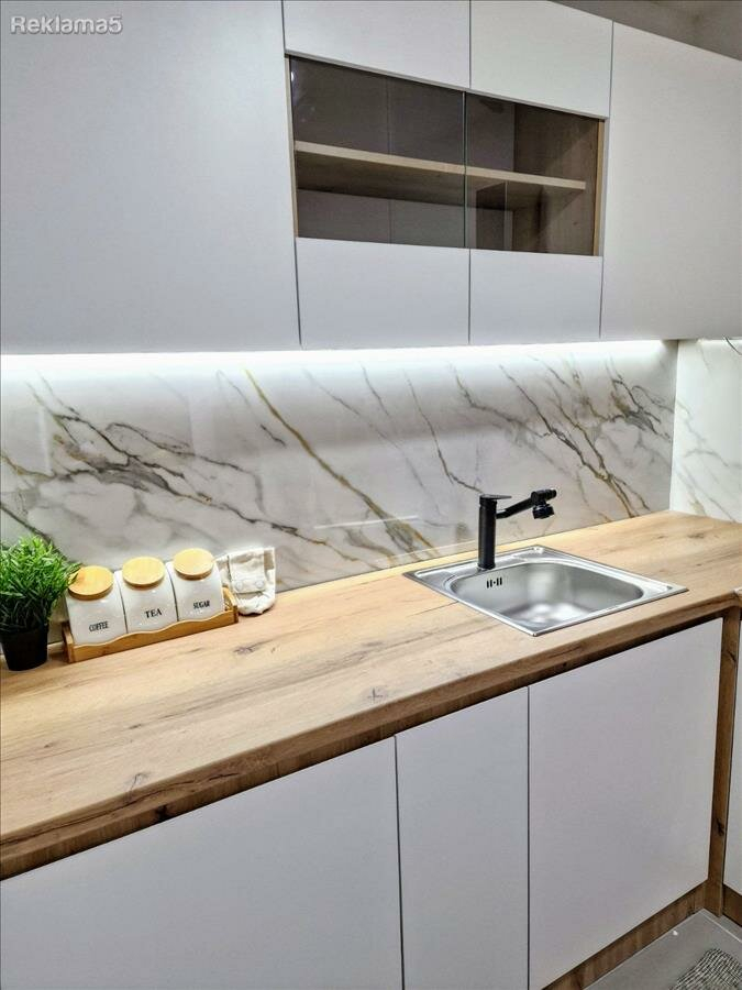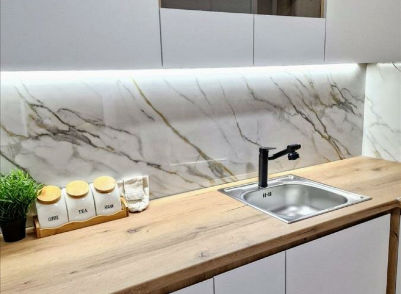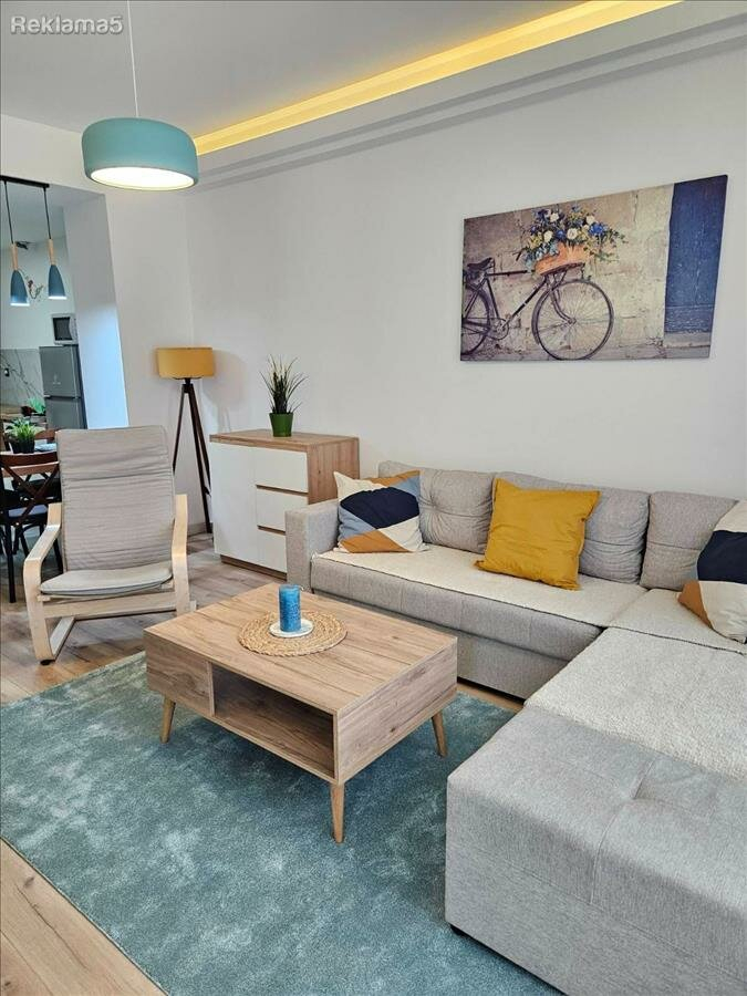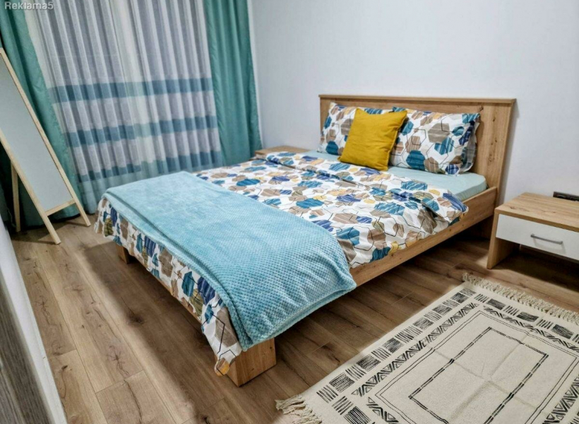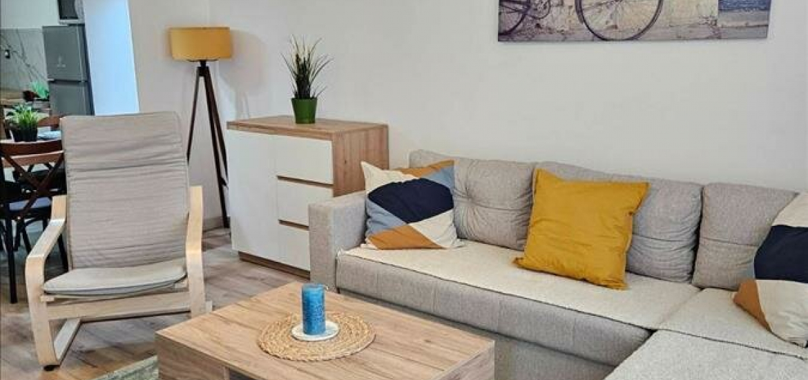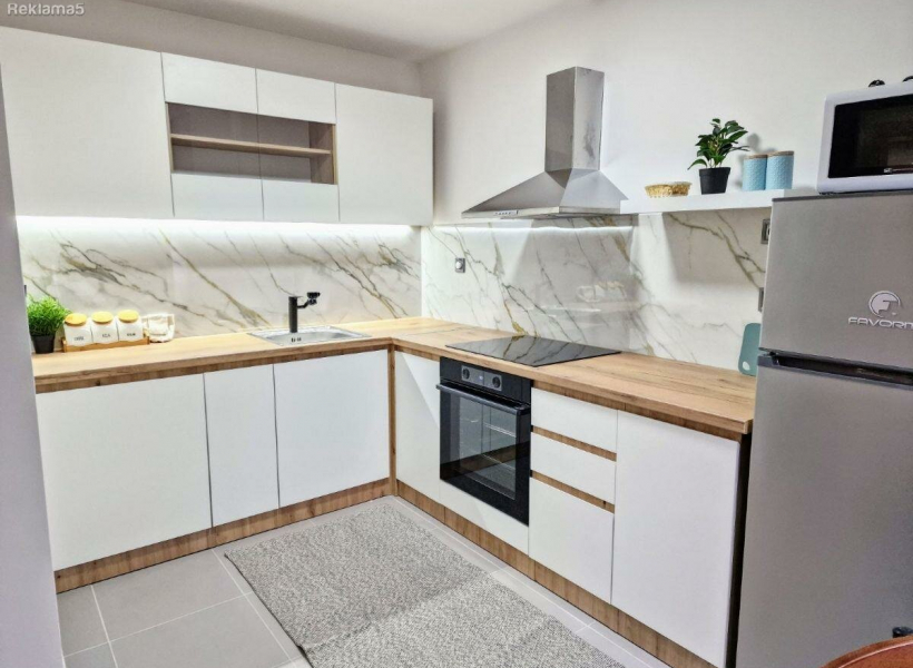 The apartment is fully equipped with new furniture and all necessary electrical appliances (washing machine, oven, stove, refrigerator, microwave).