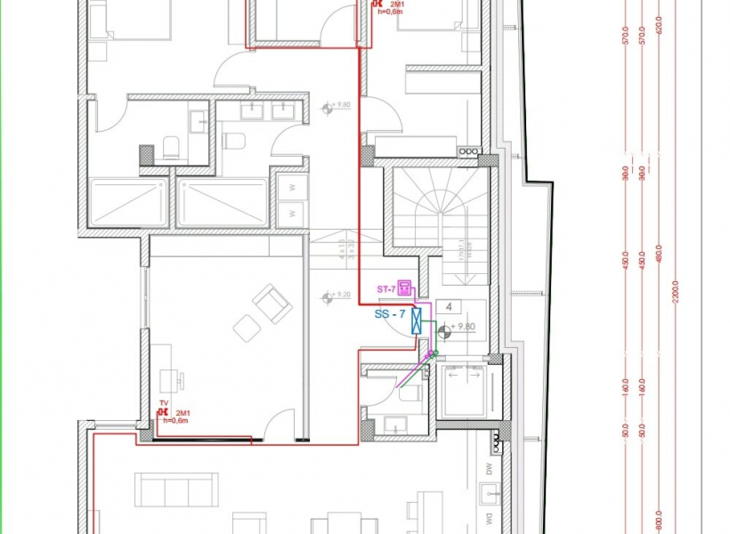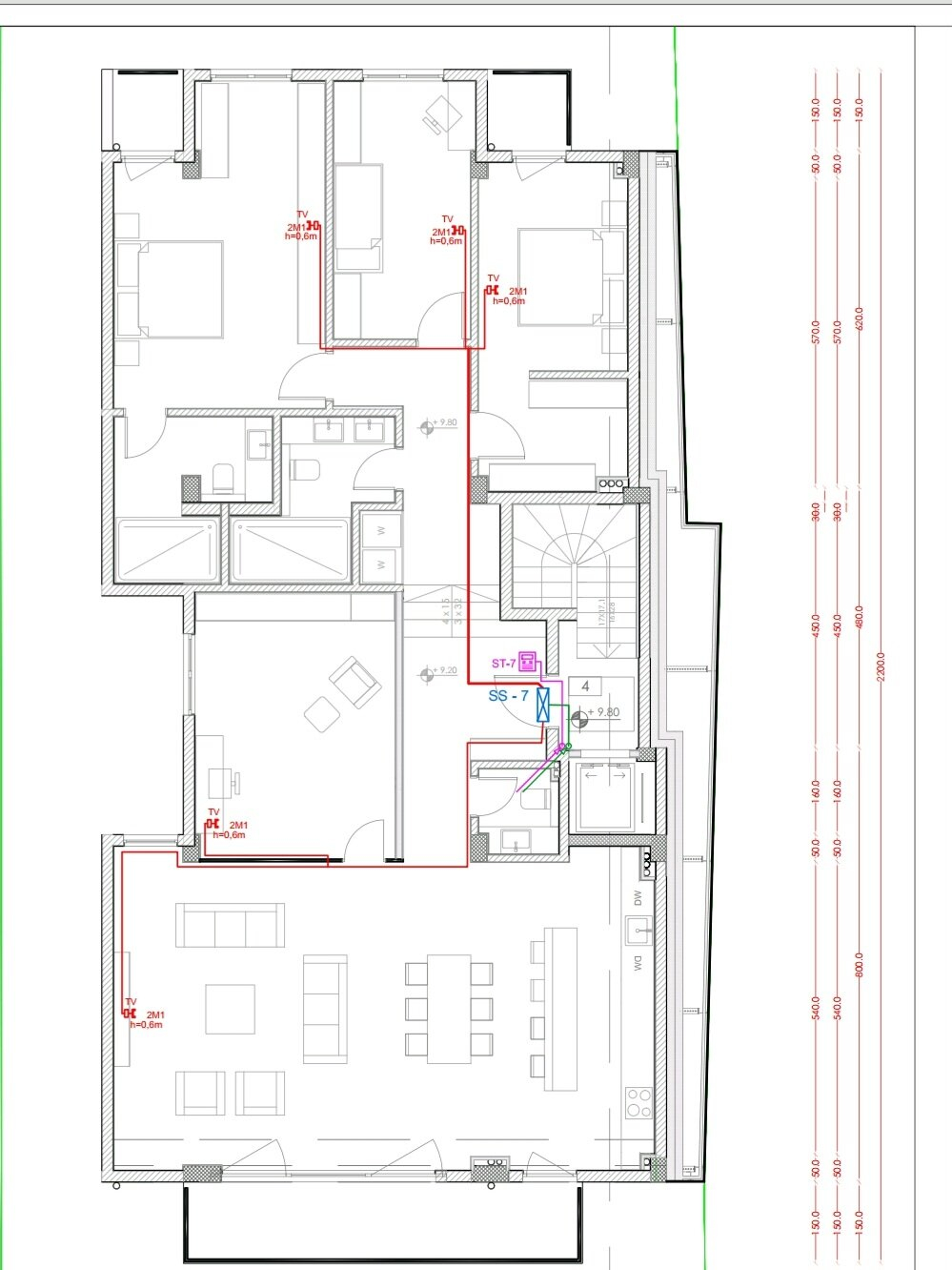 The apartment has 4 bedrooms with an area of ​​172m2 plus a rooftop terrace of 150m2 at a price of 450€/m2 and is located on the 3rd floor.