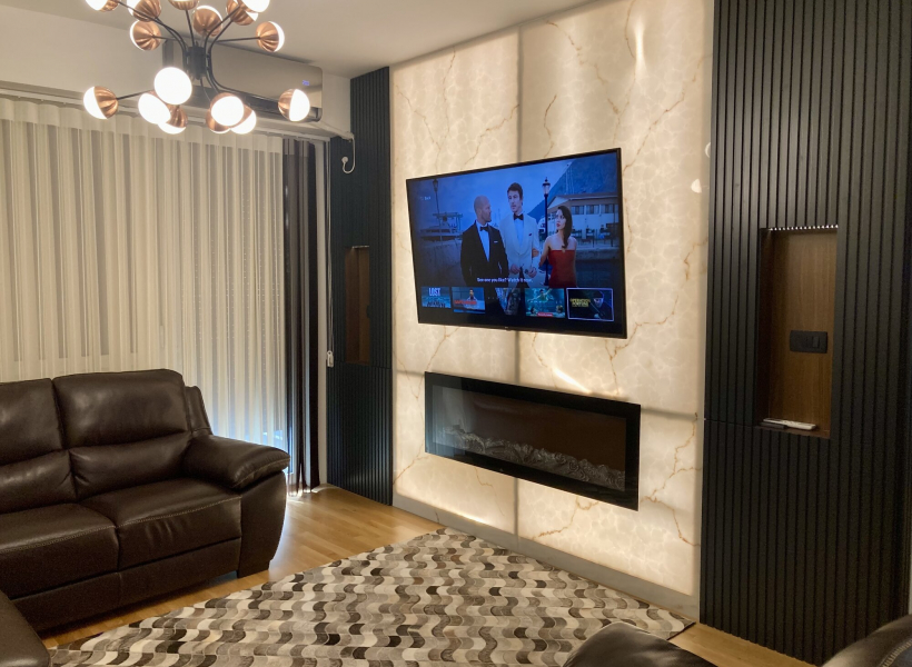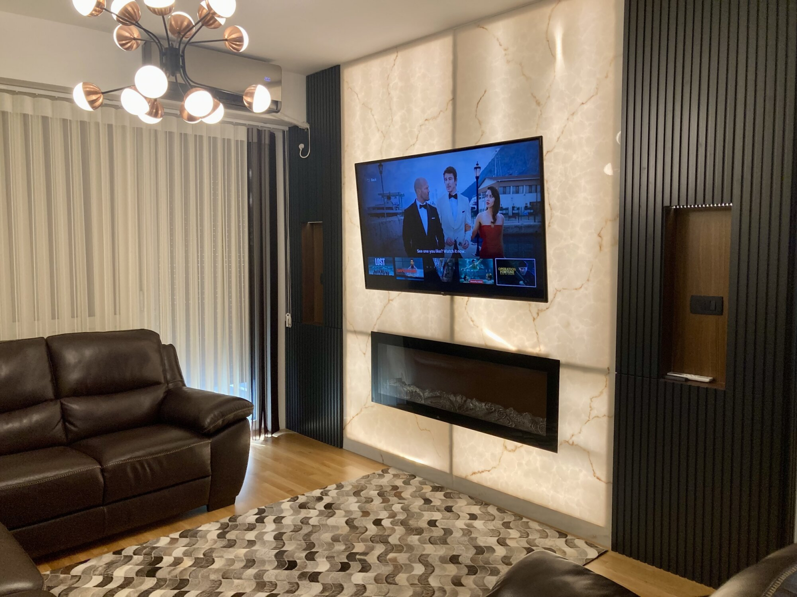 Modern and luxuriously furnished with a 70" TV in the living room and two 50" TVs in the bedrooms plus two air conditioners, washer and dryer, large refrigerator and all other electronic and kitchen appliances. There is super fast internet in all rooms