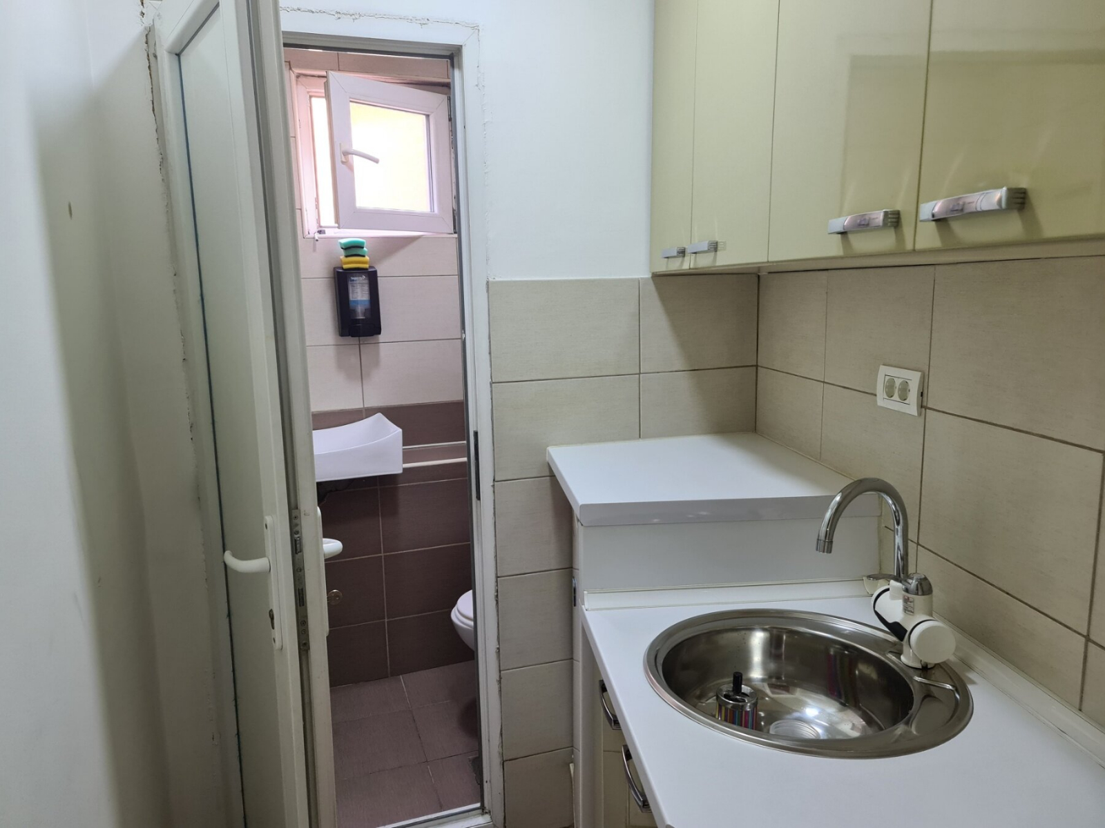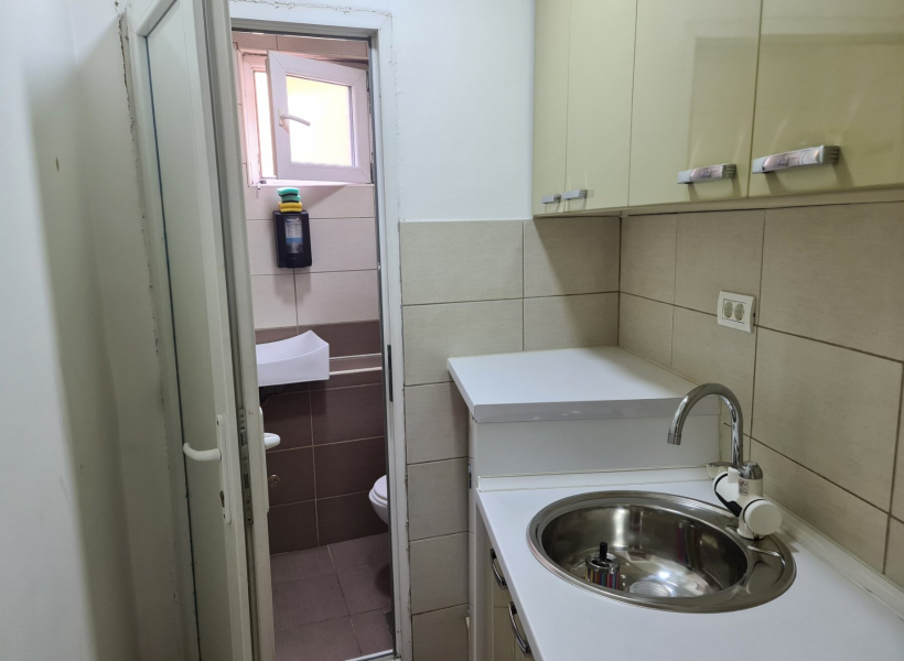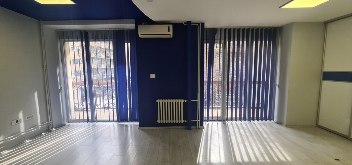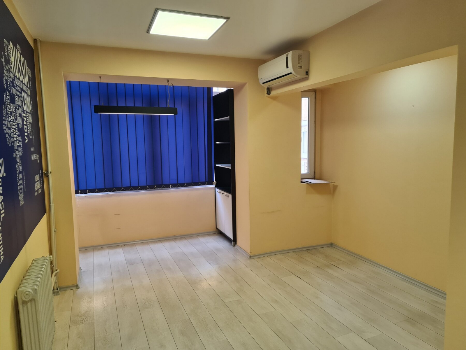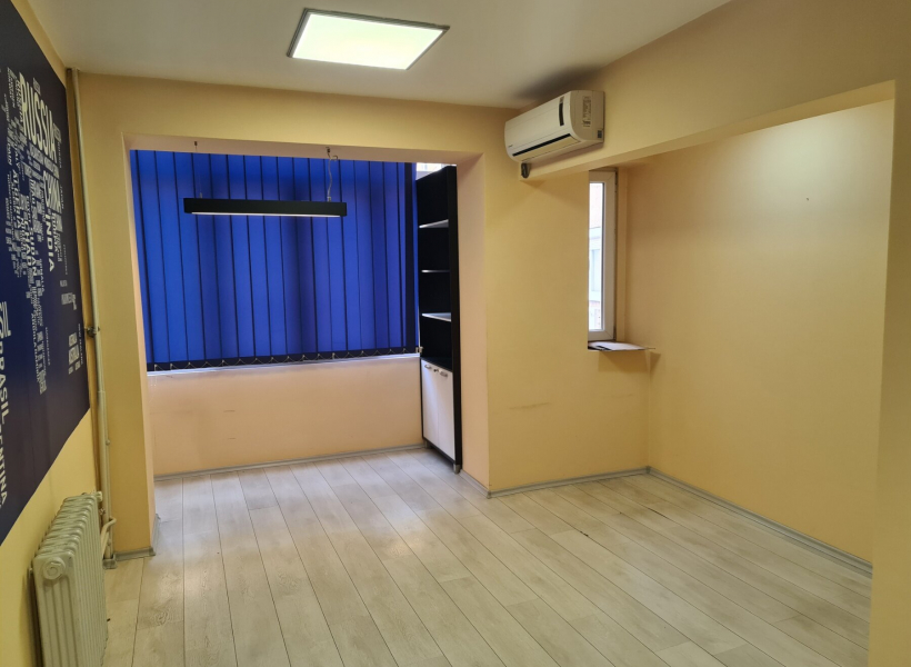 The apartment is rented unfurnished, it is located on the first floor and has an open space room with an access to a balcony, a manager's office, kitchen and toilet.