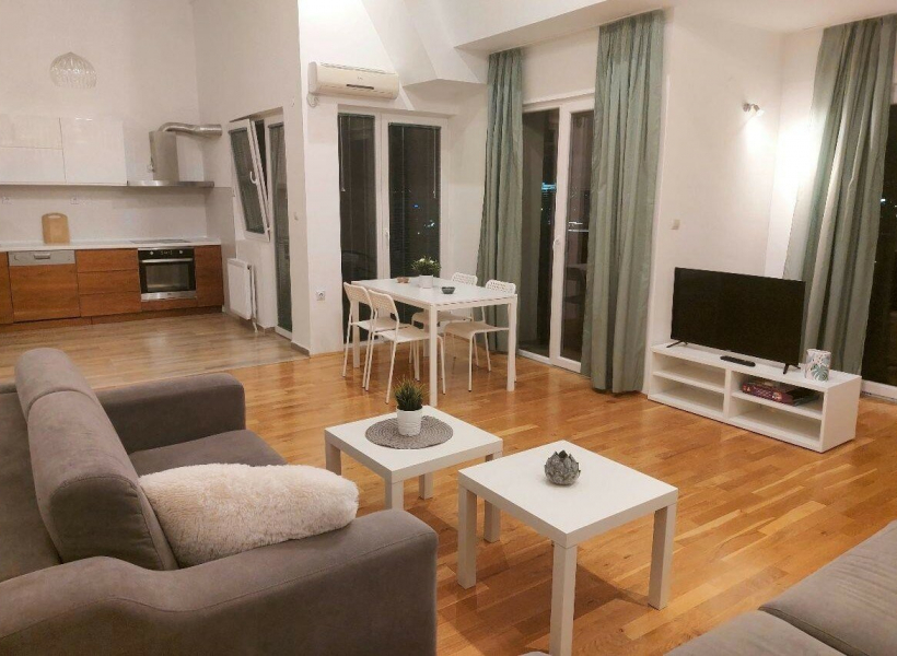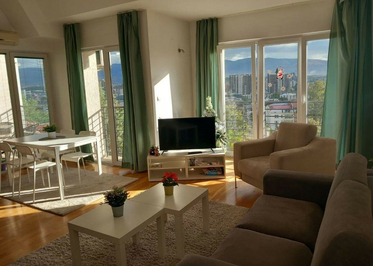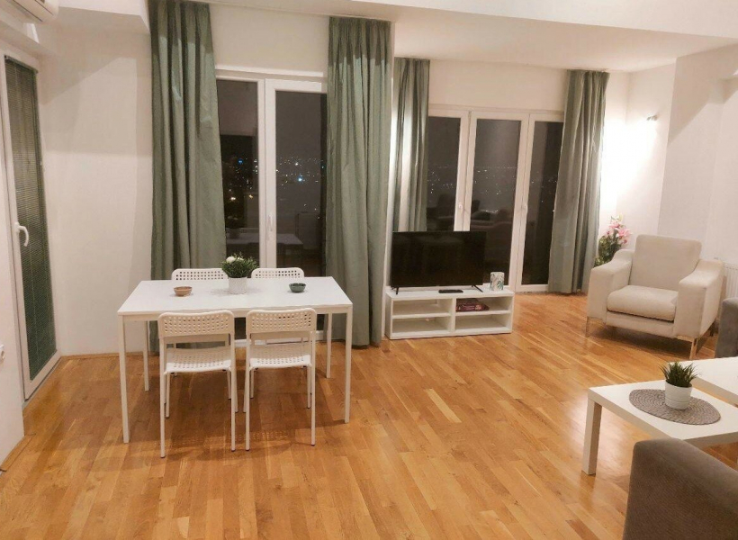 Cozy and bright apartment is avalible for rent on Vodno with a size of 81m2 and a beautiful view of the city.
