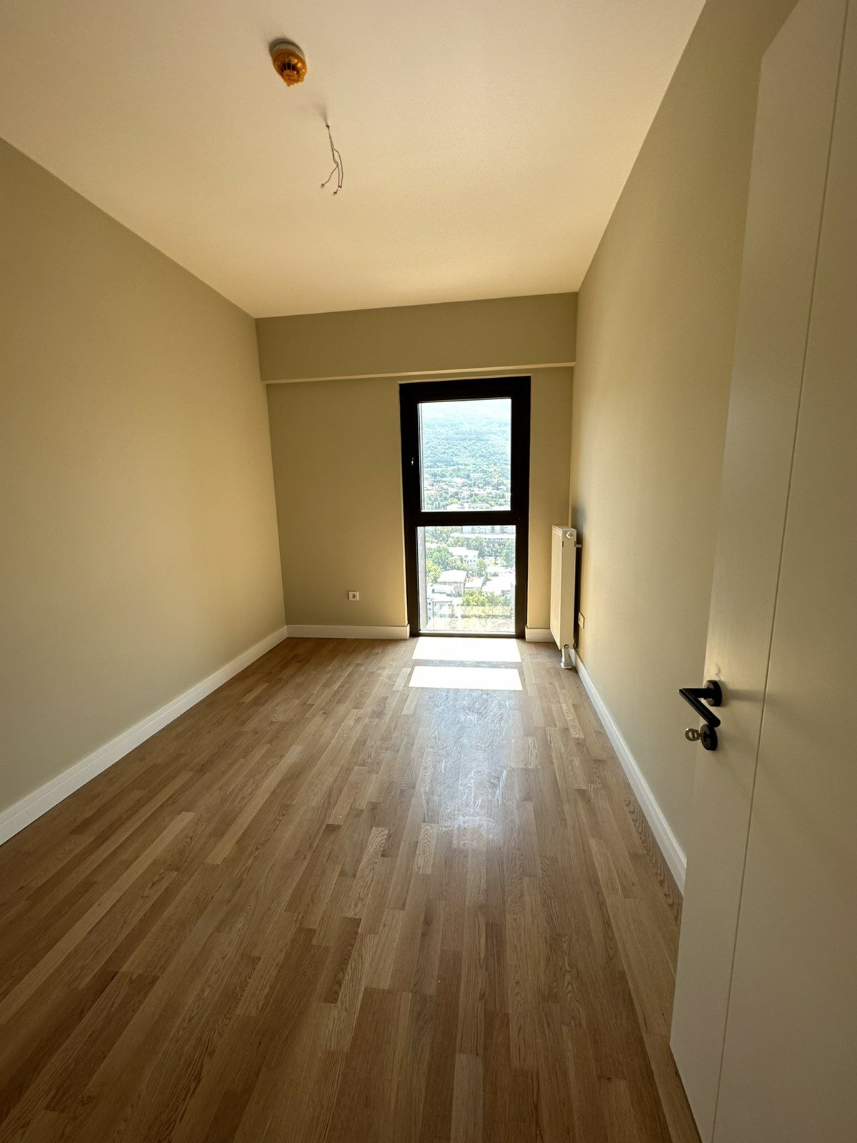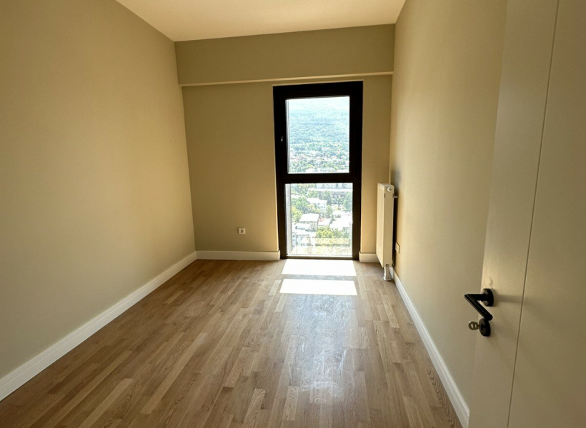 The apartment is located on the 17th floor and has three bedrooms, spacious living room, kitchen, two toilets and a terrace with a beautiful view of the city.