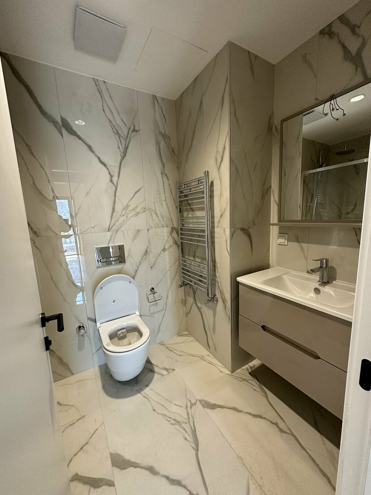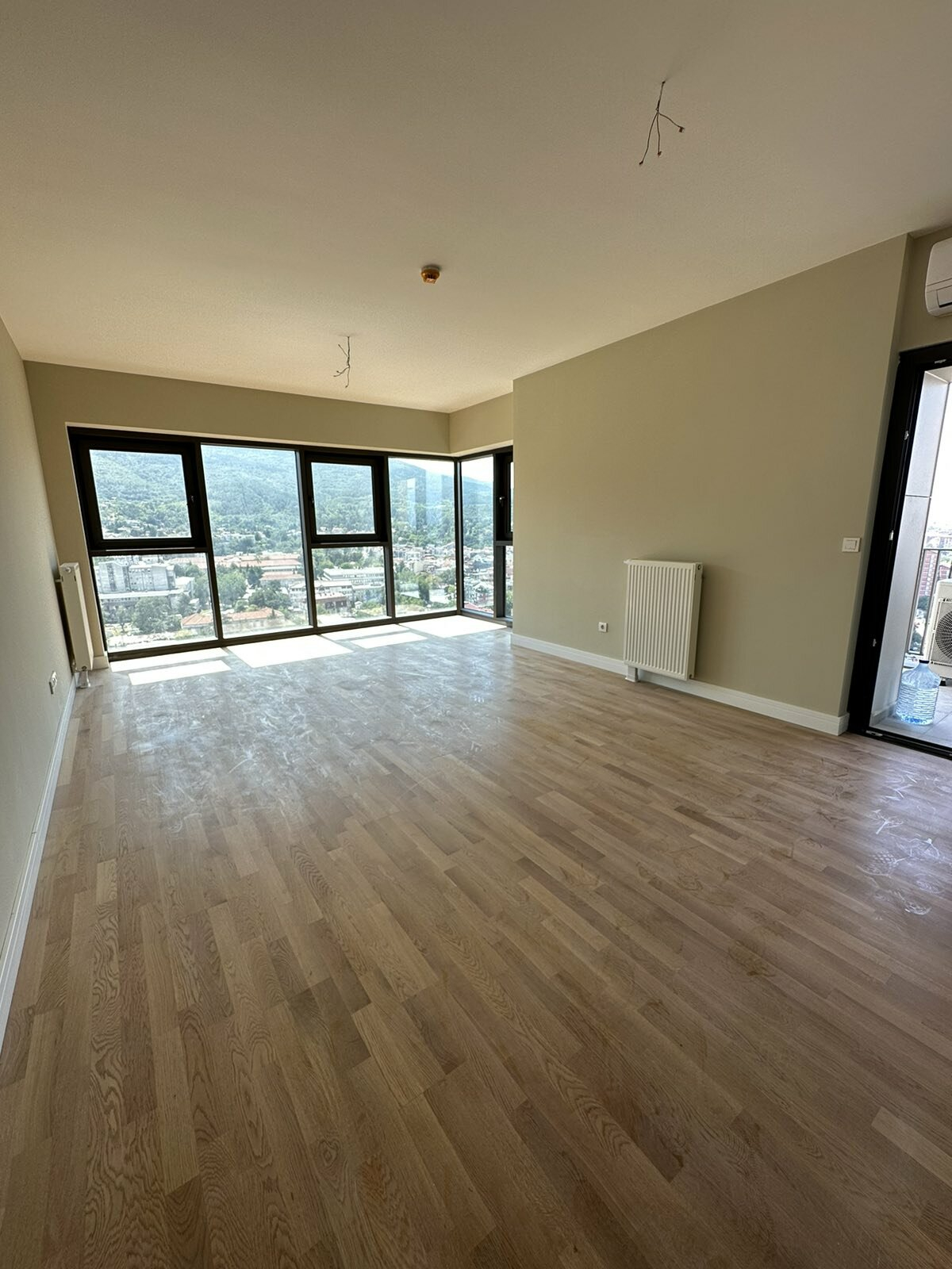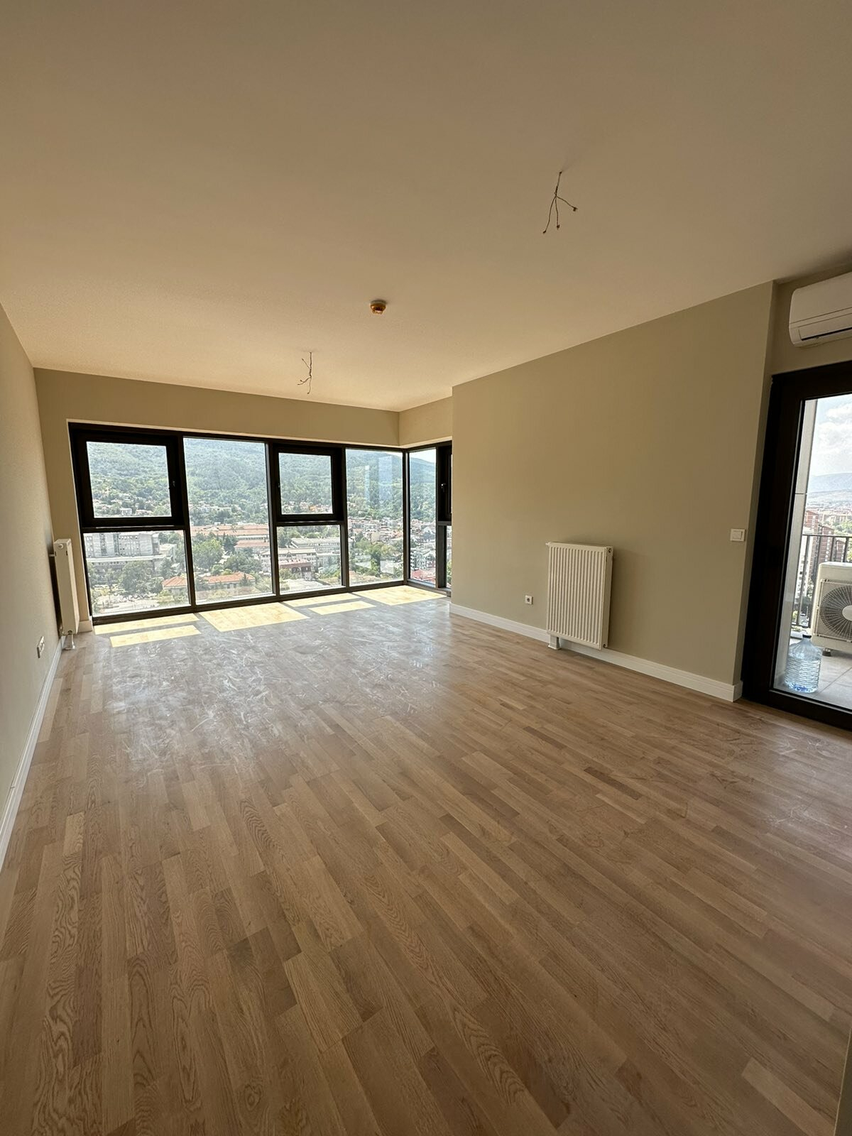 Heating and cooling in the apartment is regulated through central heating and inverter air conditioners.