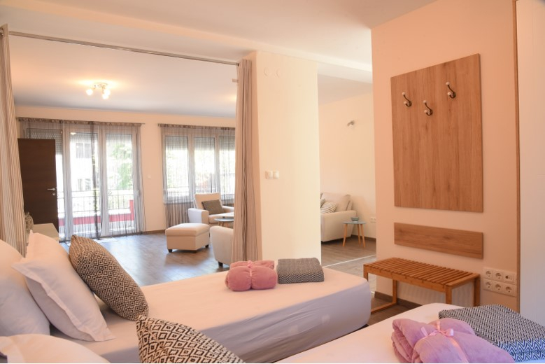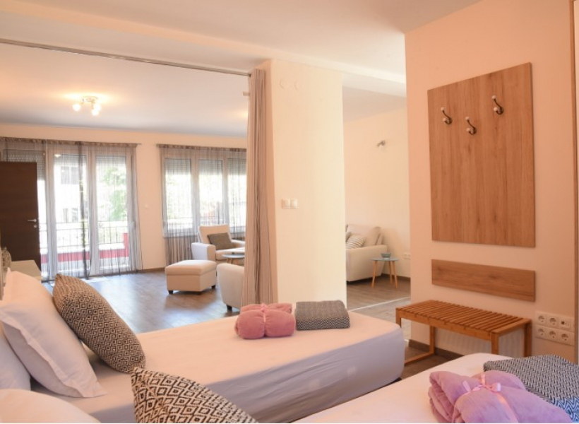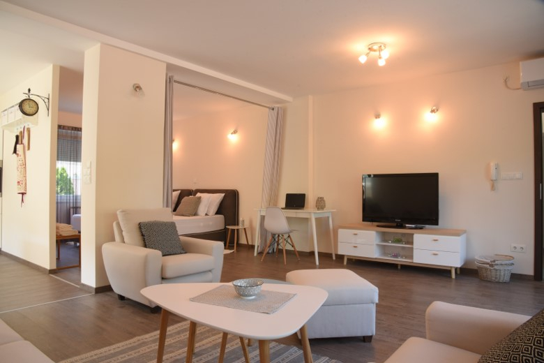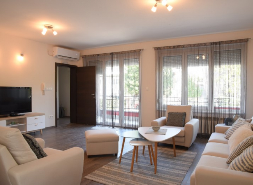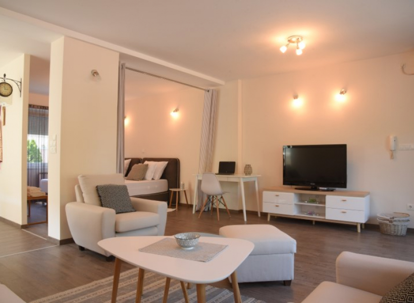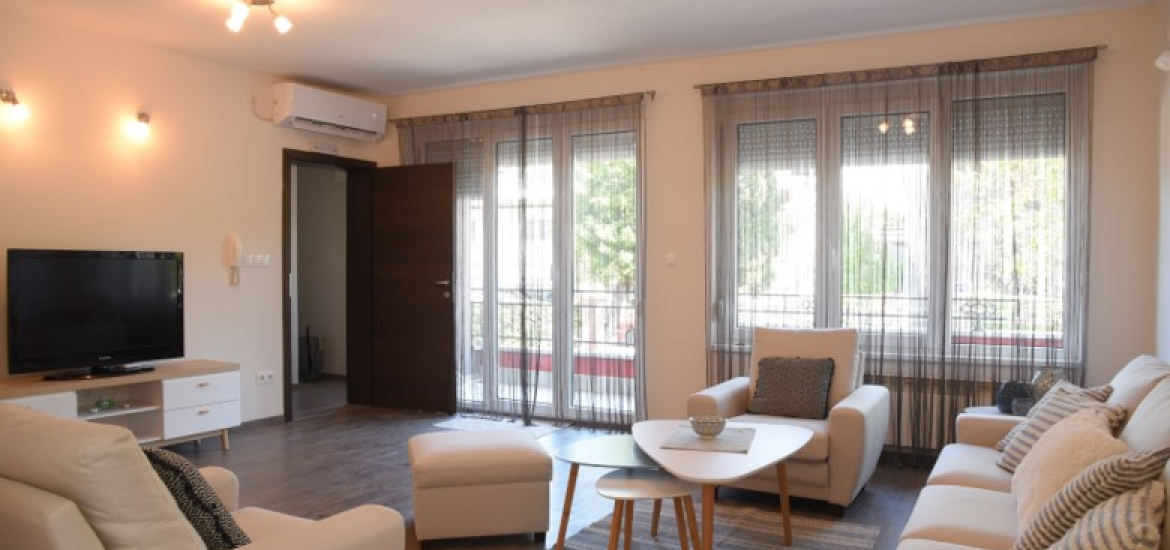Completely new, beautiful and bright apartment, designed in pastel colours, located on a quiet and green location close to the center of Skopje.