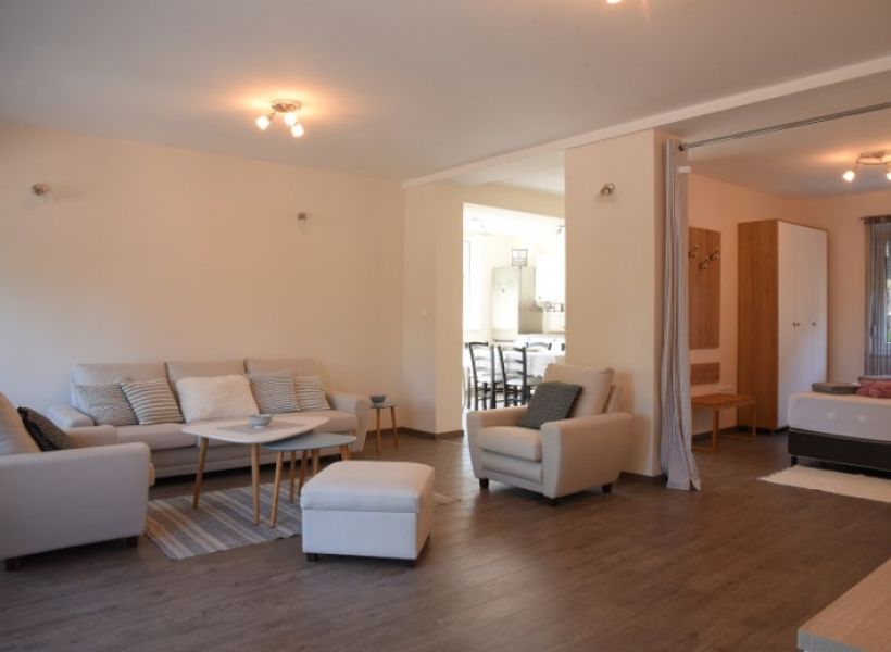 This cozy apartment has a comfortable living room, three bedrooms and two toilets in a small private building.