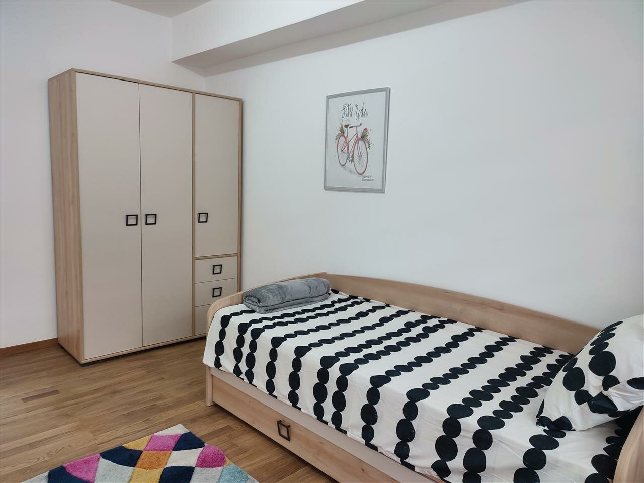 The apartment has a private parking space in garage.