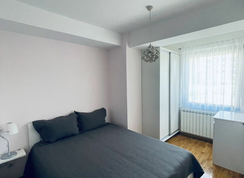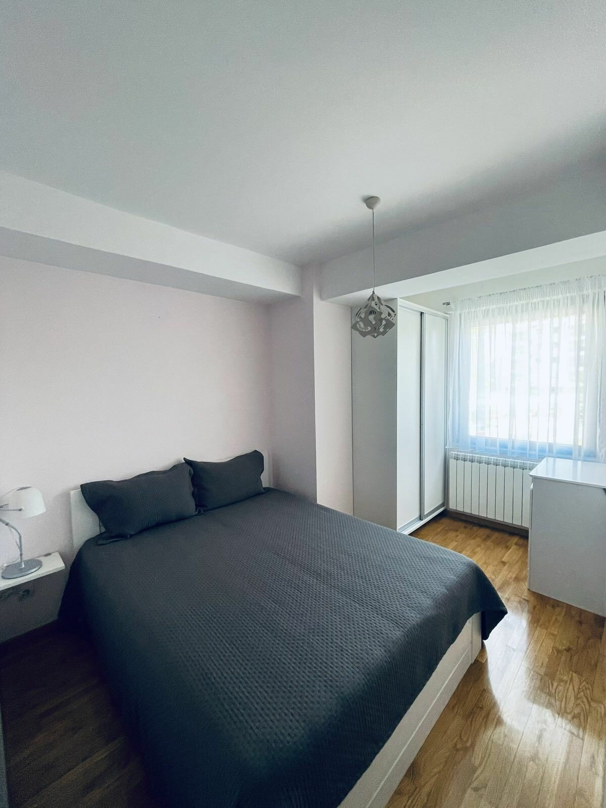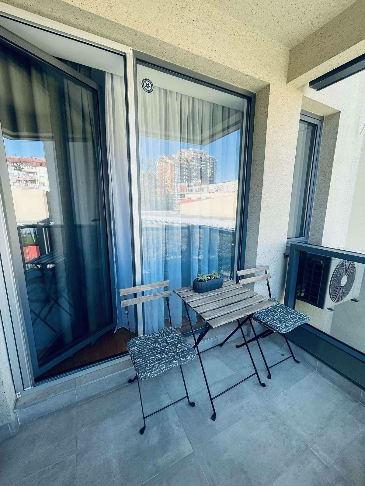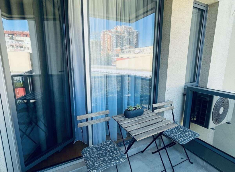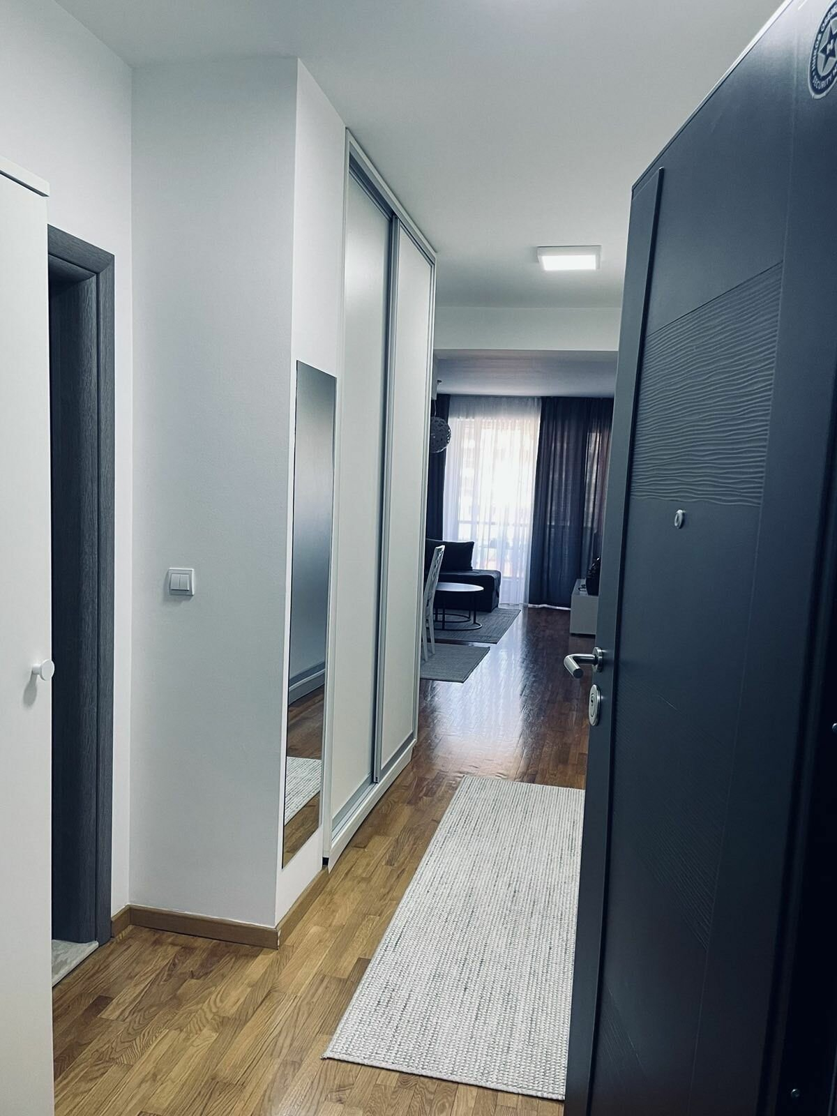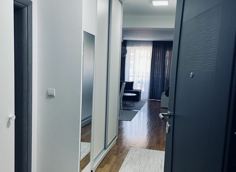 The apartment is located on the first floor and has one living room, a kitchen and a dining room, two bedrooms, a bathroom, a guest toilet and a terrace.