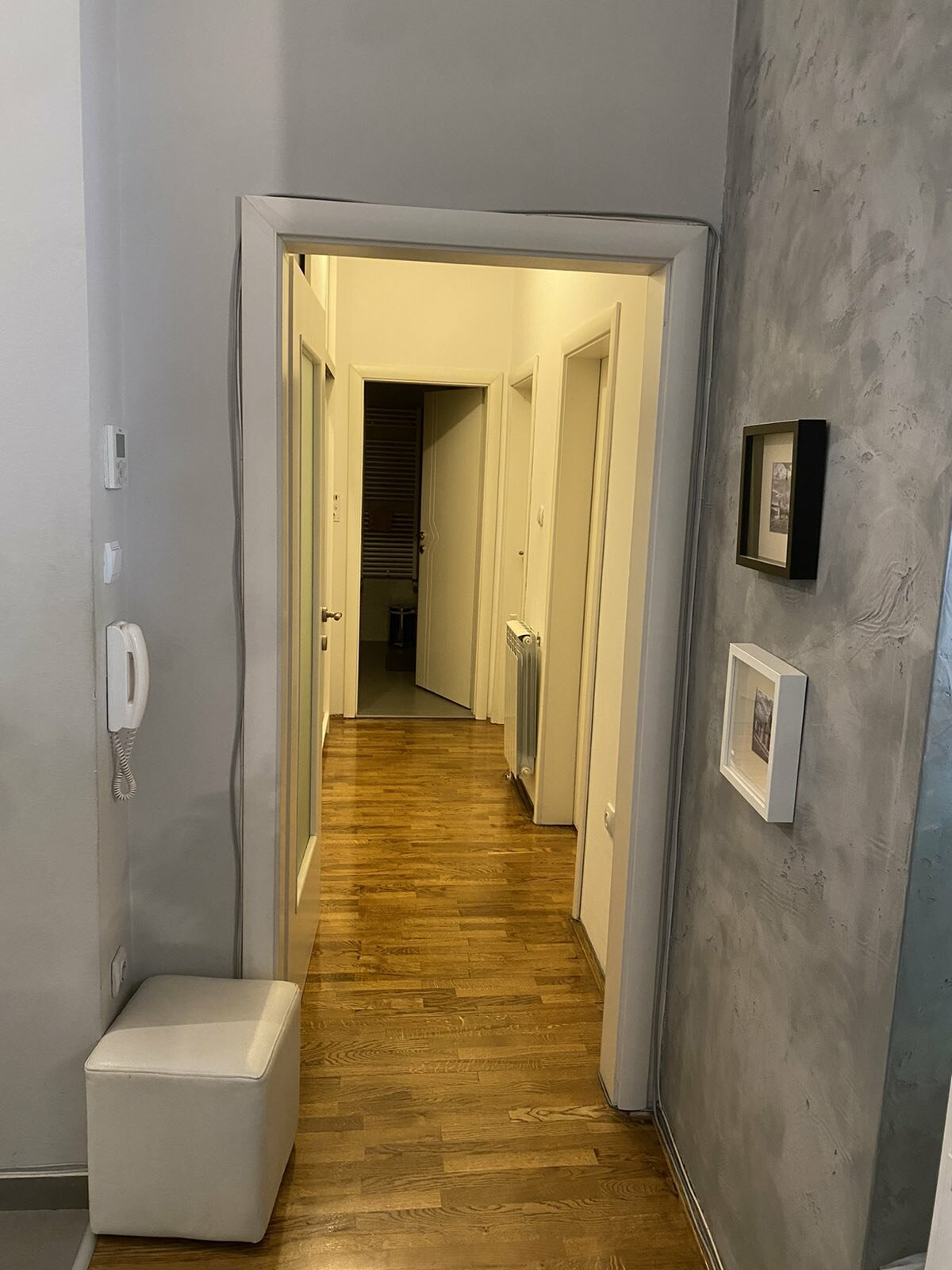 The heating and cooling in the apartment is regulated through a heat pump and inverter air conditioners.