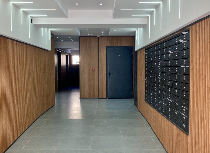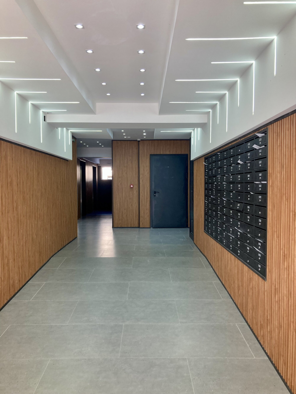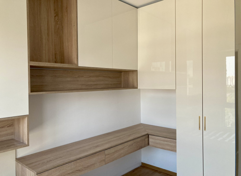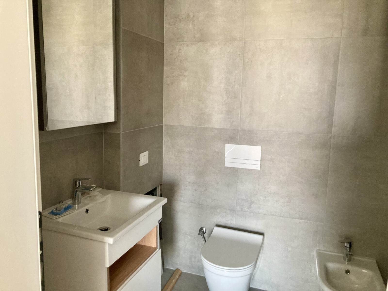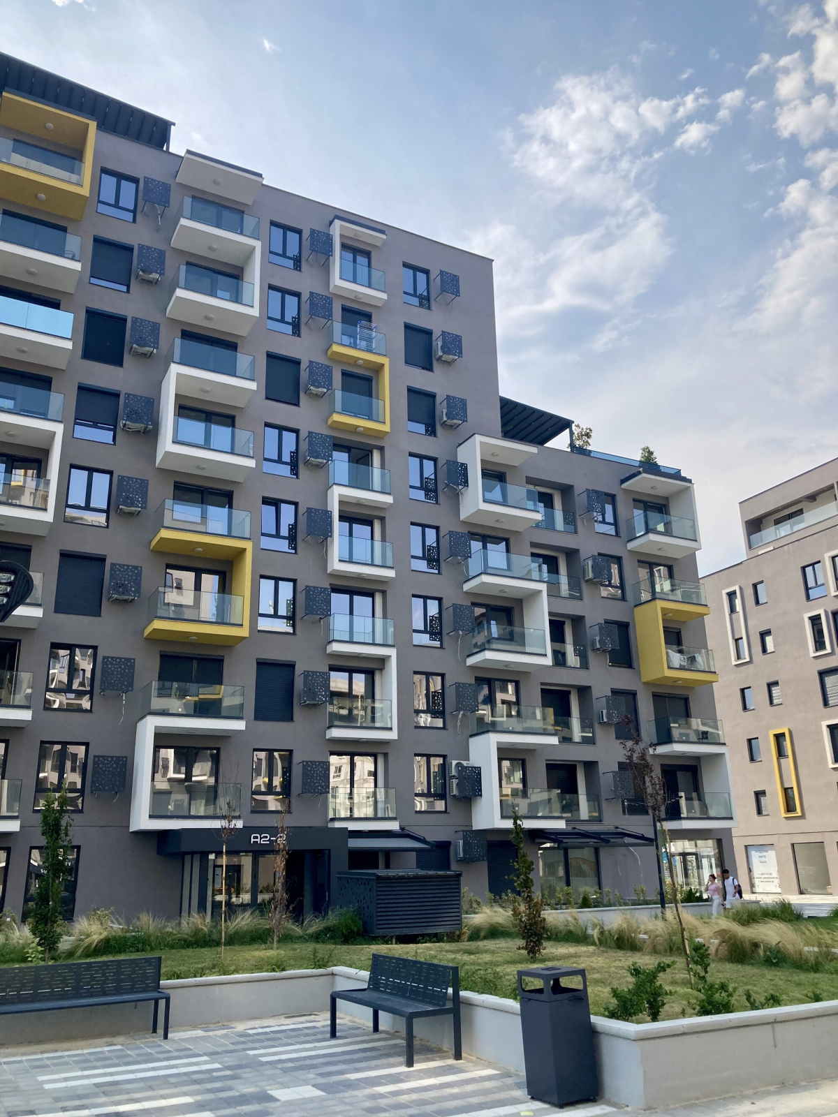 This modern furnished apartment has three rooms - one bedroom, one children's room and a comfortable living room with a dining room and a marble bar, as well as two bathrooms with showers and a pantry.