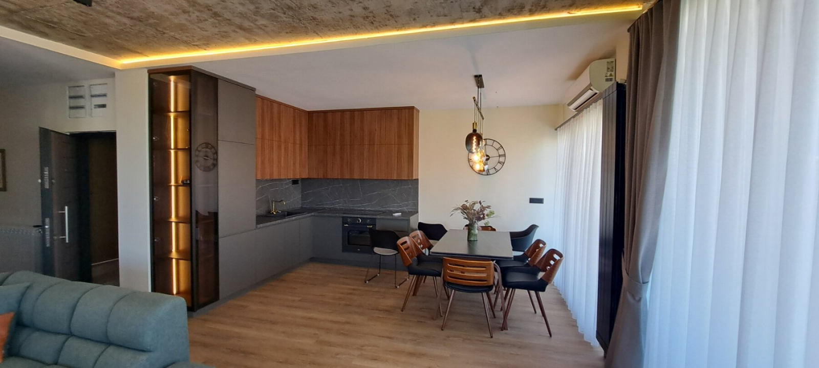 • living room, kitchen, dining room,
