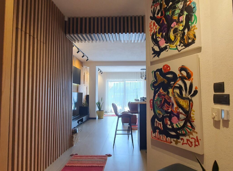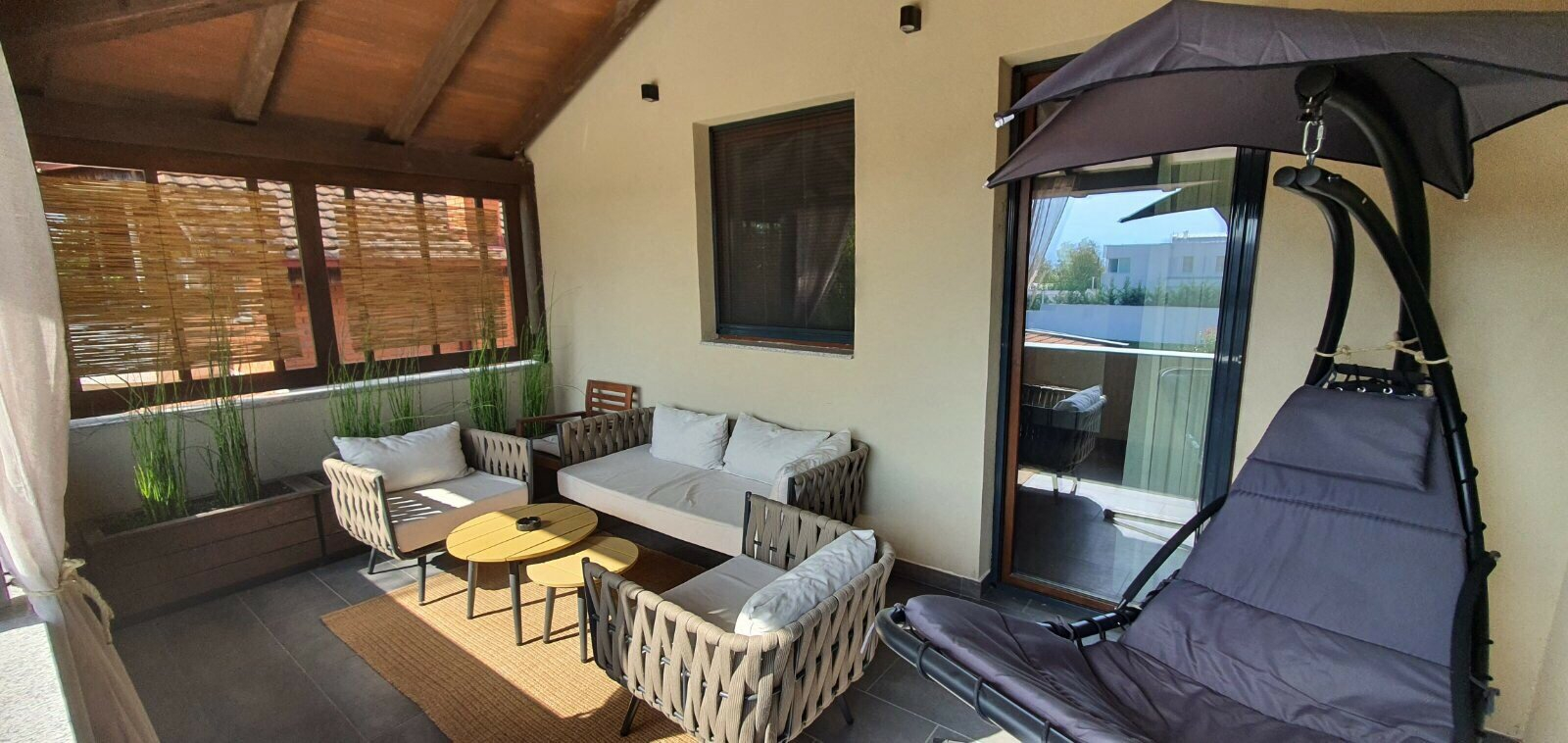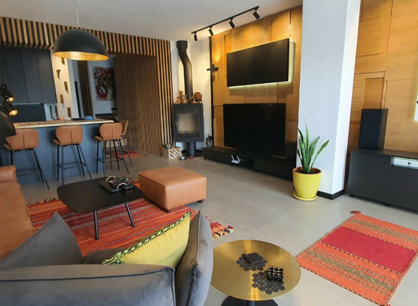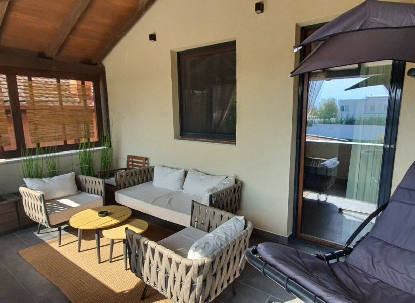 The house consists of: two bedrooms, two bathrooms, cozy living room with dining area, separate kitchen, pantry and terrace, as well as a spacious 250m2 horticulturally landscaped yard.