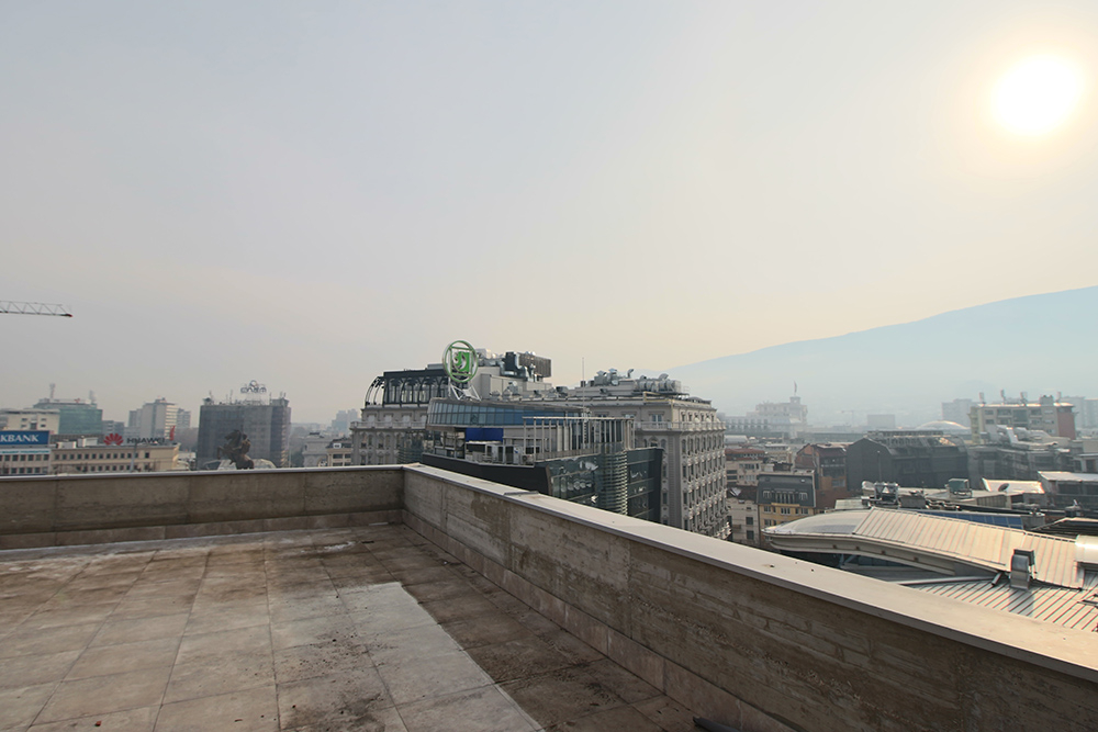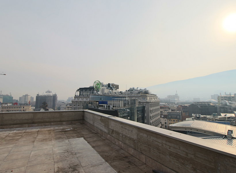 The top floor has 220m2 of space and 218m2 of terrace with the best view of the square, mountain Vodno and Kale Fortress. The terrace is rented for free.