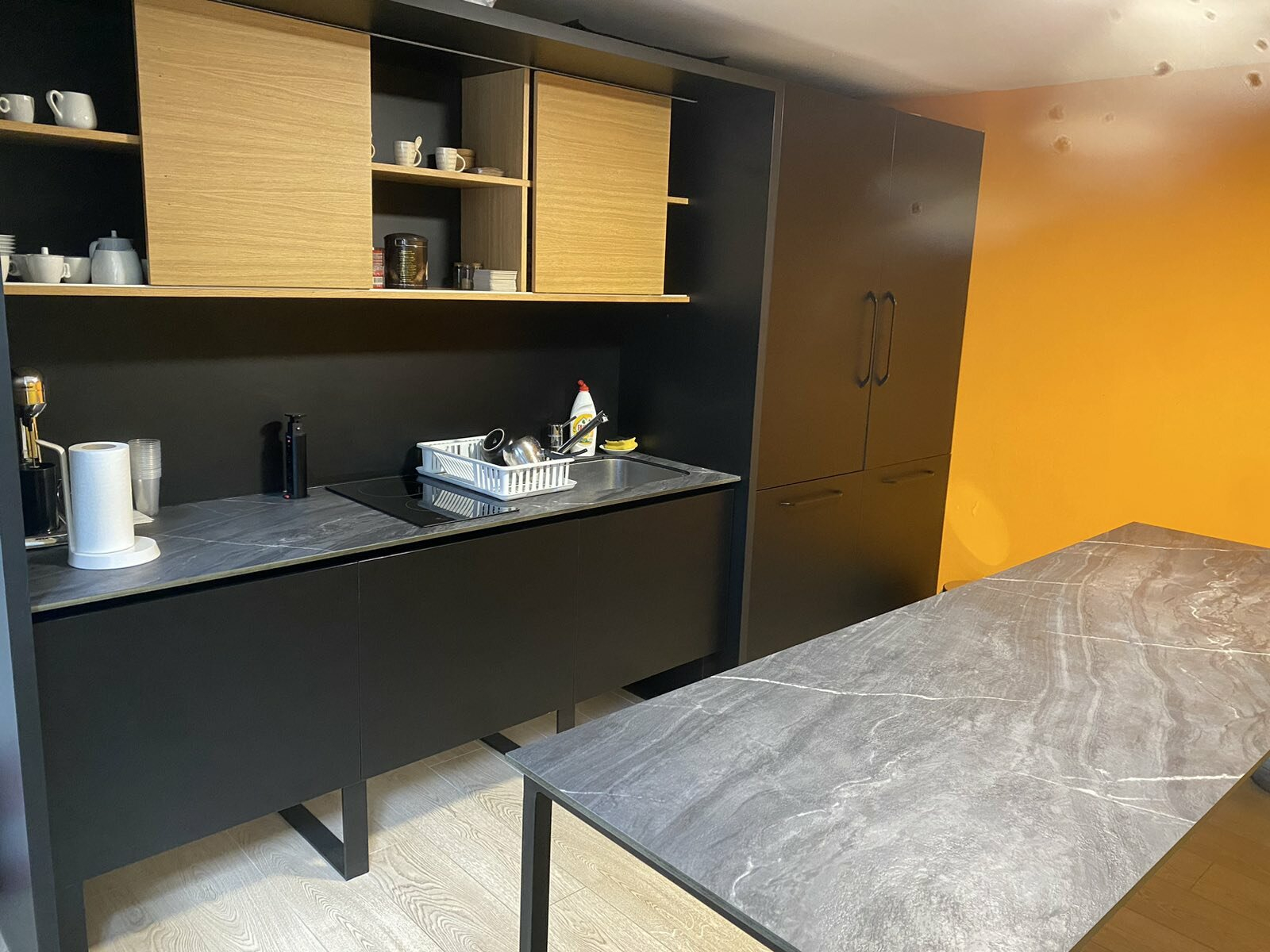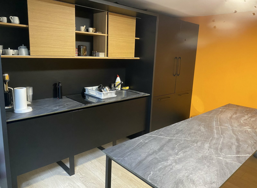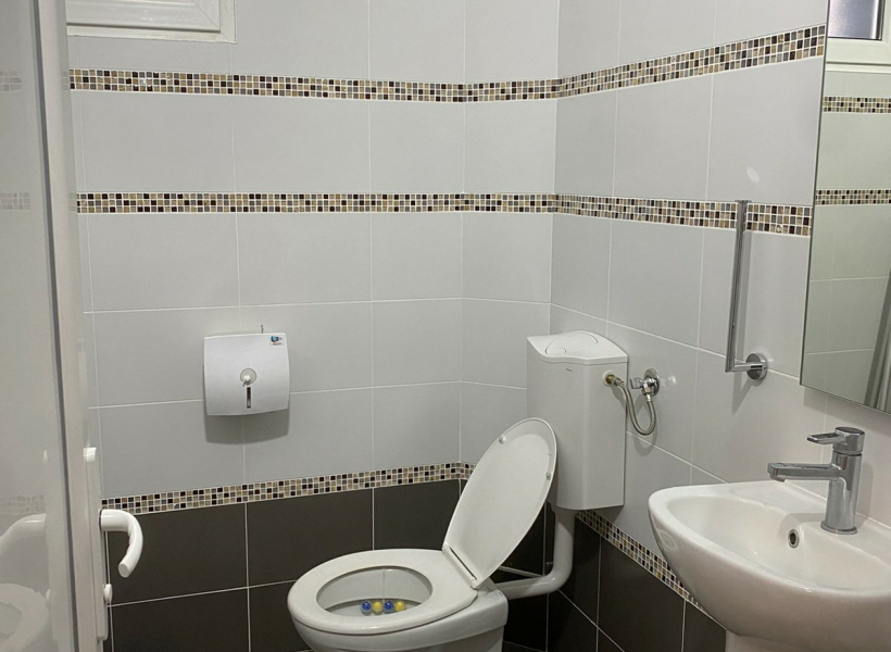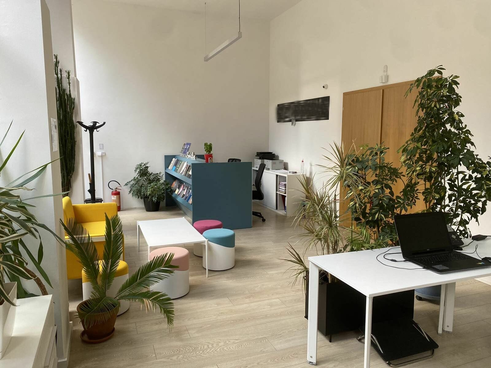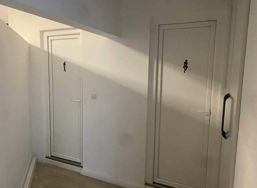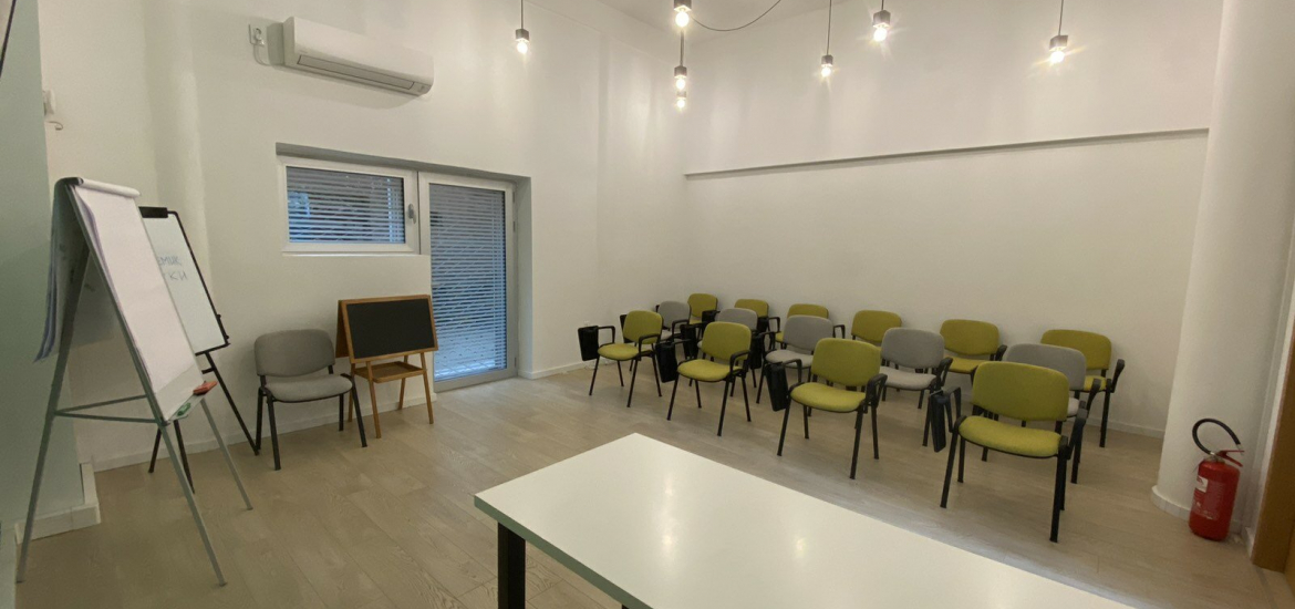 The space is located on the ground floor and has an area of 155m2 with a reception area, open space room, two additional offices, kitchen and toilets.